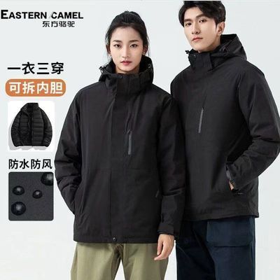 东方骆驼冲锋衣三合一羽绒棉可拆卸防风防棉衣水滑雪外套登山服男