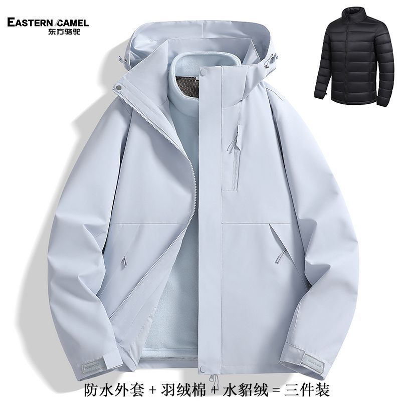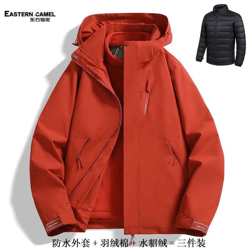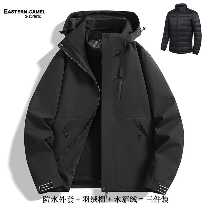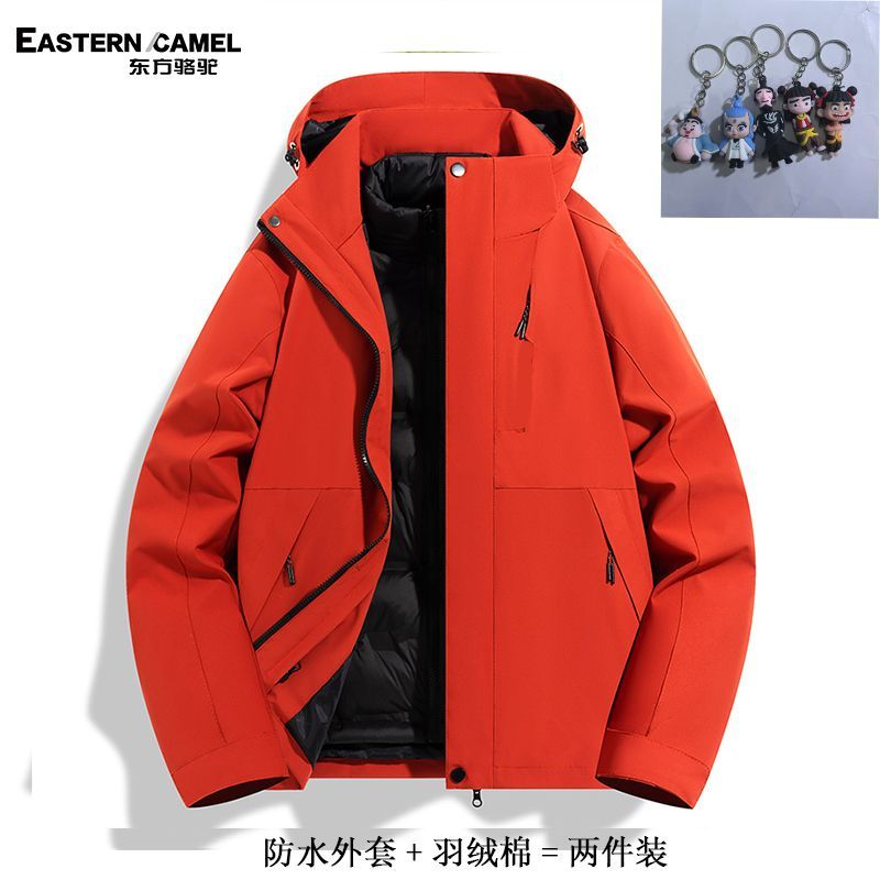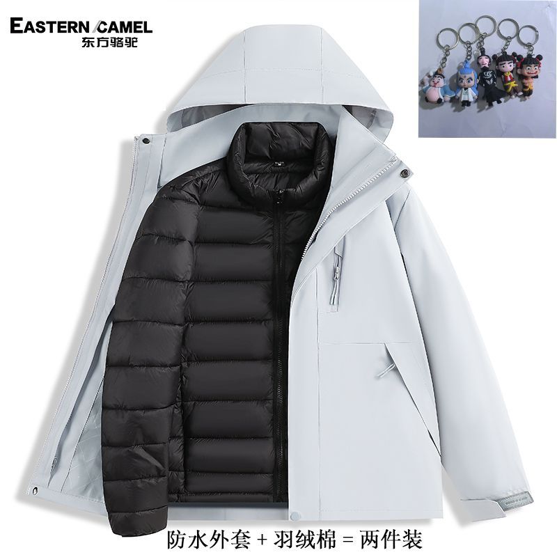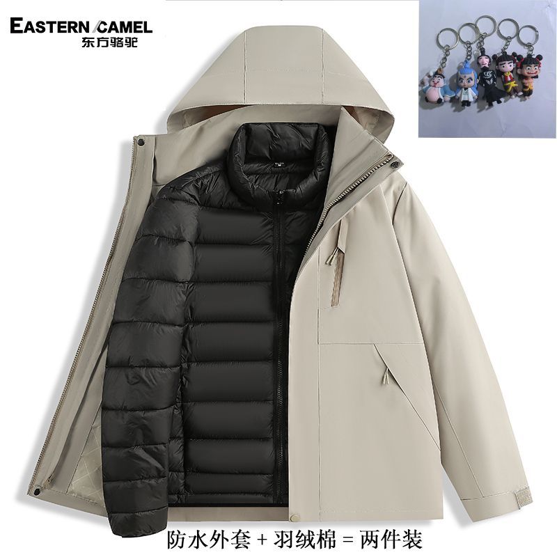 东方骆驼冲锋衣三合一羽绒棉可拆卸防风防棉衣水滑雪外套登山服男