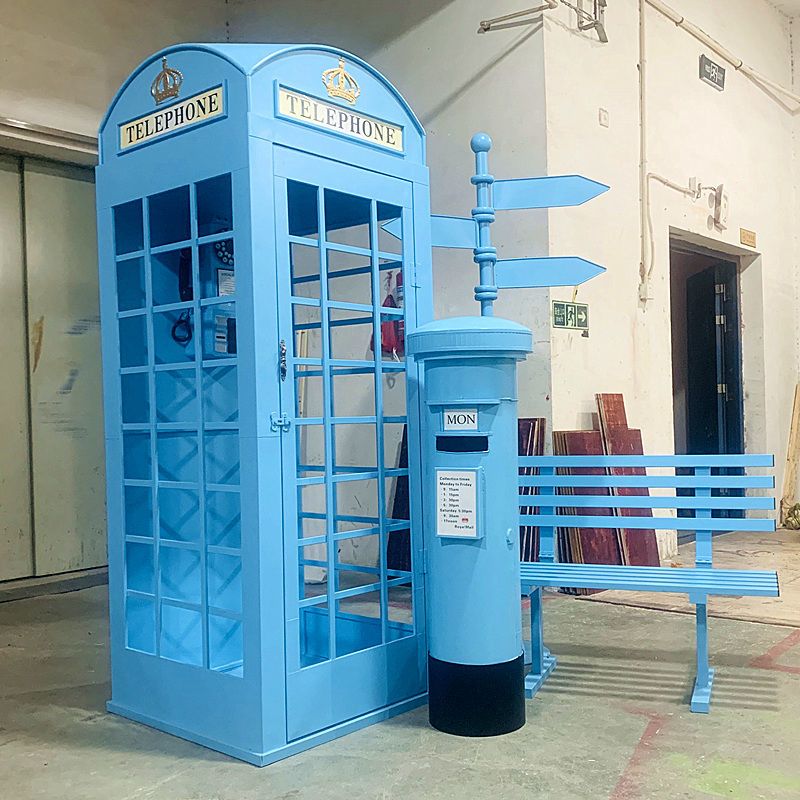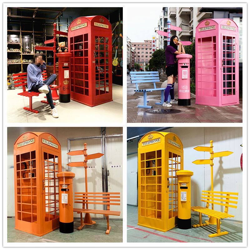英国伦敦电话亭摆件邮筒信箱路牌指示牌景观长椅商场美陈酒吧道具