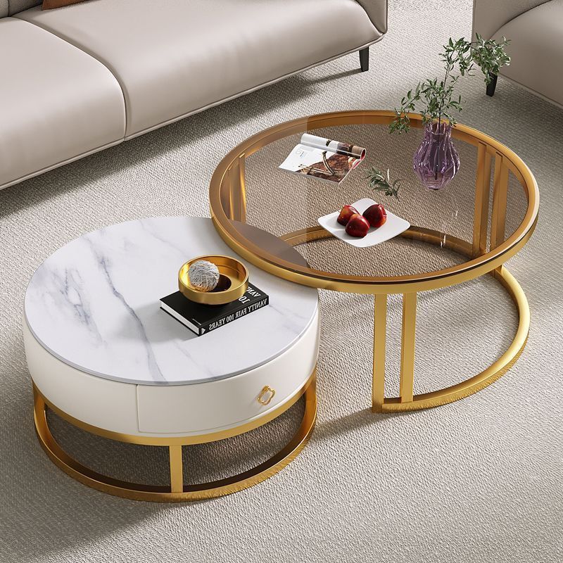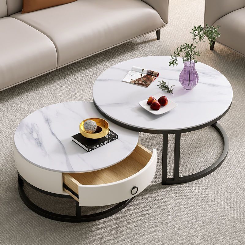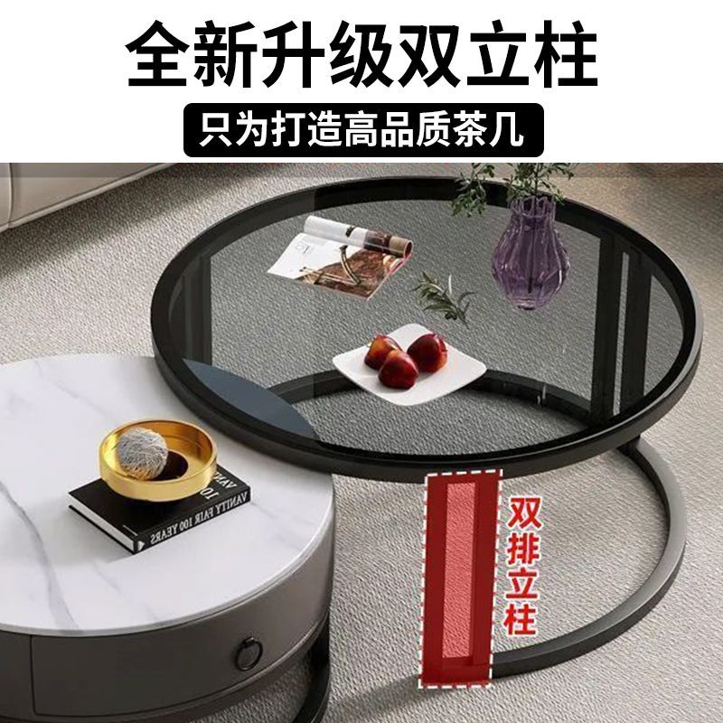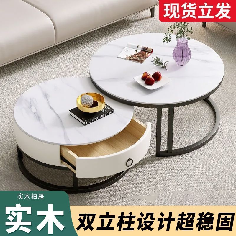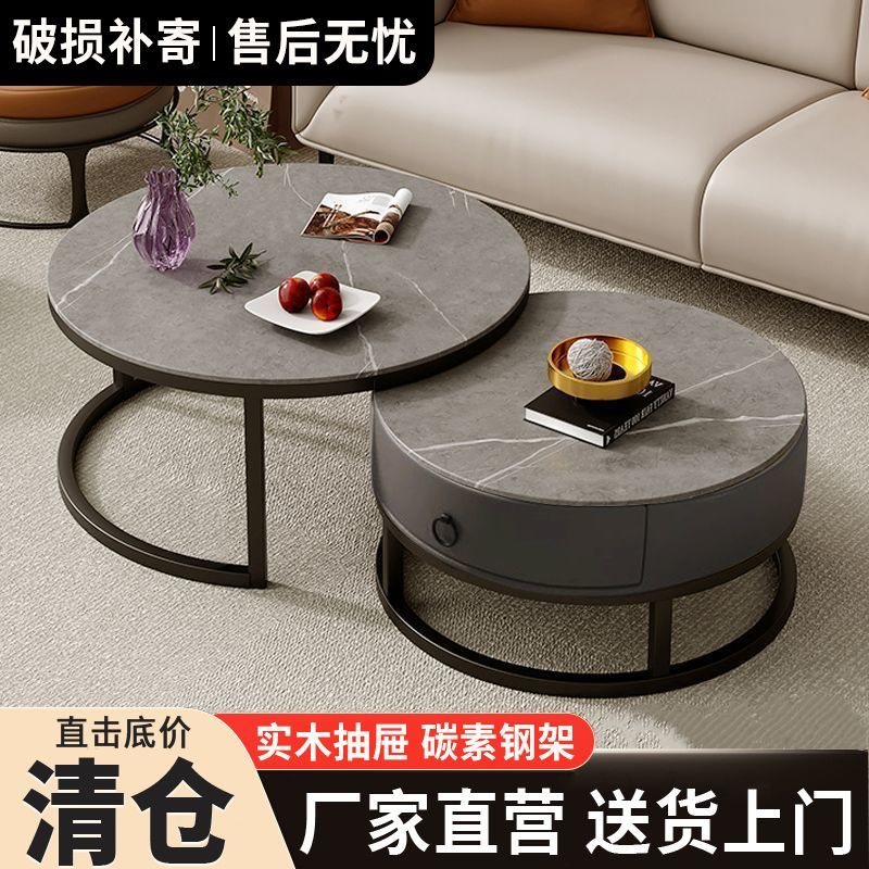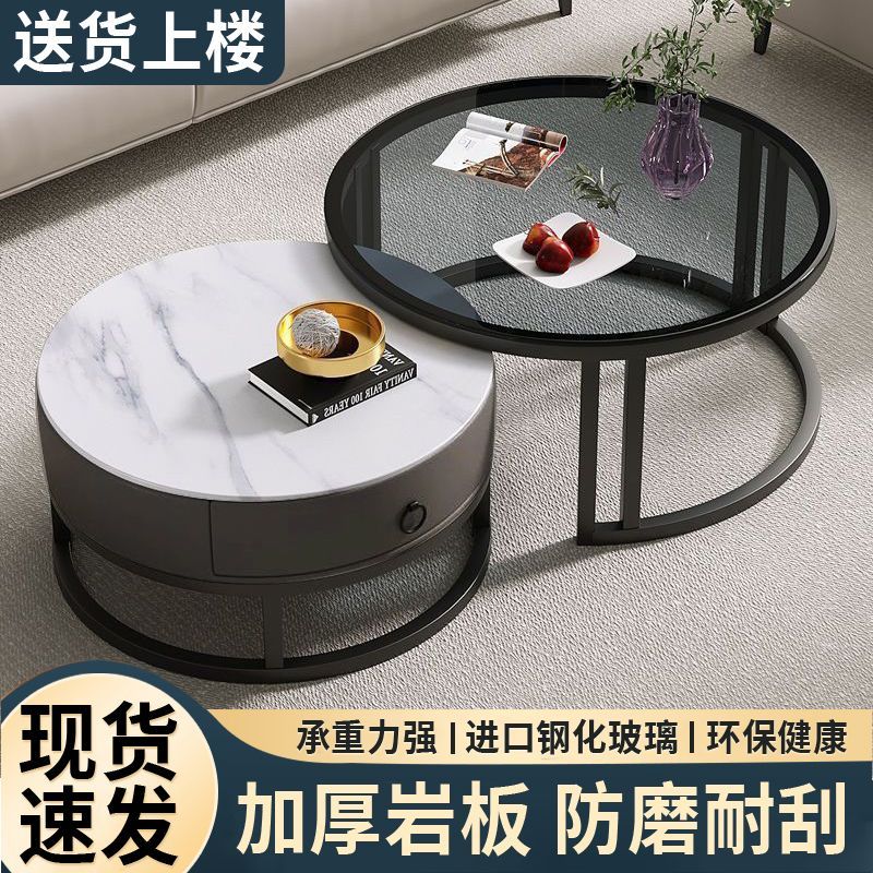 圆形岩板茶几客厅轻奢小户型家用网红茶几北欧新款现代简约组合桌