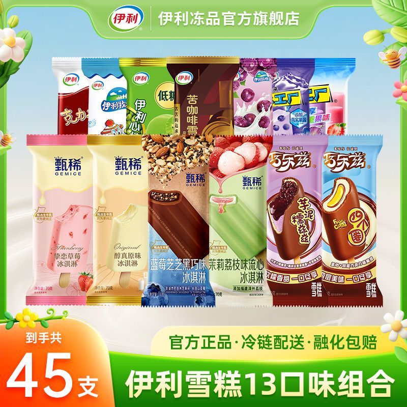 【45支】伊利雪糕甄稀茉莉荔枝流心巧乐兹冰工厂四个圈大布丁组合