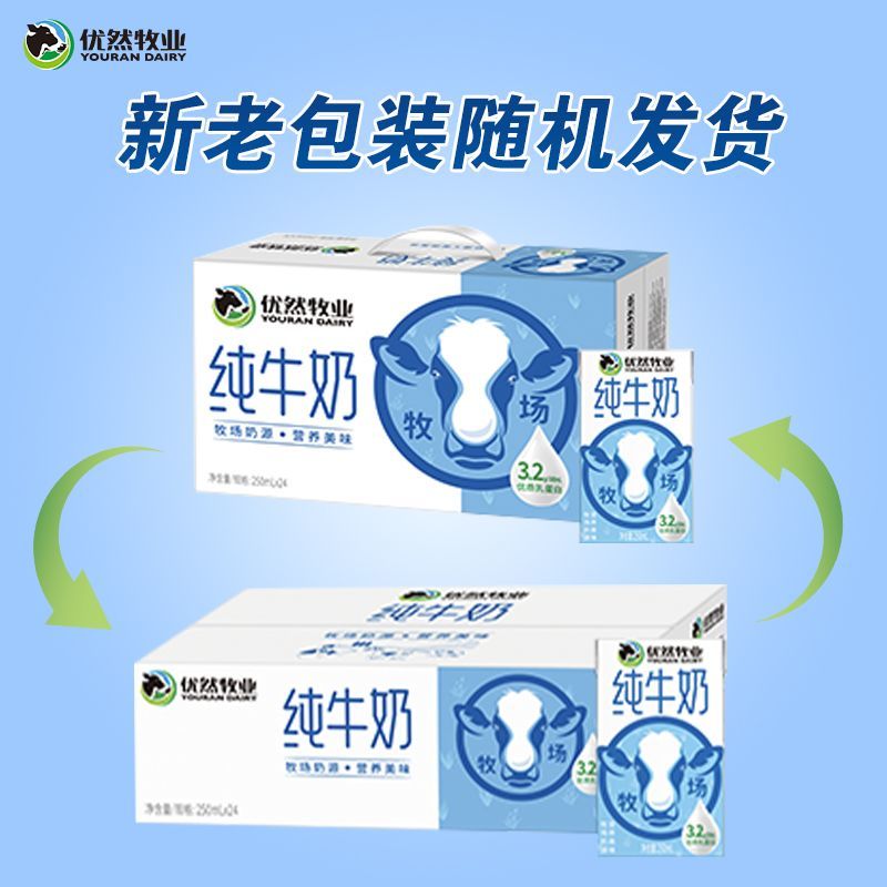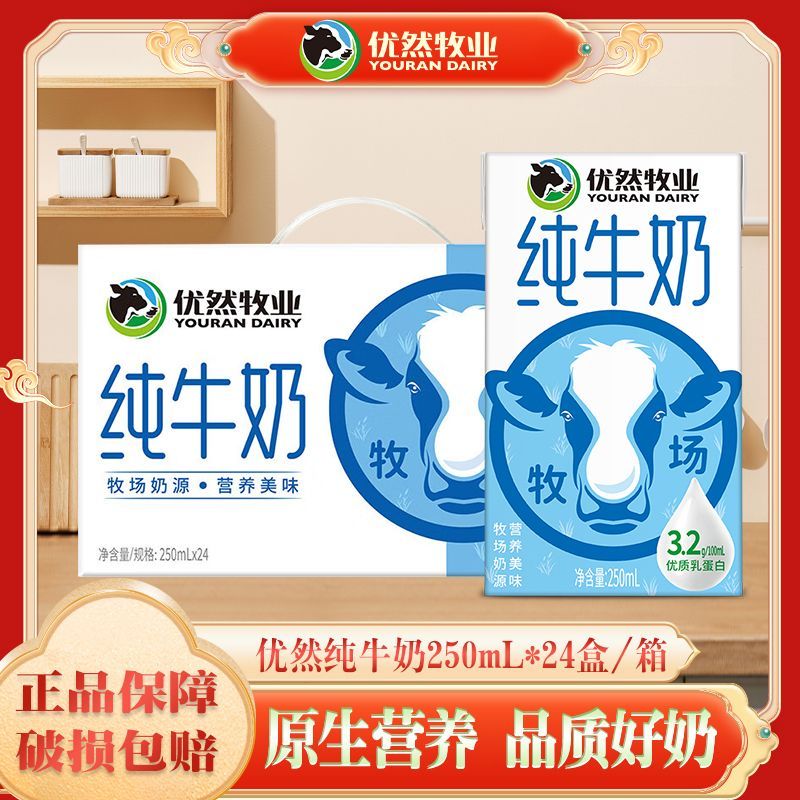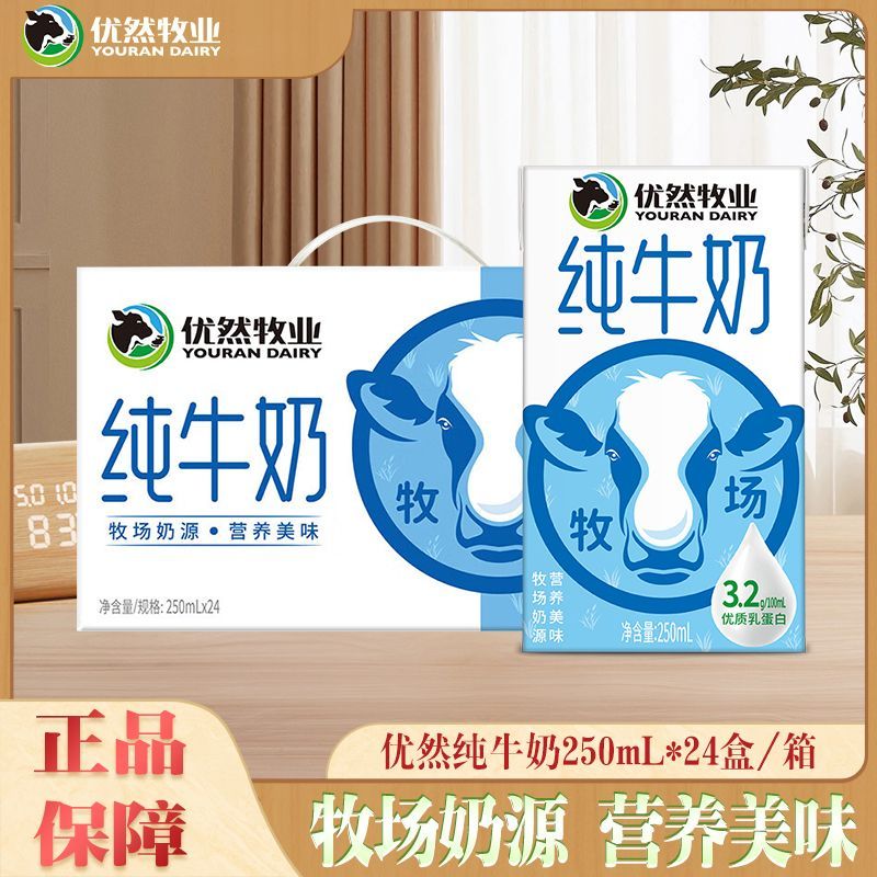 2月产 优然牧业纯牛奶24盒250ml纯牛奶家庭早餐搭档整箱送礼
