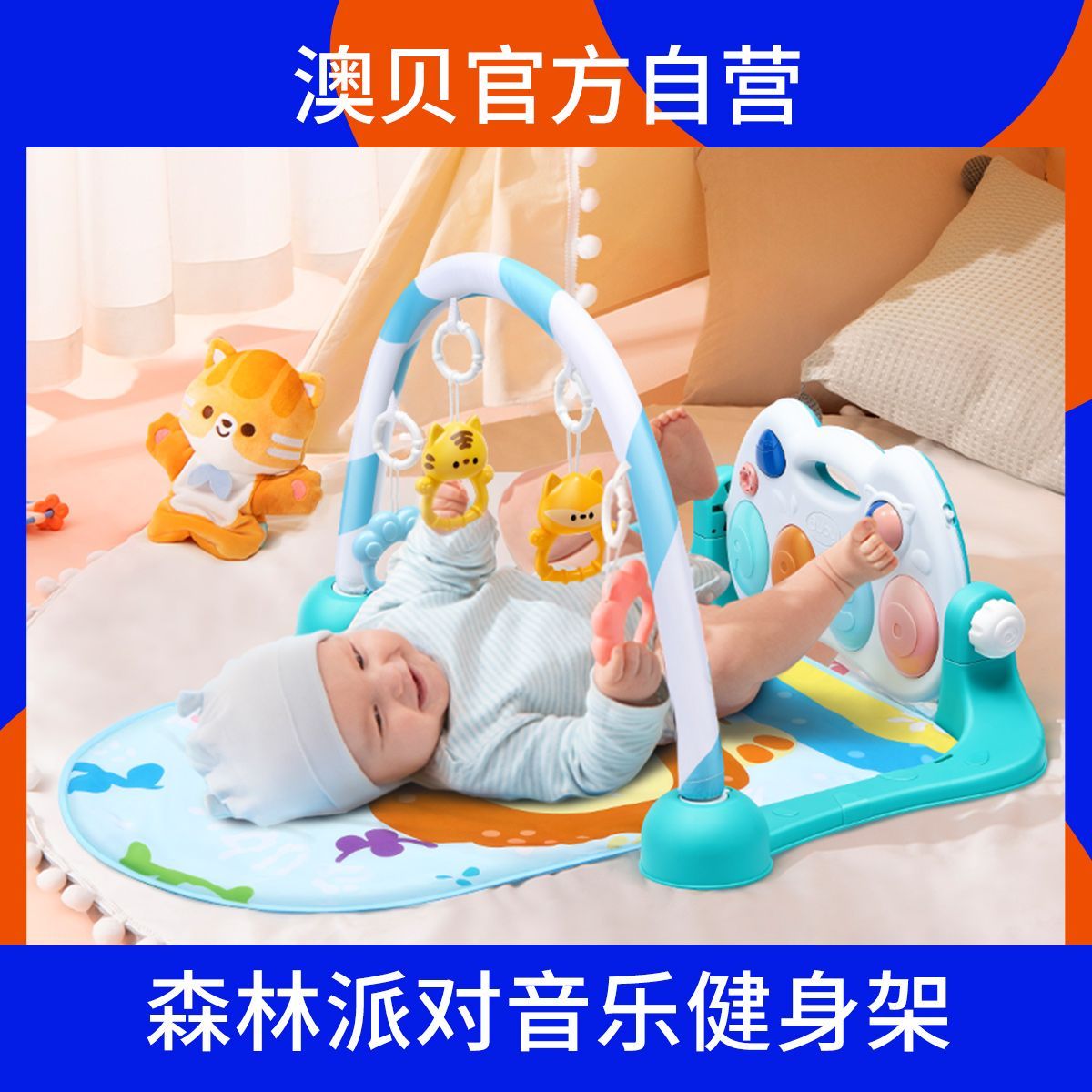 澳贝婴儿钢琴健身架森林派对健身架婴儿脚踩琴手足锻炼新生儿玩具