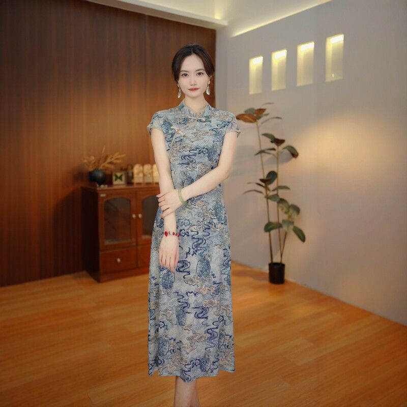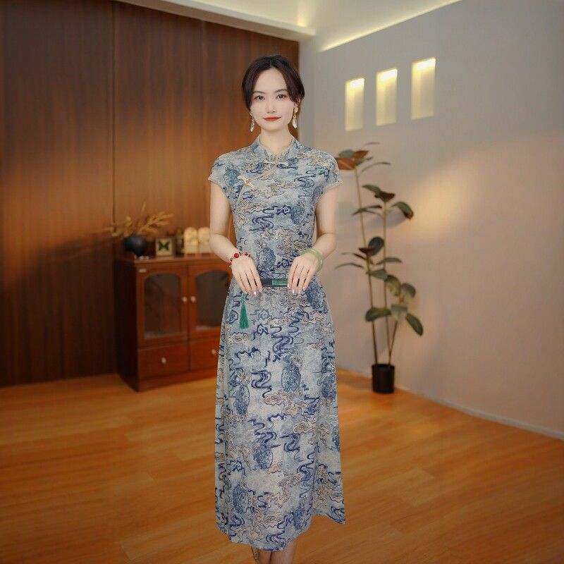 【江南娜娜】H35 新款夏季时尚中长款新中式显瘦旗袍连衣裙