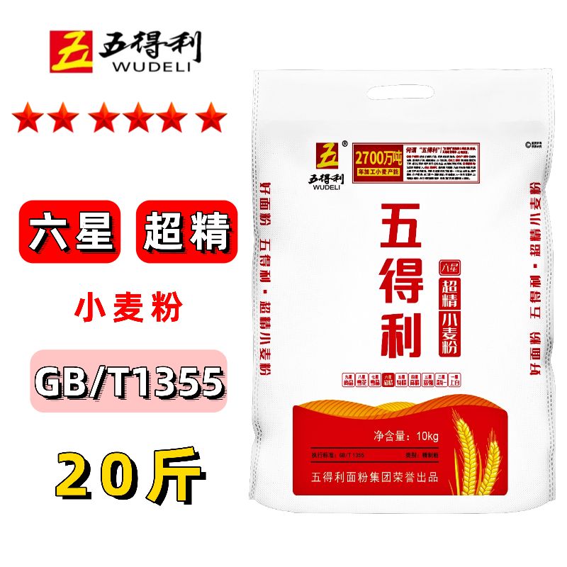 五得利面粉六星超精小麦粉面条10kg家用通用包子饺子馒头