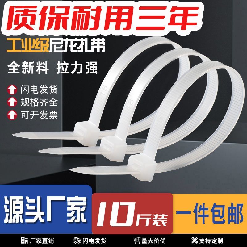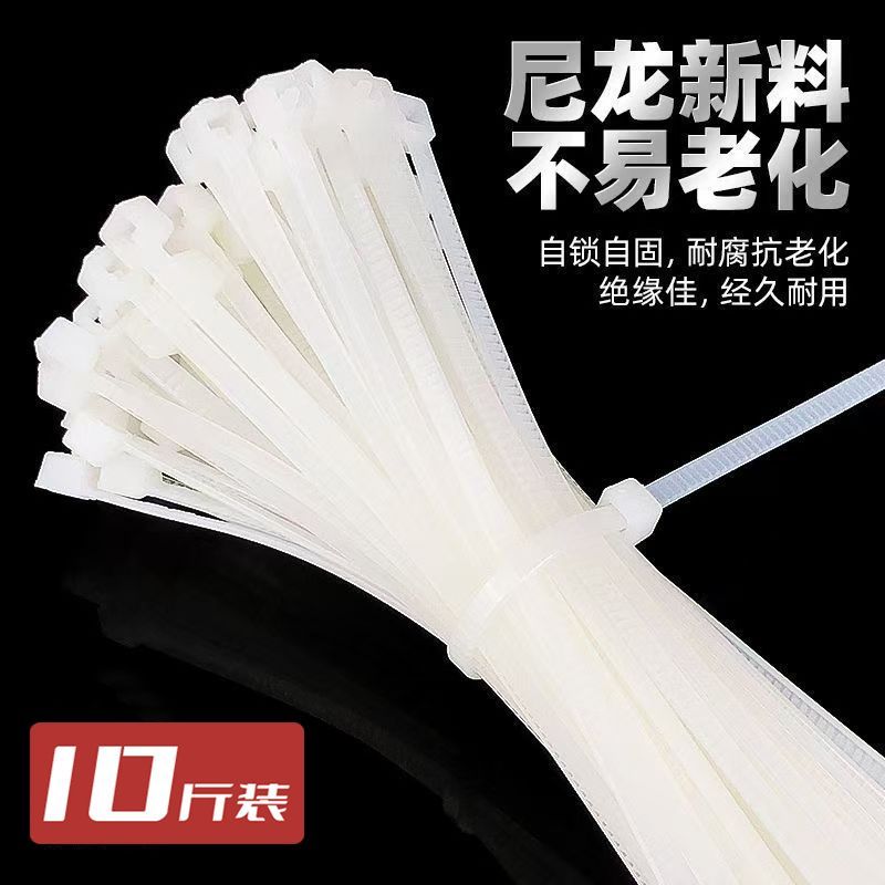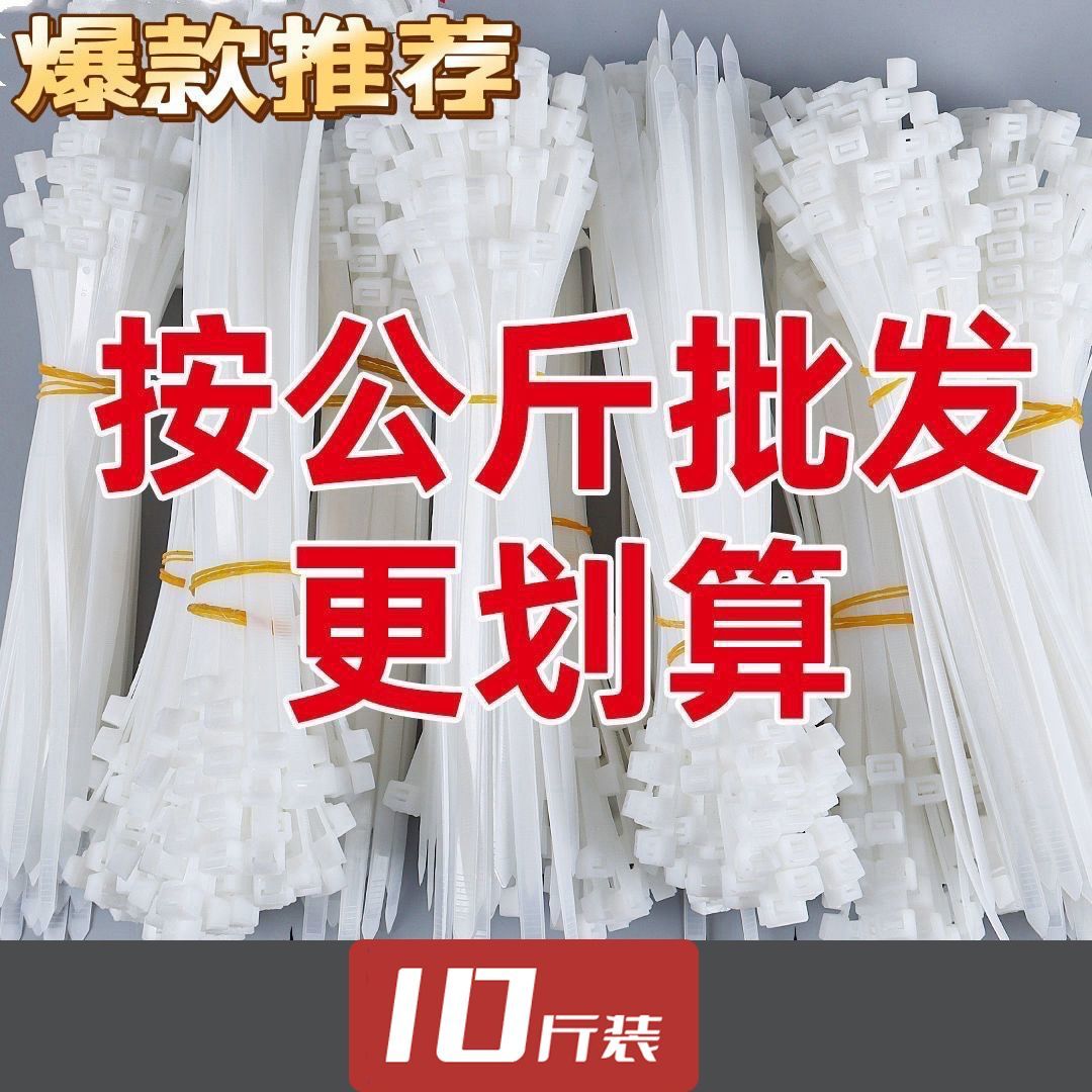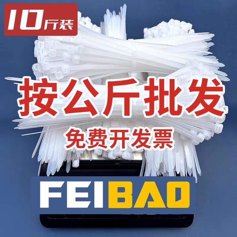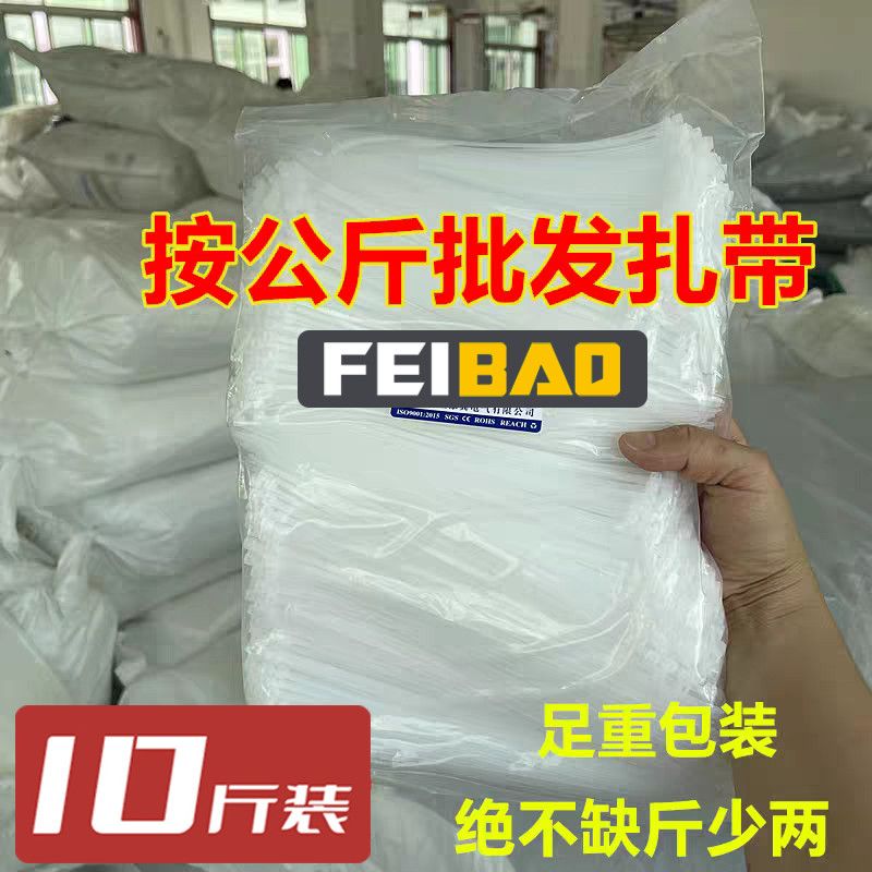 【10斤装】飞豹尼龙扎带条一次性自锁式白色,按公斤批发束线收纳