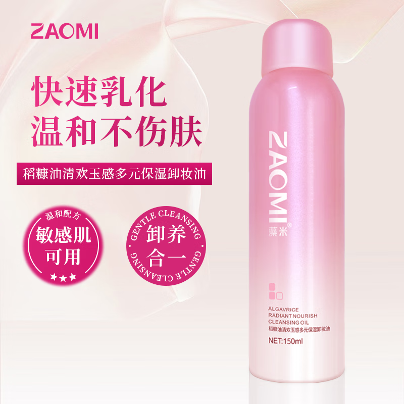 藻米稻糠油清欢玉感多元保湿卸妆油 卸养一体净润舒缓温和不刺激 150ml单支 天然油脂超强卸妆净润舒缓不糊眼