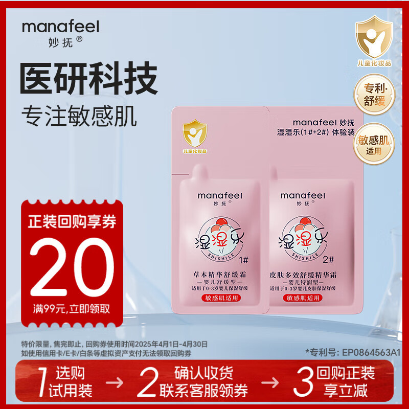 妙抚湿湿乐(1#+2#)婴儿特护敏感肌面霜体验装3g