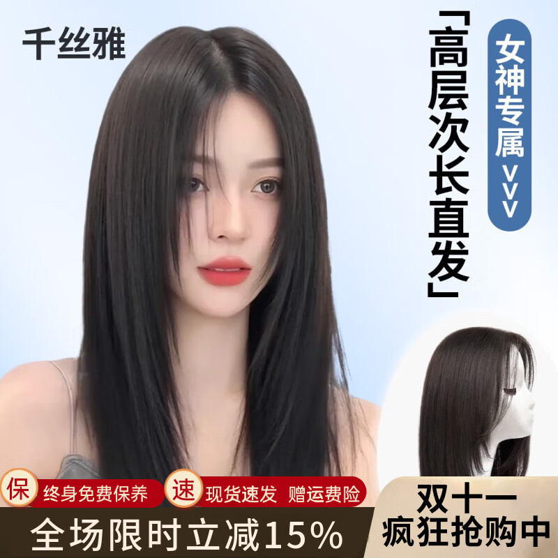 千丝雅假发女全头套式高端递针真发真人发丝轻薄无痕款整顶假发套 气质中分【自然色】45cm 长发