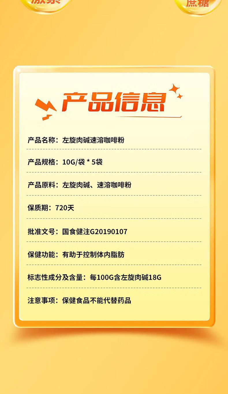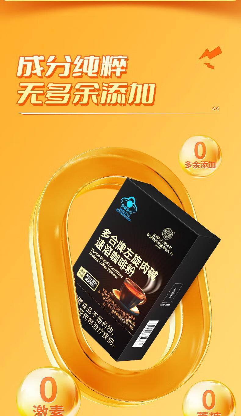 内廷上用北京同仁堂多合牌左旋肉碱速溶咖啡粉 0蔗糖加速代谢健身燃脂 (50g*10袋)/盒 【1盒体验装】