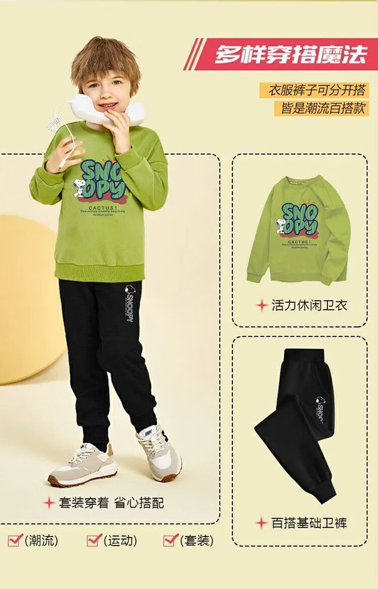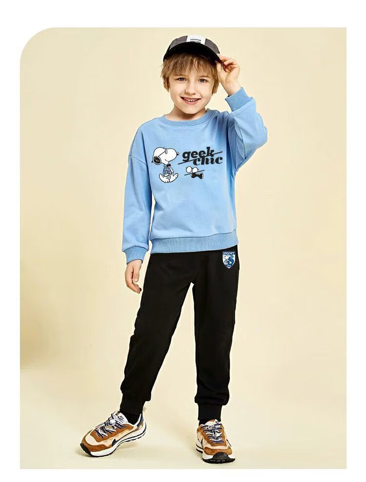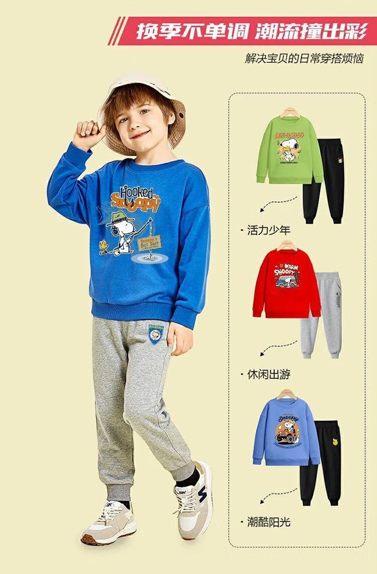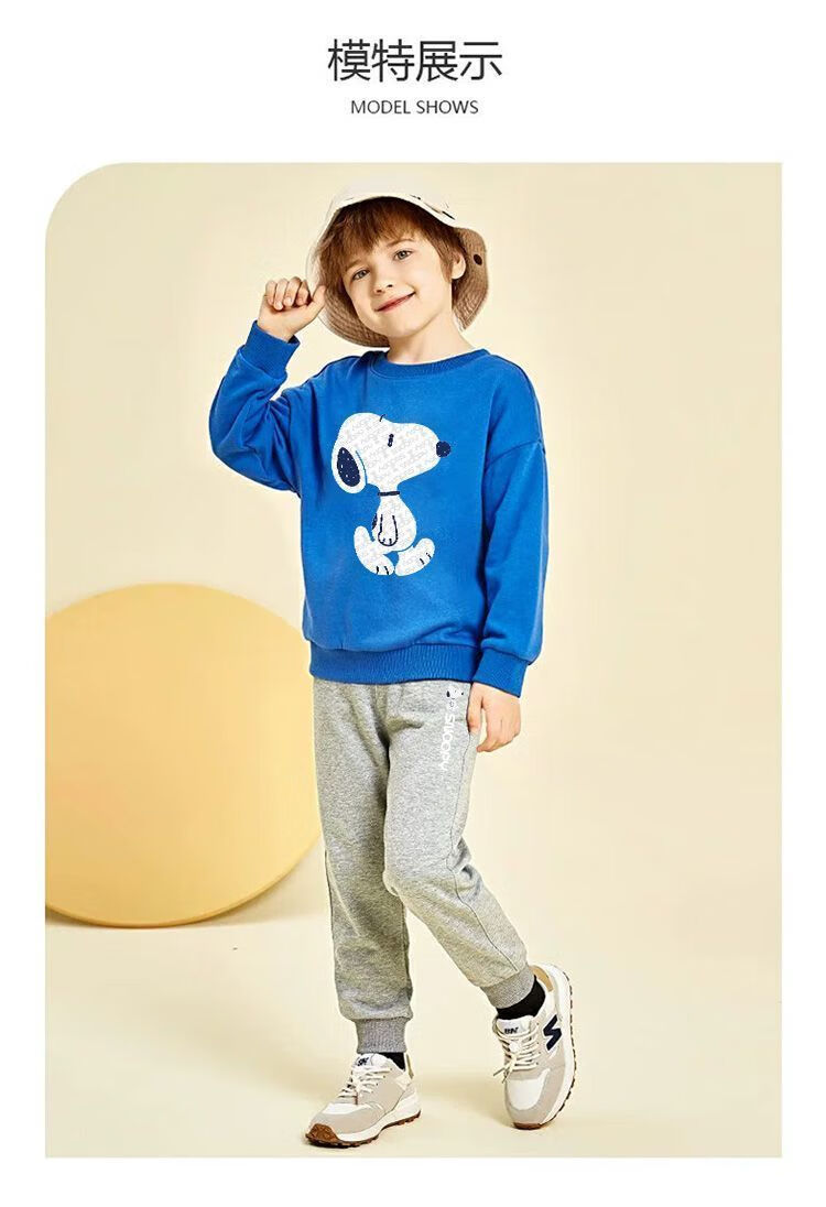 SNOOPY史努比男童卫衣套装春秋款2025新款男孩帅气圆领上衣儿童春装潮 卫衣/311大蓝+卫裤311小黑 150 适合体重35-40公斤