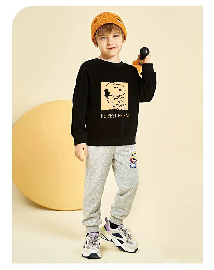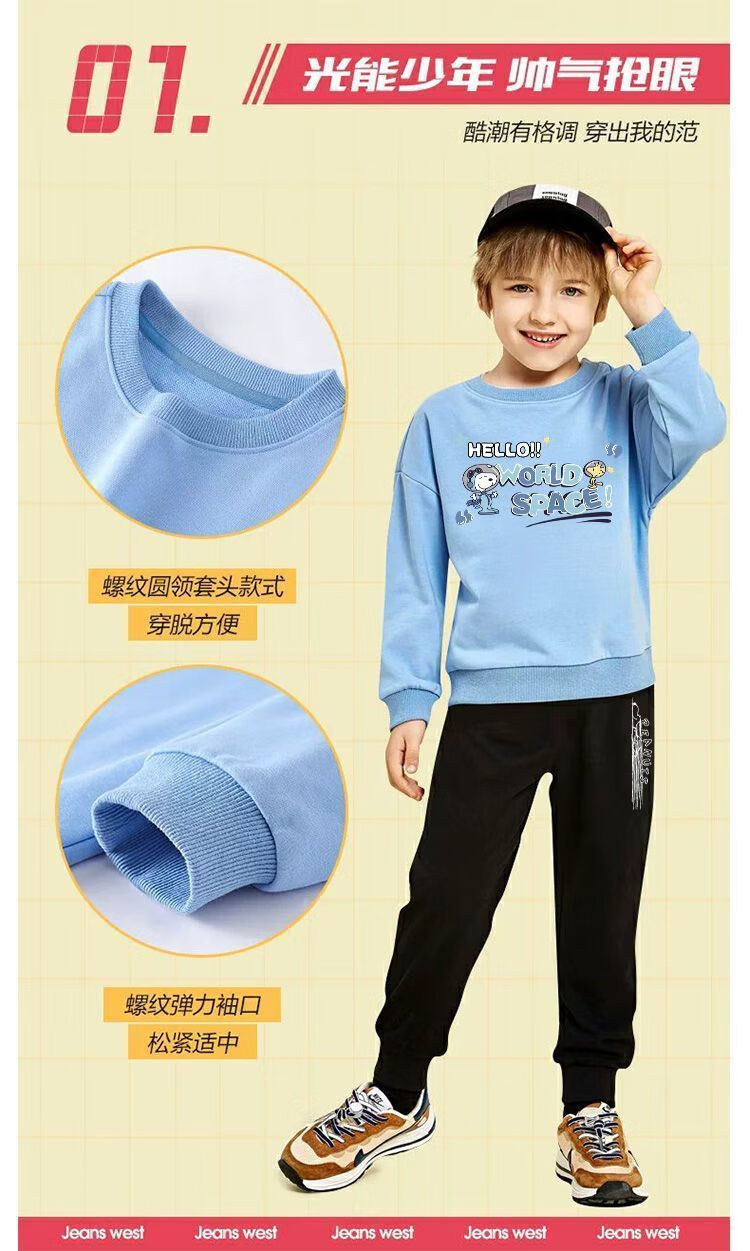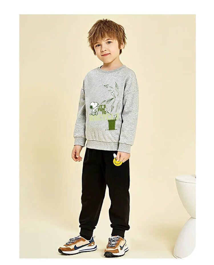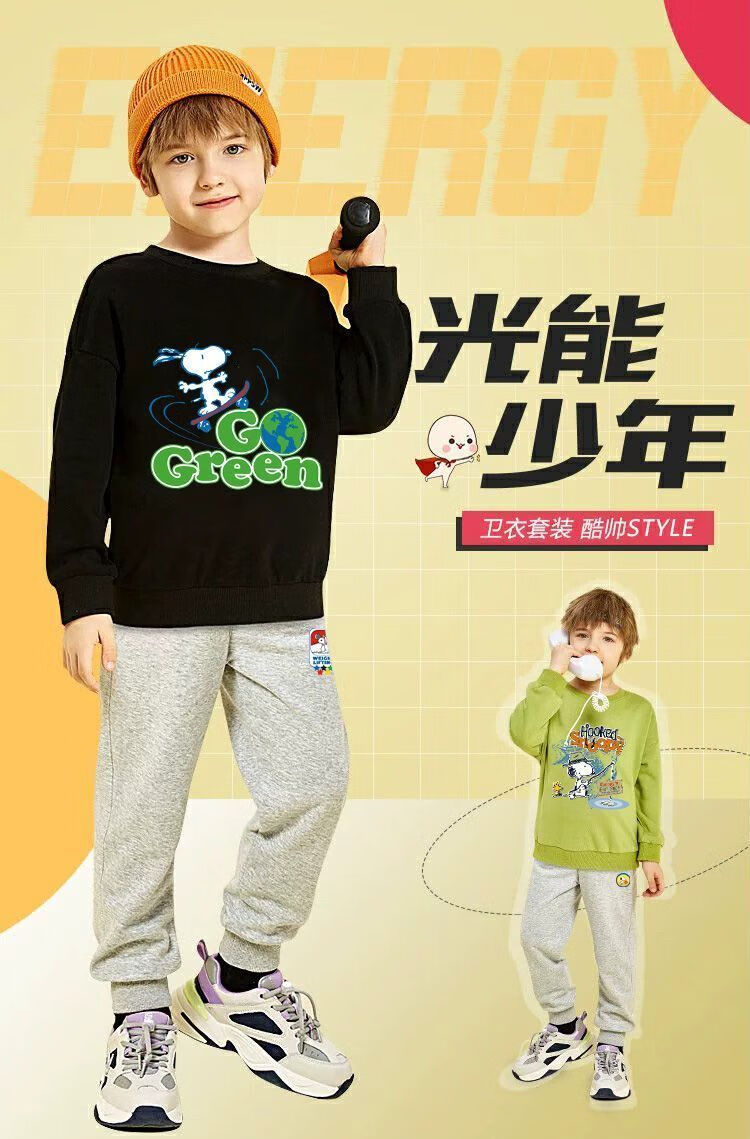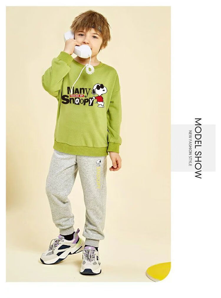 SNOOPY史努比男童卫衣套装春秋款2025新款男孩帅气圆领上衣儿童春装潮 卫衣/311大蓝+卫裤311小黑 150 适合体重35-40公斤