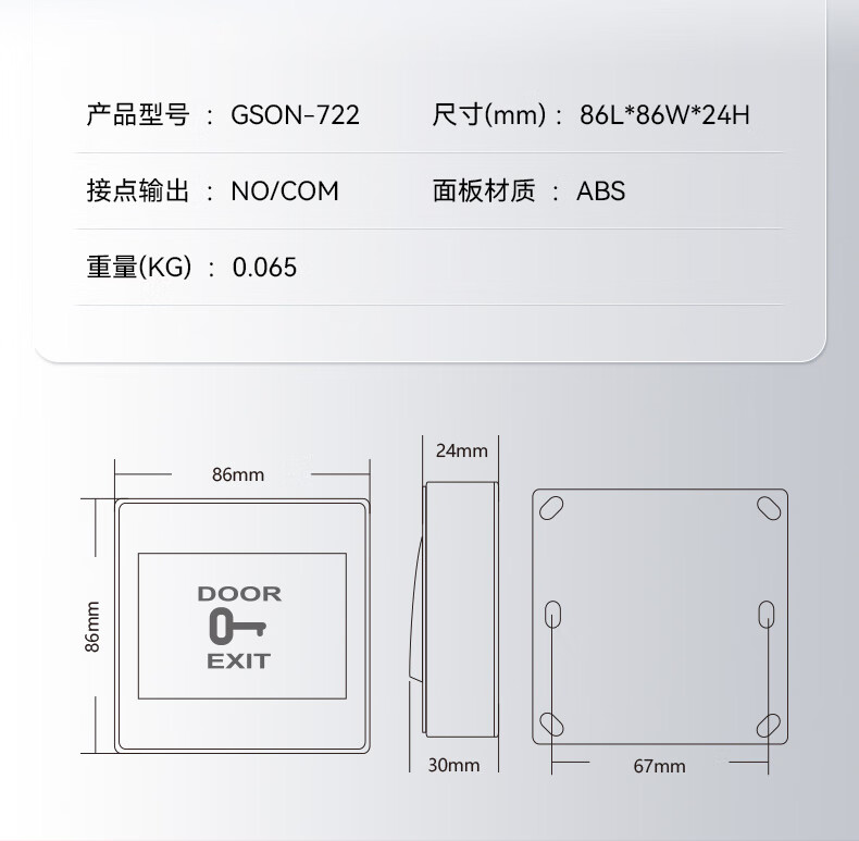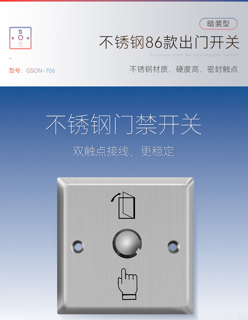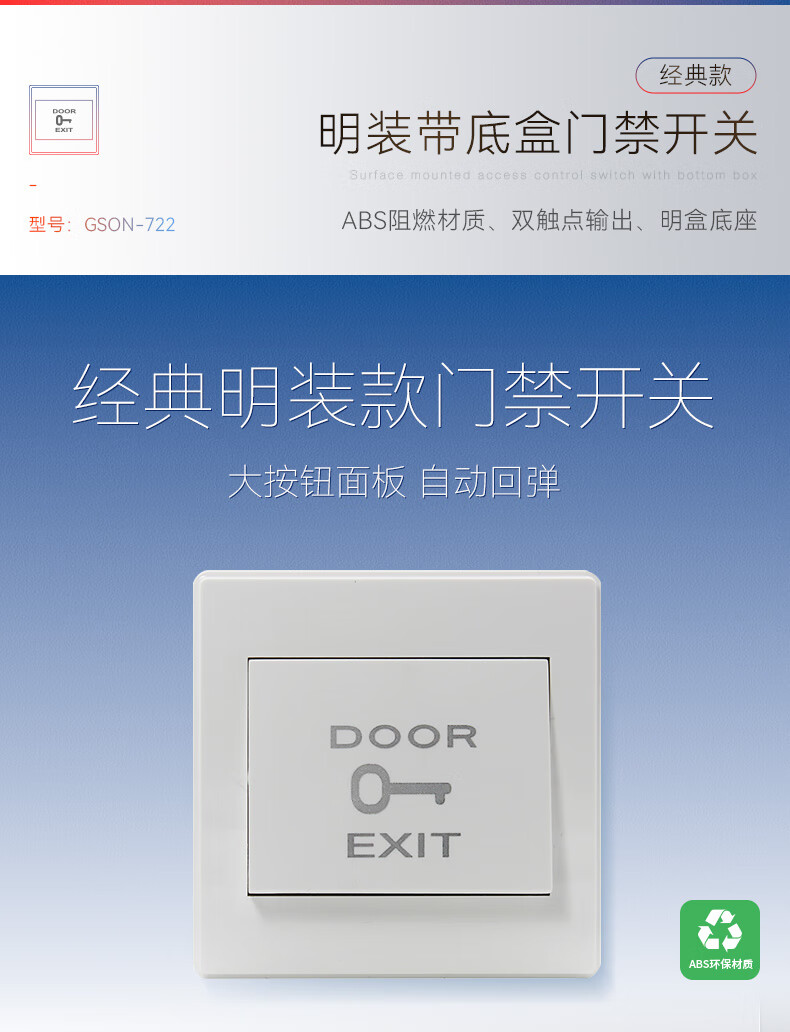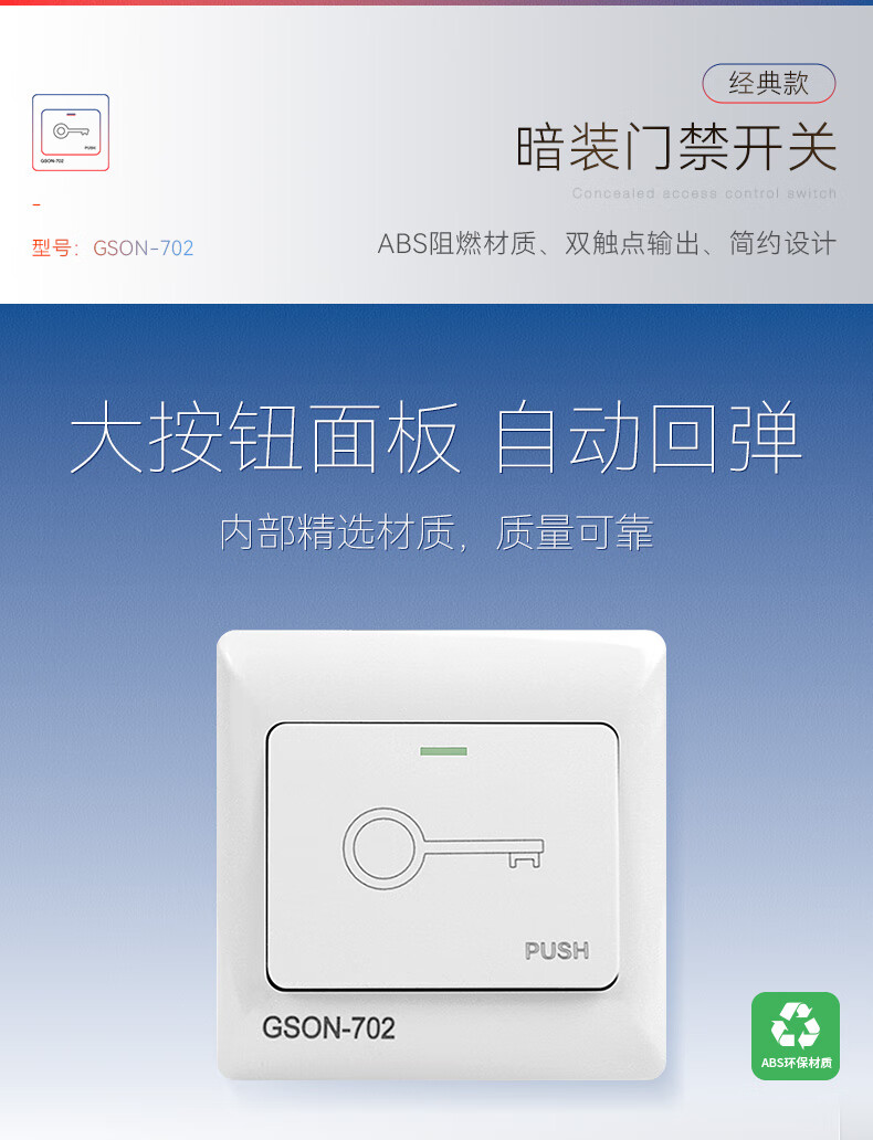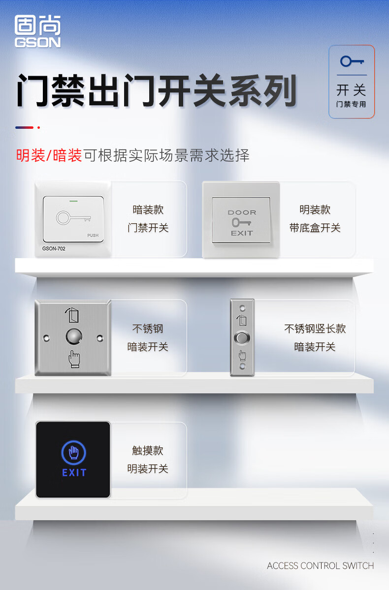 GS固尚GSON门禁开关按钮面板暗装门禁考勤机出门开关按钮86型