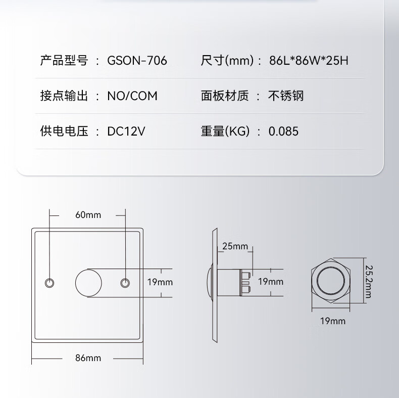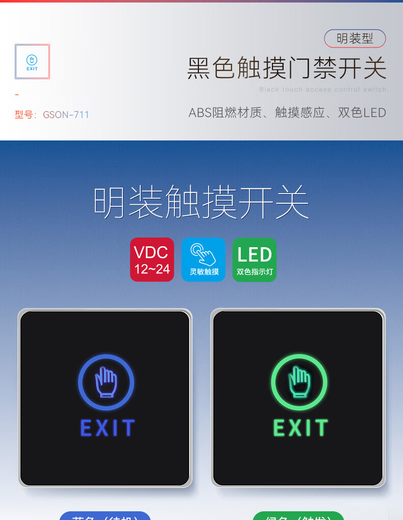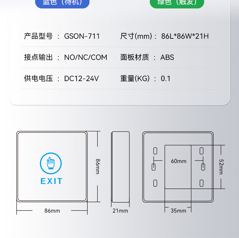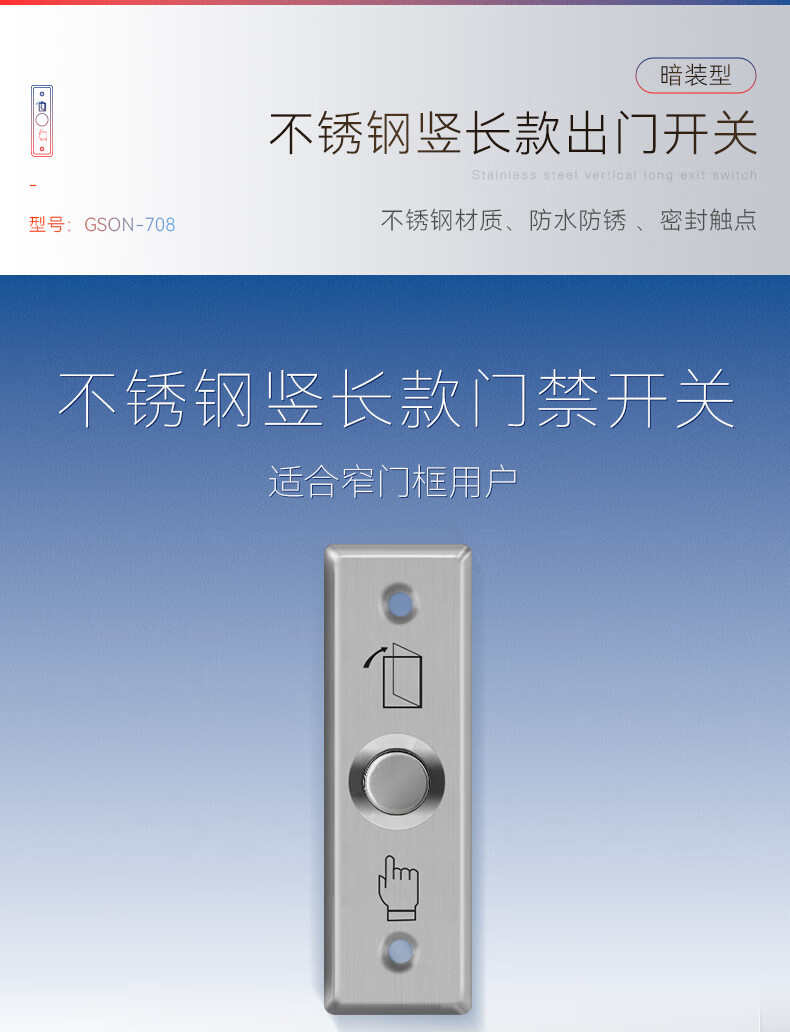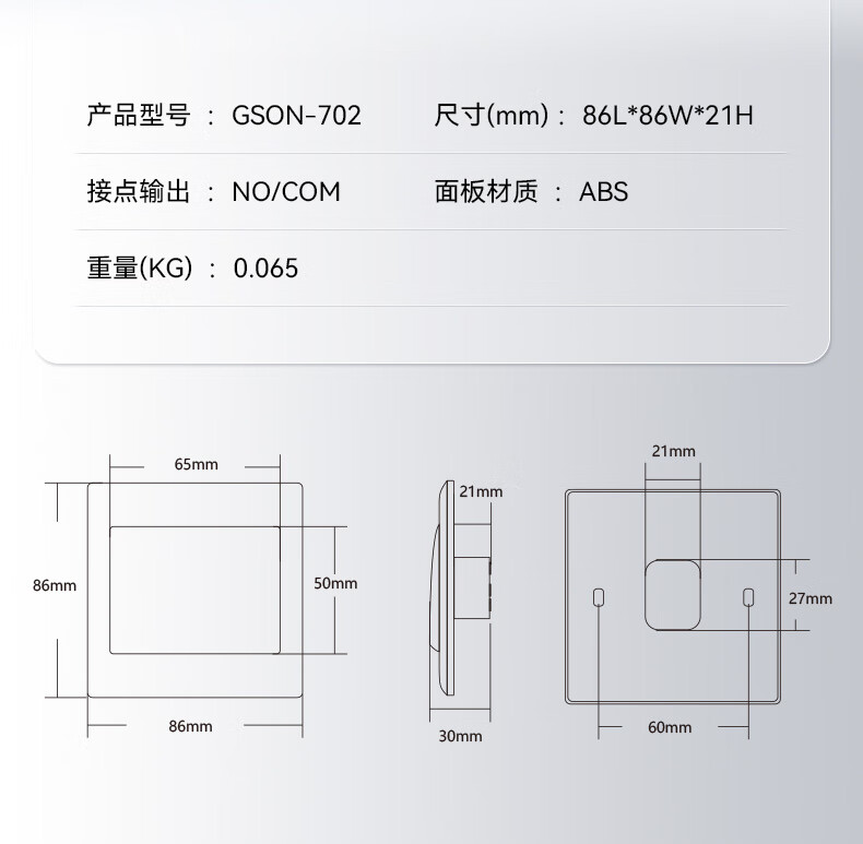 GS固尚GSON门禁开关按钮面板暗装门禁考勤机出门开关按钮86型