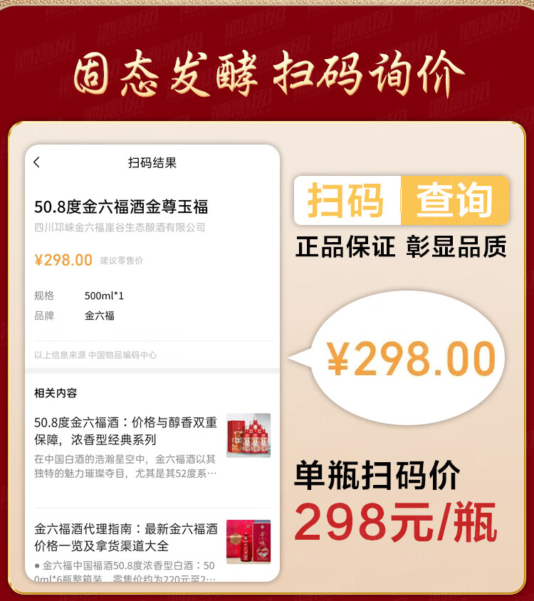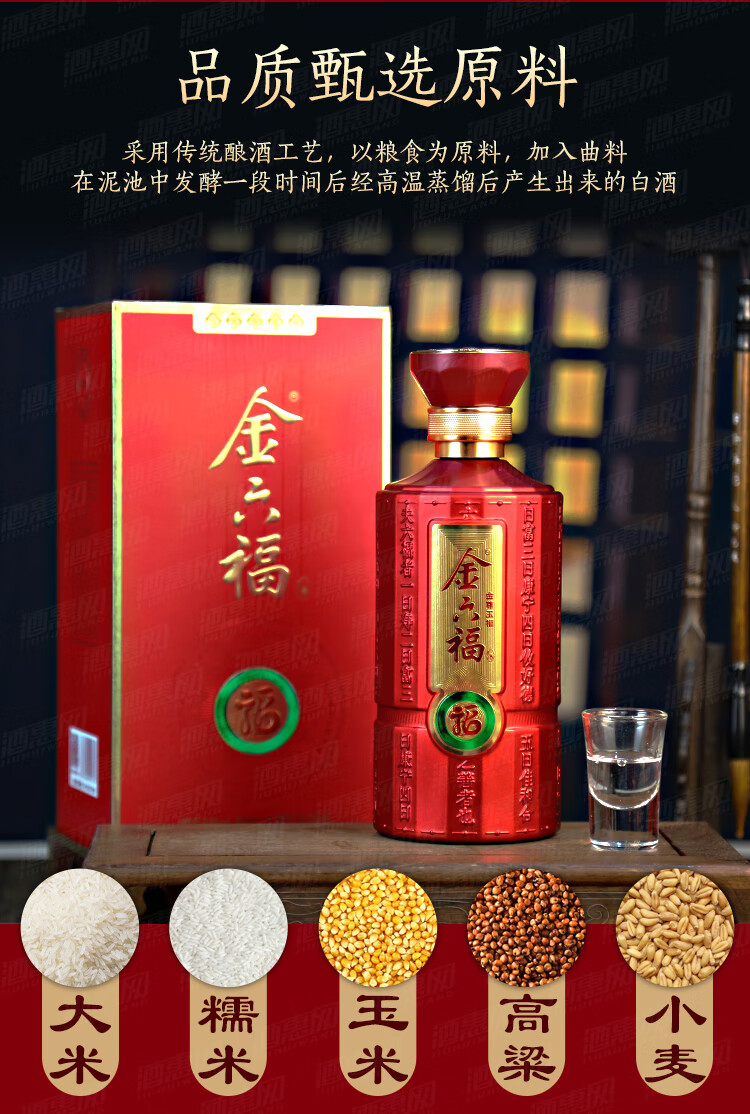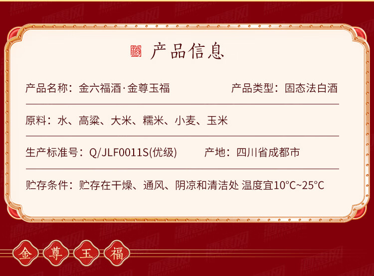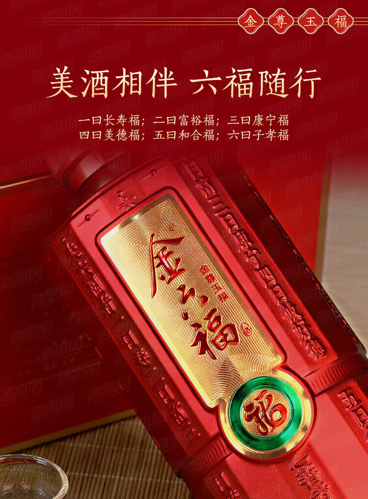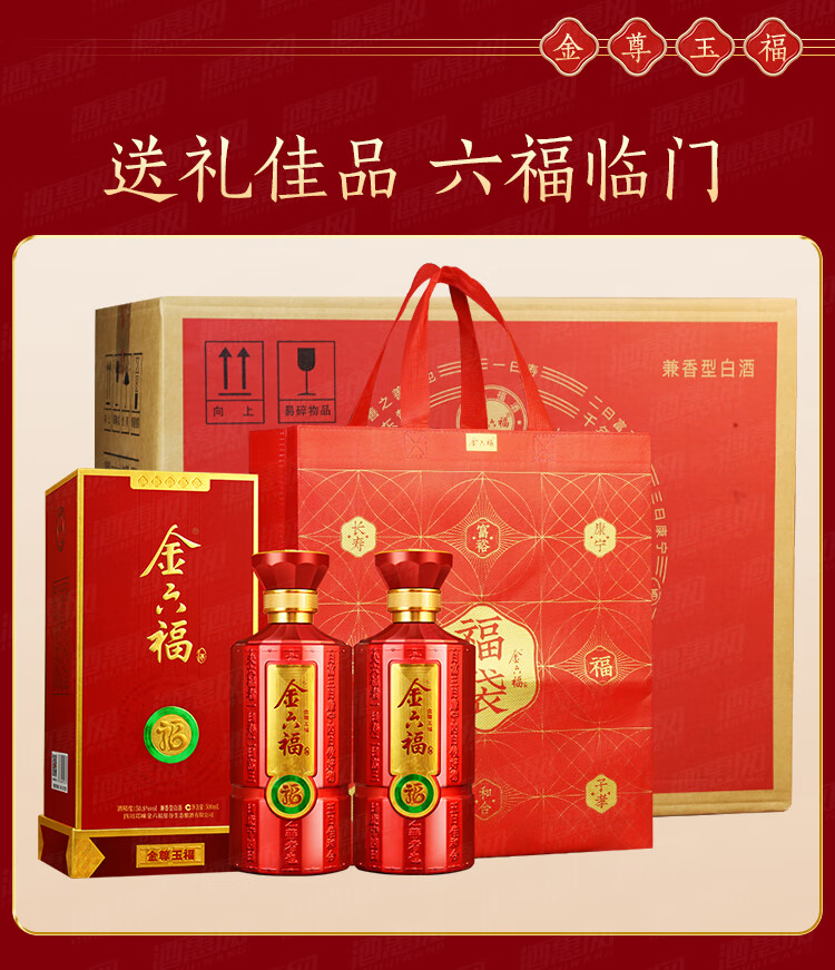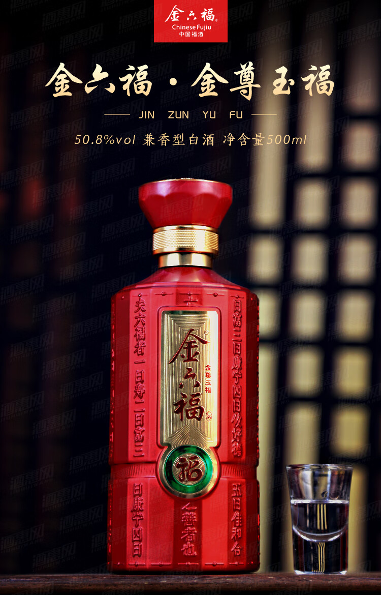 金六福金尊玉福50.8度兼香型白酒纯粮食酒婚宴喜酒 50.8度 500mL 6瓶 金尊玉福