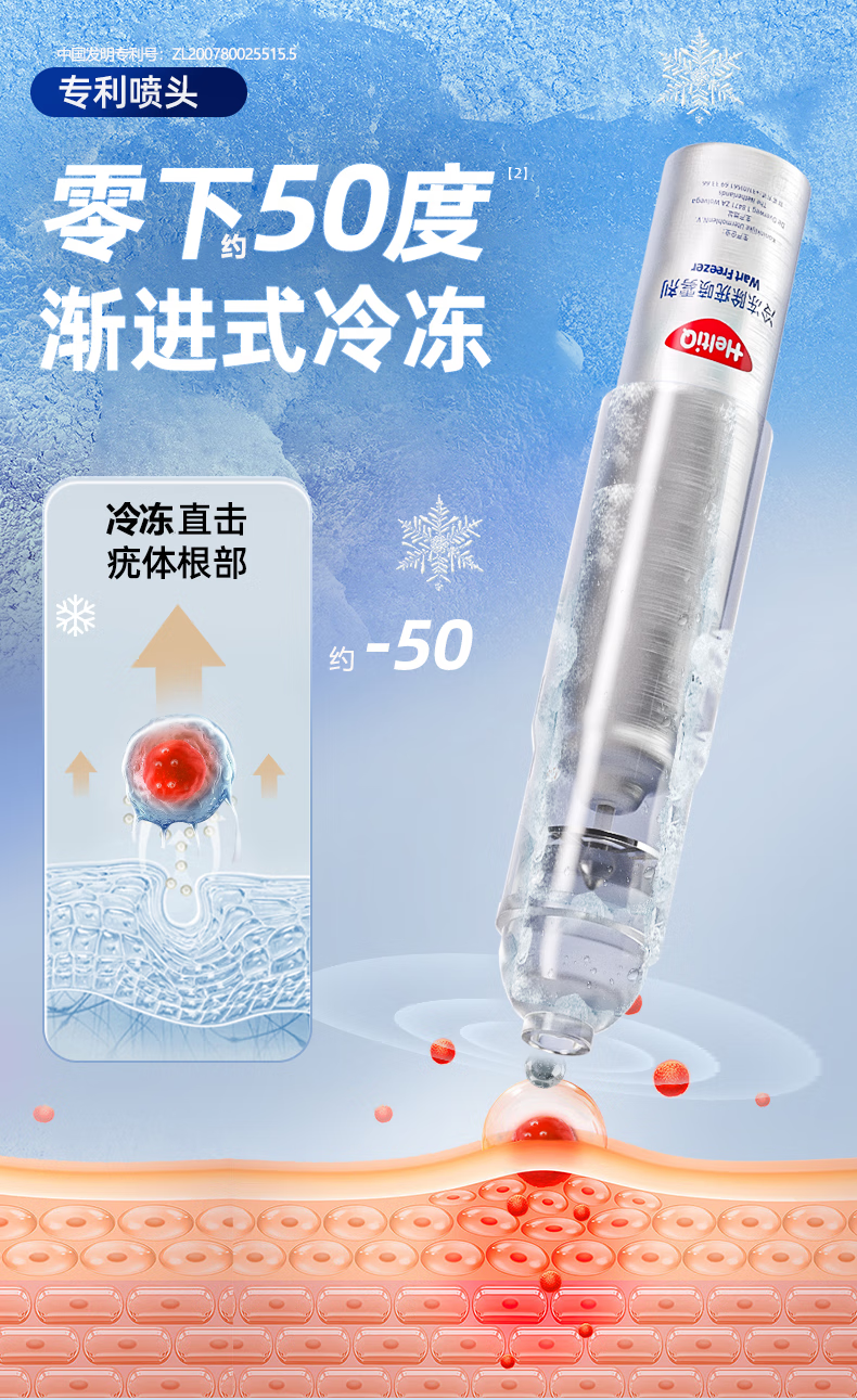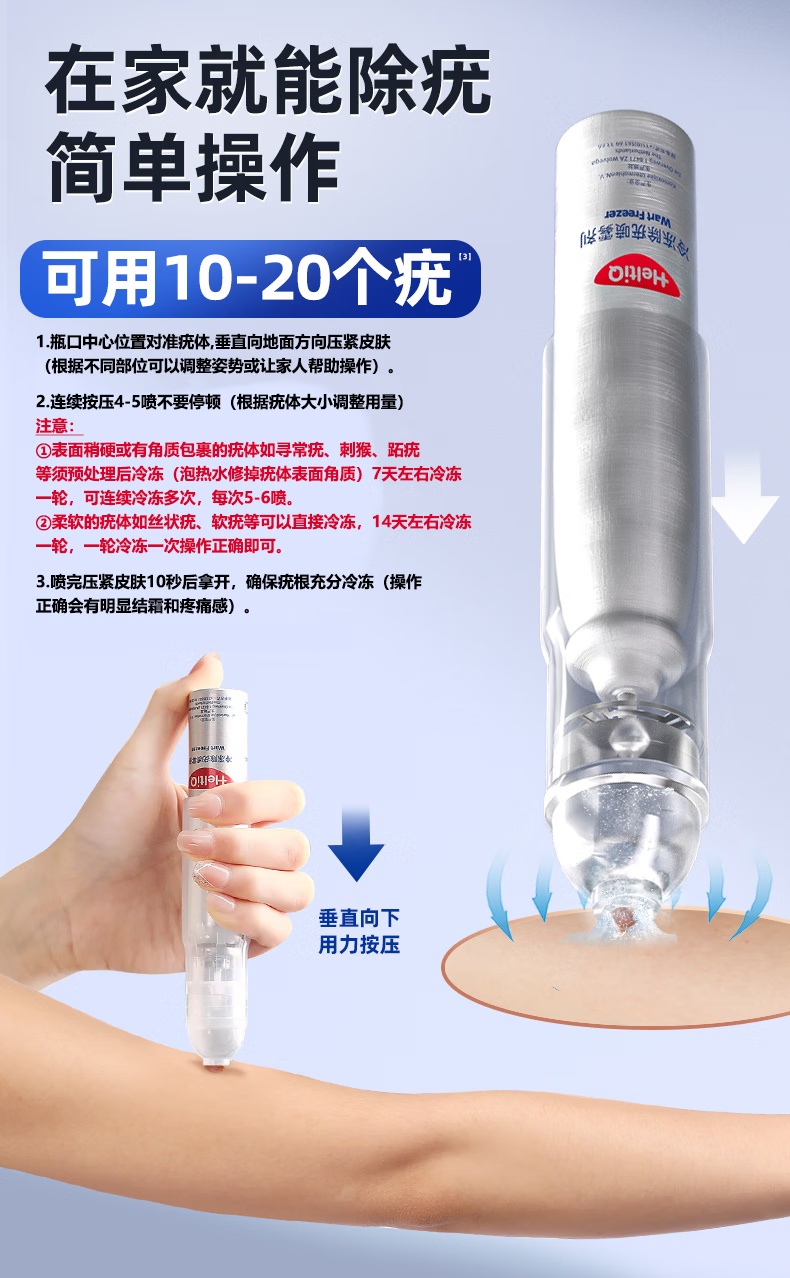 荷迪优冷冻除疣喷雾剂去疣喷剂丝状疣扁平疣跖疣湿疣菜花医用冷冻疣38ml 1盒38ml【丝状疣皮赘软疣可冷冻15-20颗】