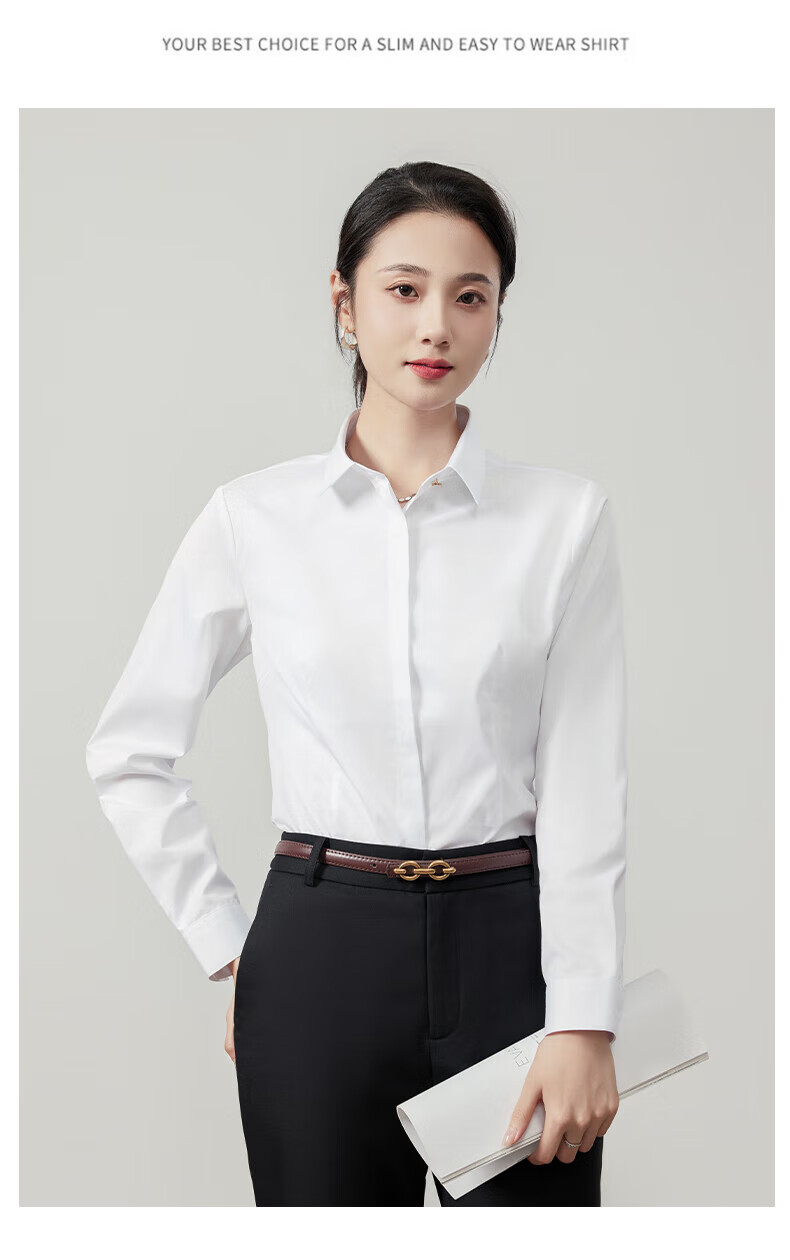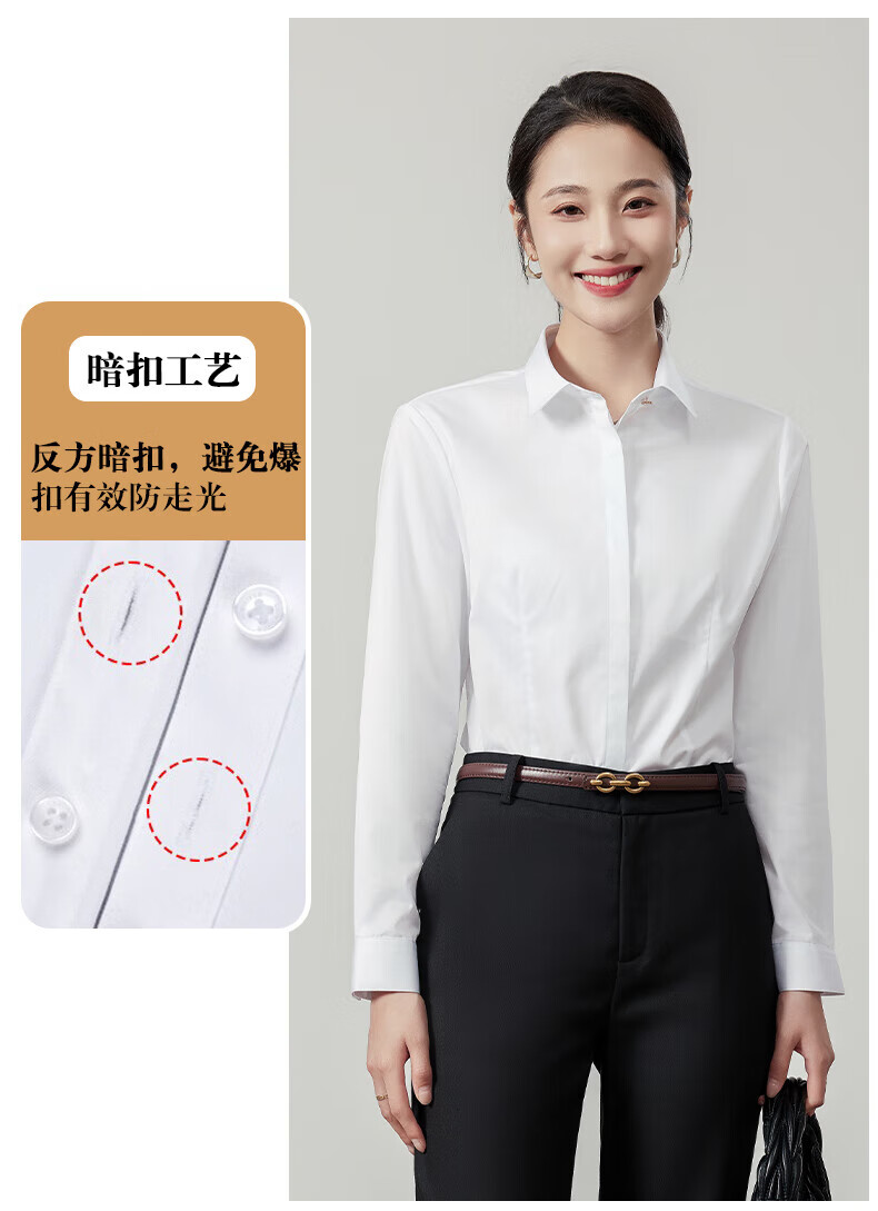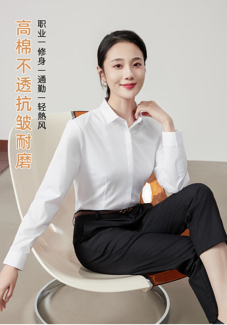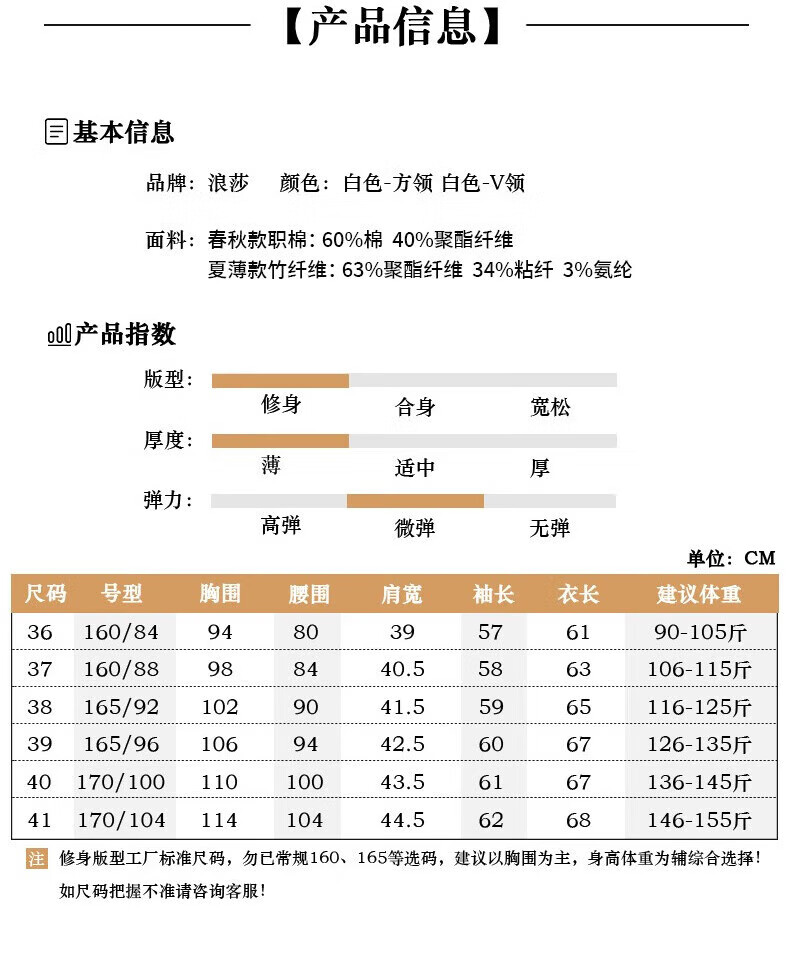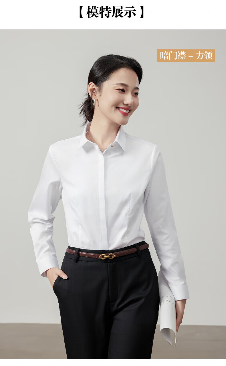 浪莎长袖白衬衫女春秋季高棉通勤职业正装气质修身高级垂感白色衬衫女 白色 -方领暗门襟 38 (适合116-125斤)