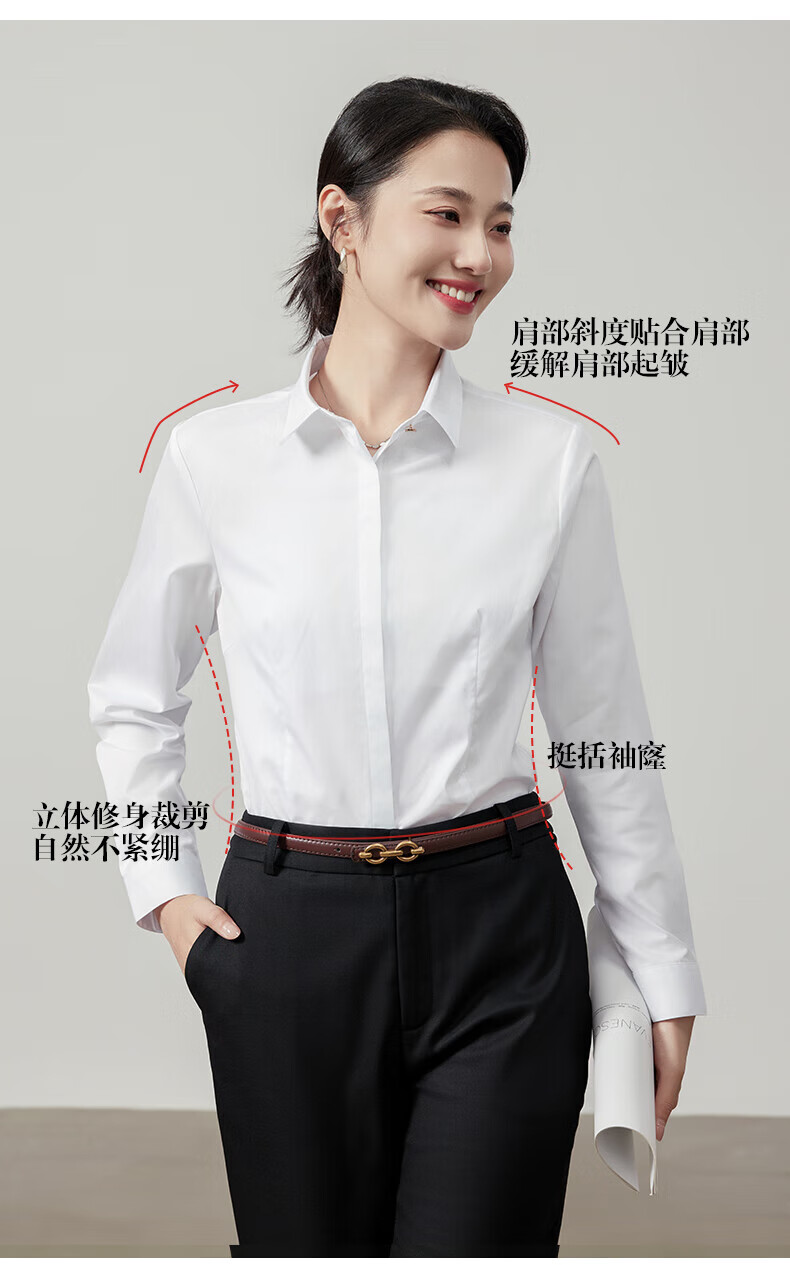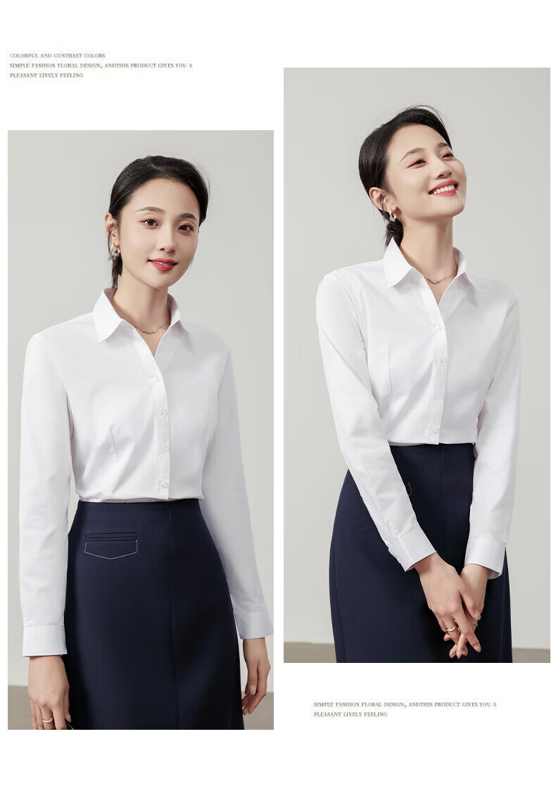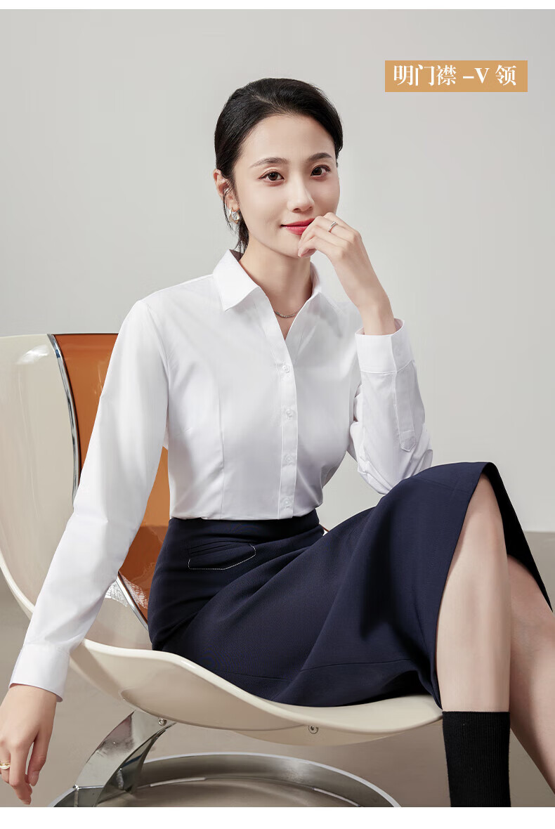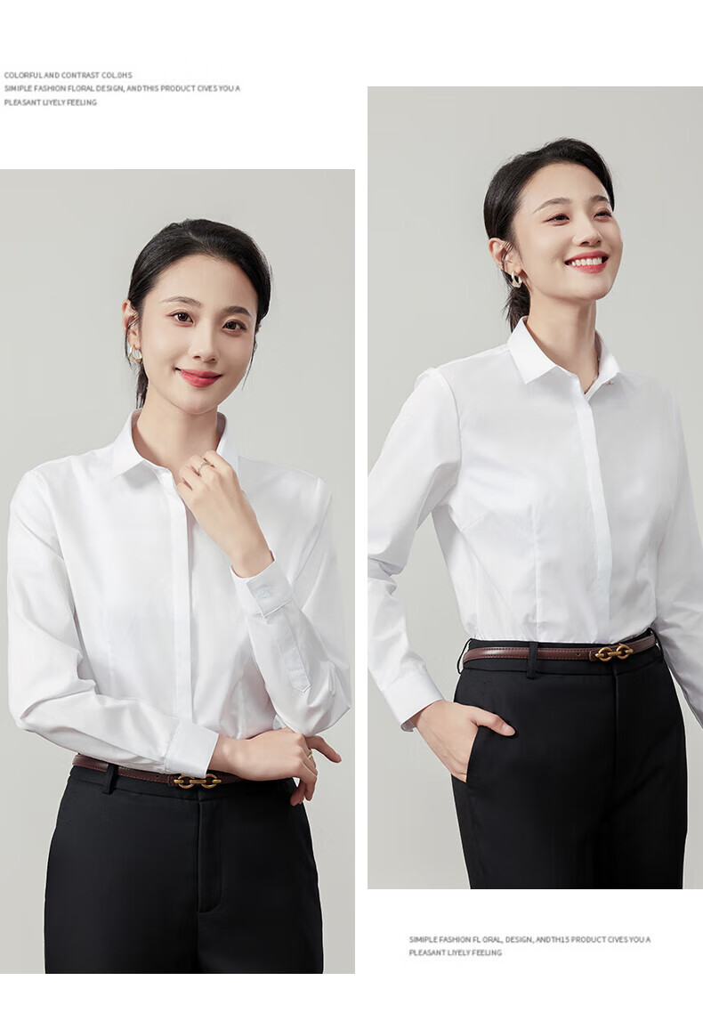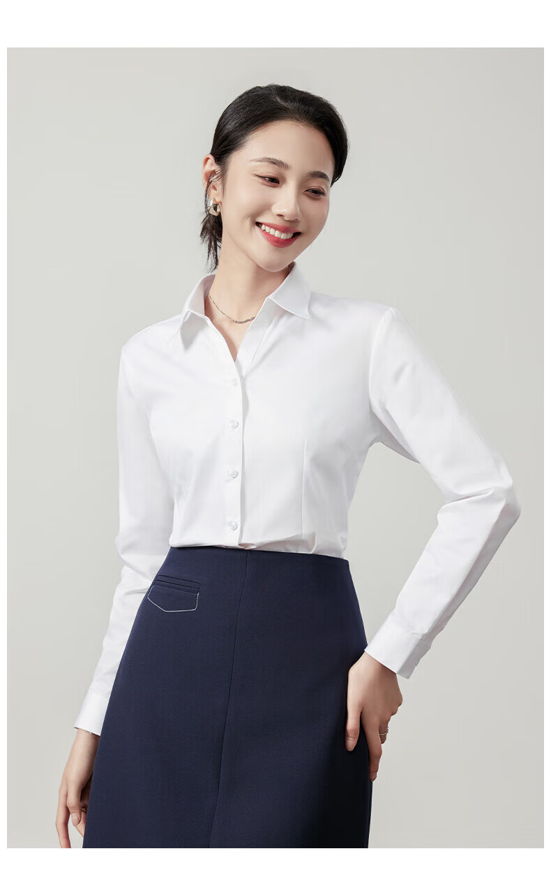 浪莎长袖白衬衫女春秋季高棉通勤职业正装气质修身高级垂感白色衬衫女 白色 -方领暗门襟 38 (适合116-125斤)