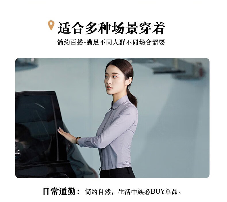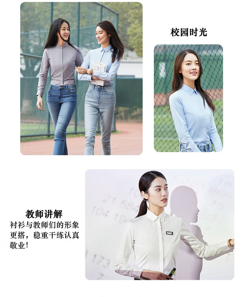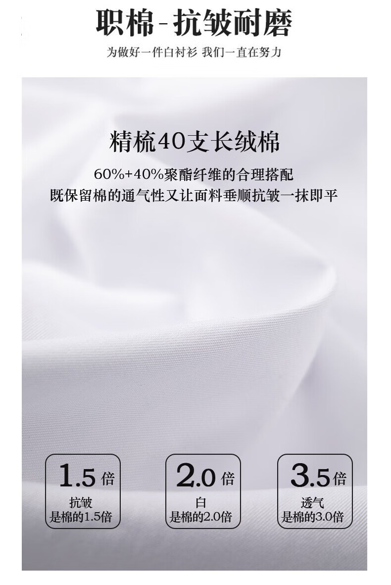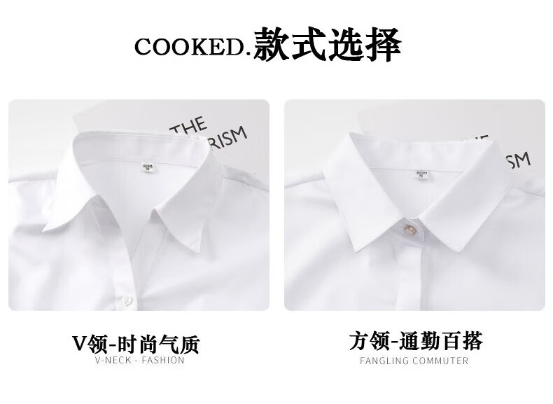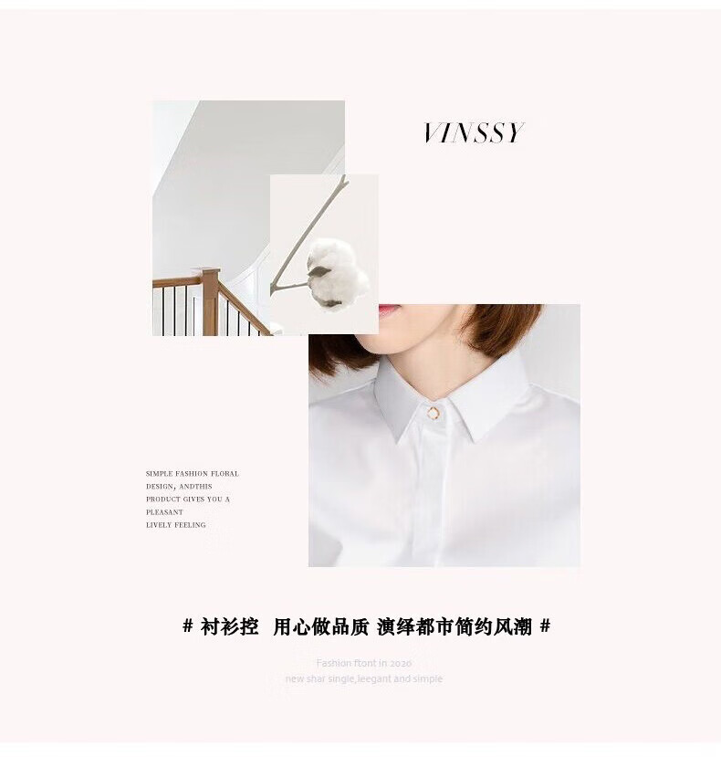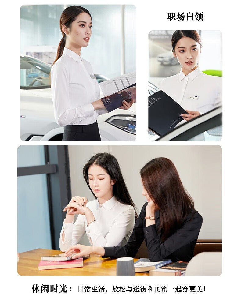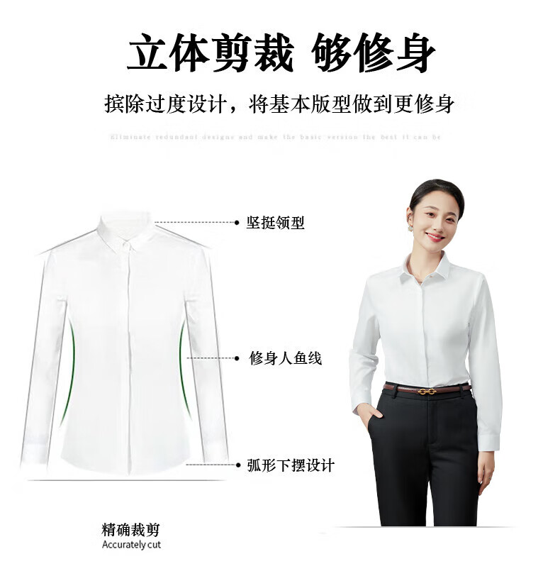浪莎长袖白衬衫女春秋季高棉通勤职业正装气质修身高级垂感白色衬衫女 白色 -方领暗门襟 38 (适合116-125斤)