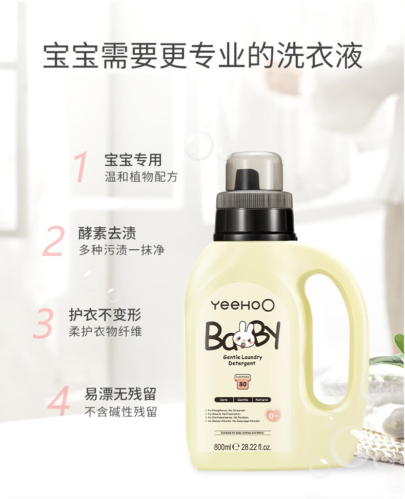 英氏婴儿洗衣液宝宝专用新生婴幼儿内裤清洁剂酵素去渍儿童清洗液 【3.6斤热销组】洗衣液1瓶2袋