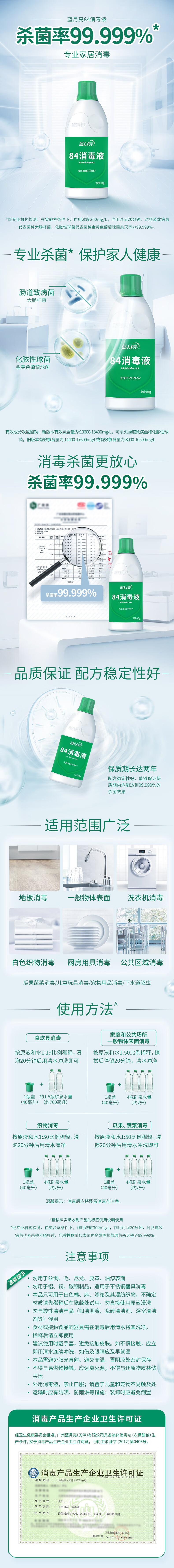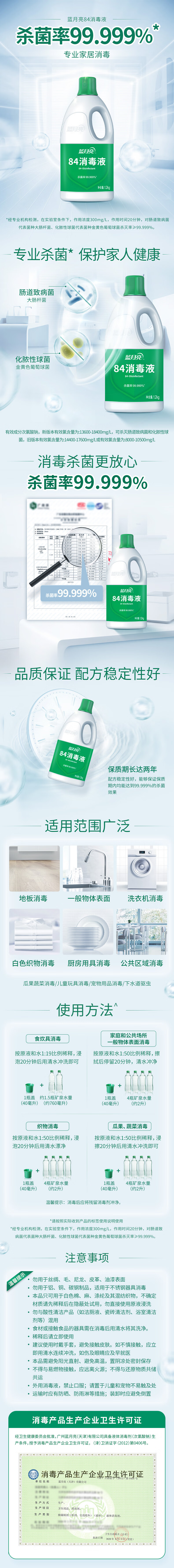 蓝月亮84消毒液 家庭装 杀菌去渍 杀菌率99.999% 【1.2kg*2】84消毒液