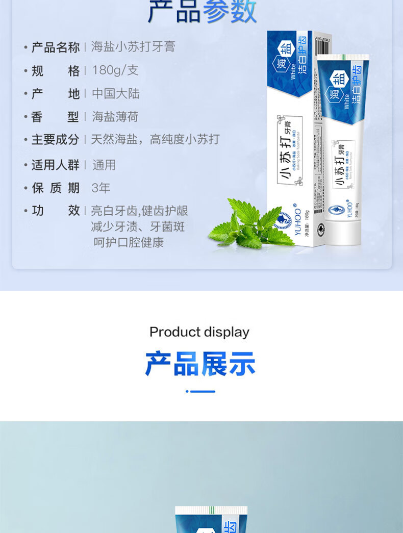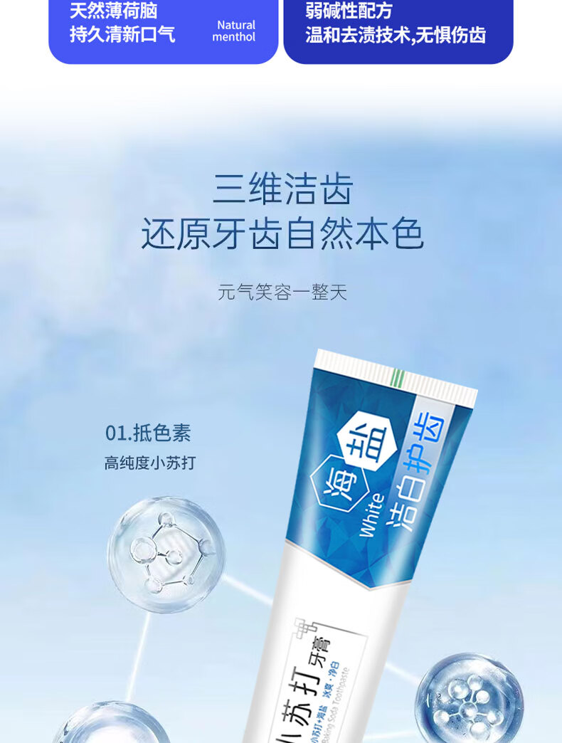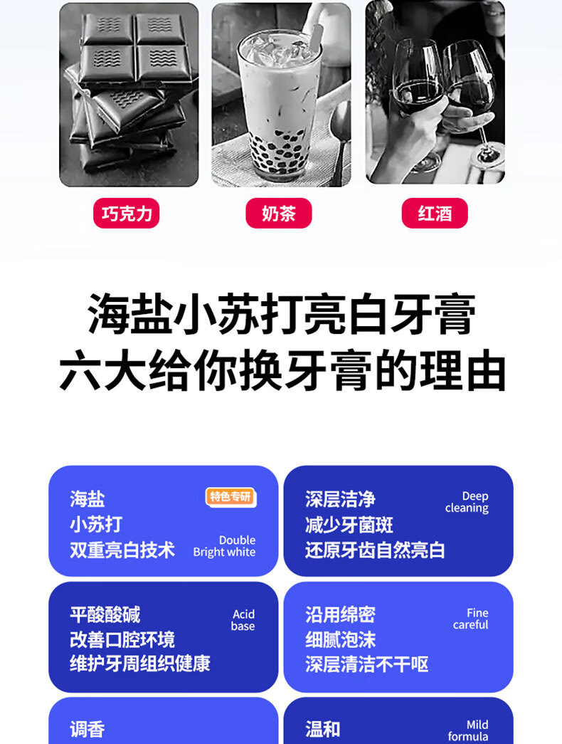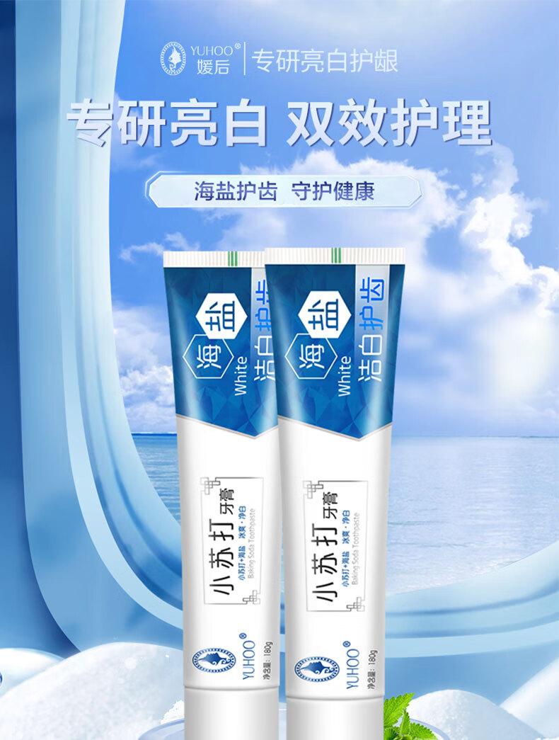 媛后牙膏海盐小苏打牙齿护龈口气黄烟牙渍清新口气儿童成人学生 海盐小苏打牙膏180g*6盒
