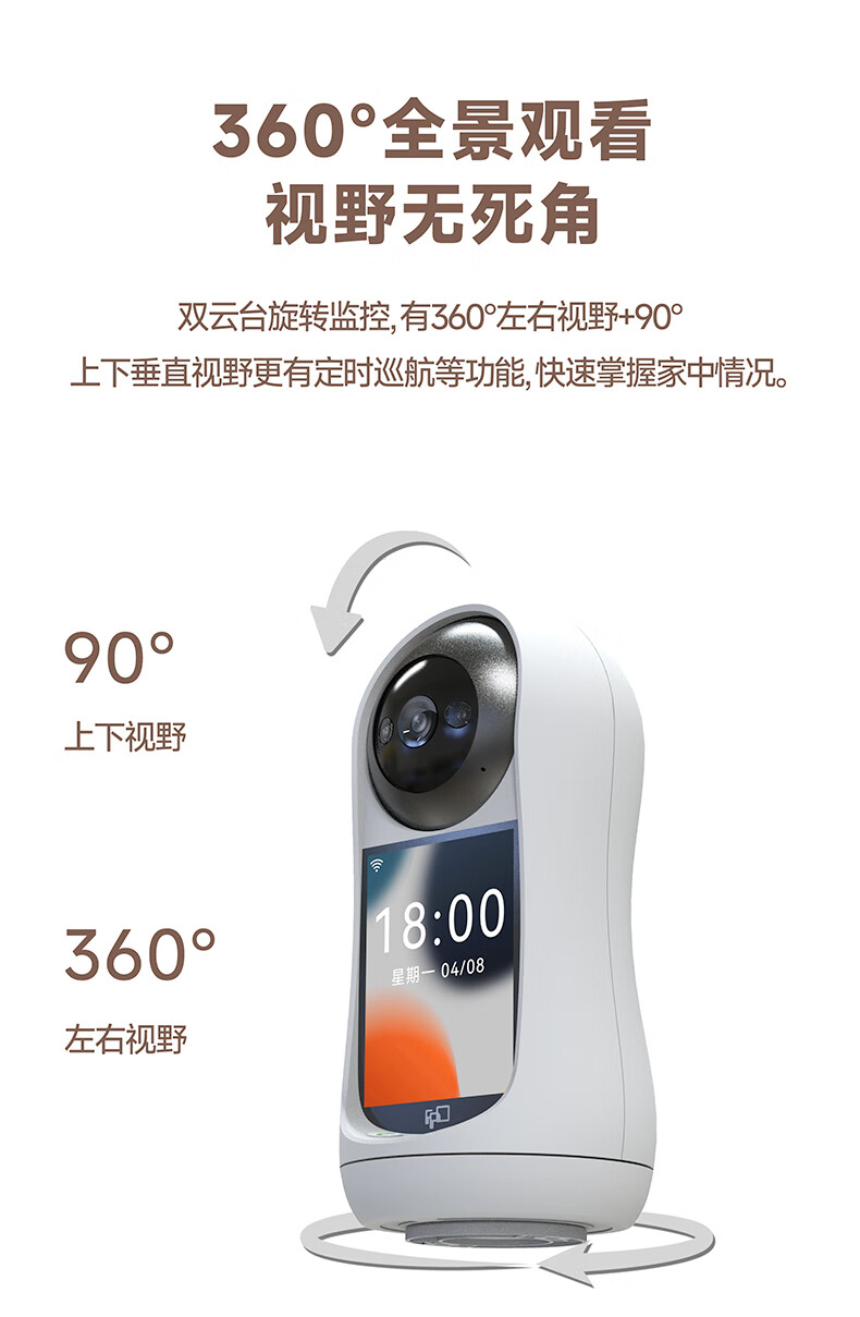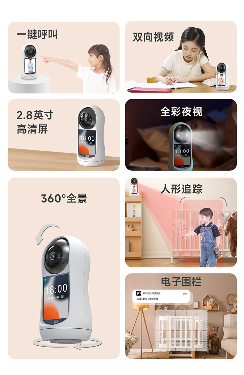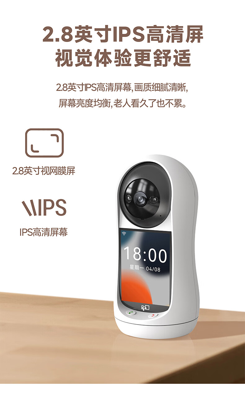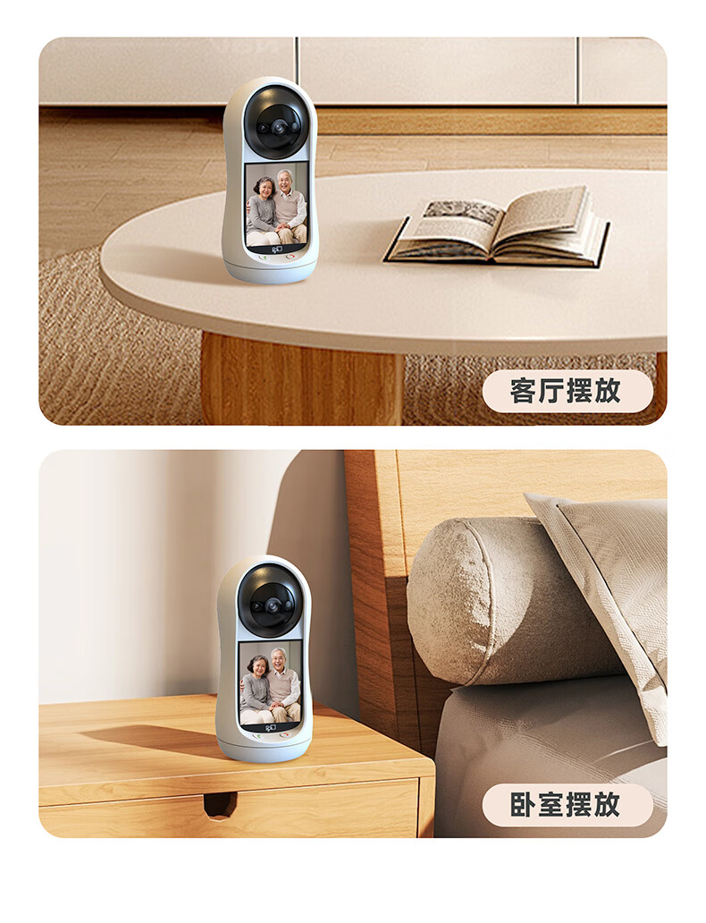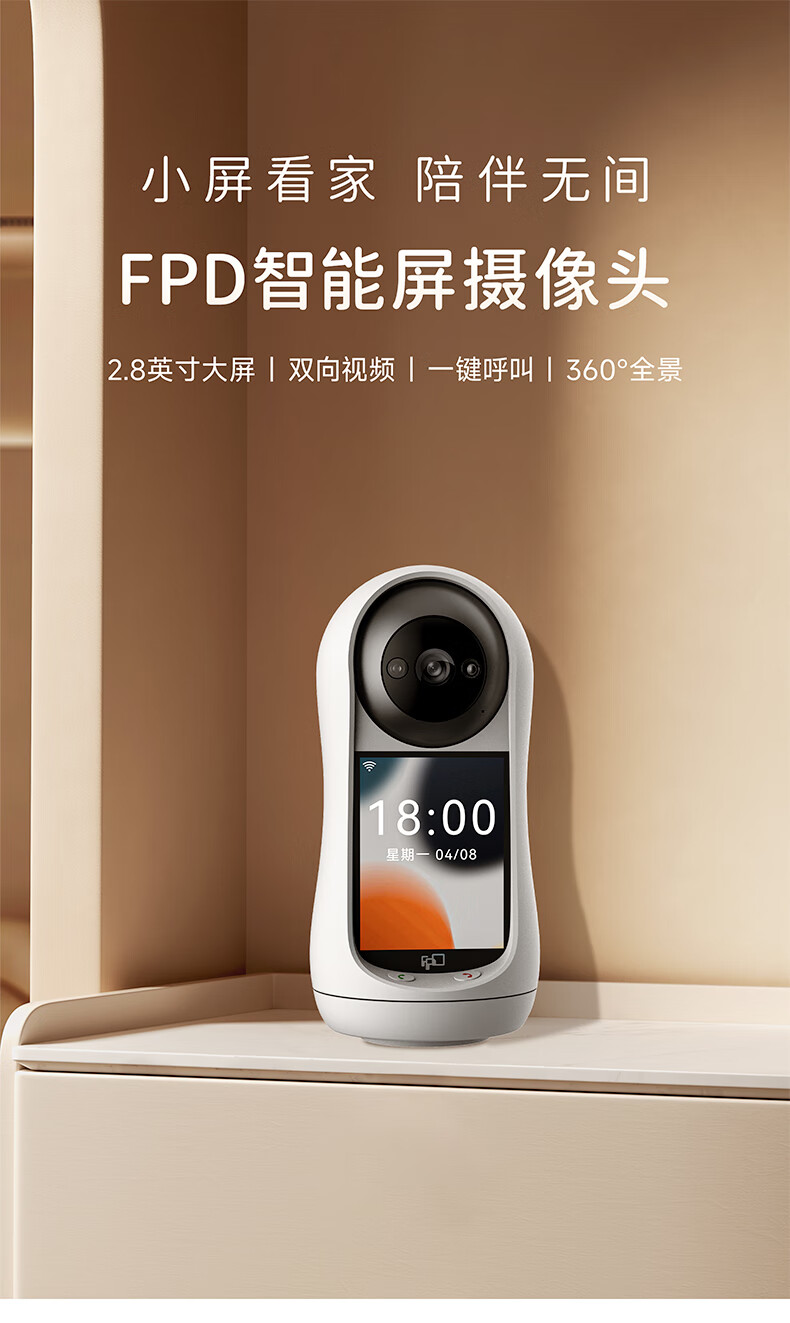FPD无线智能摄像头 家用室内家庭高清双向视频通话手机远程监控器 带屏夜视全景语音可对话 带屏智能摄像头