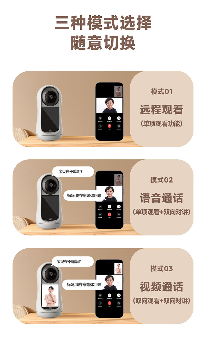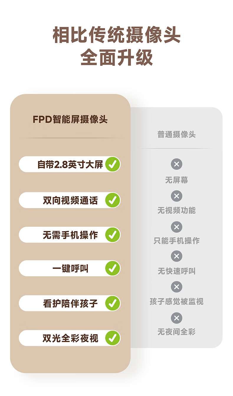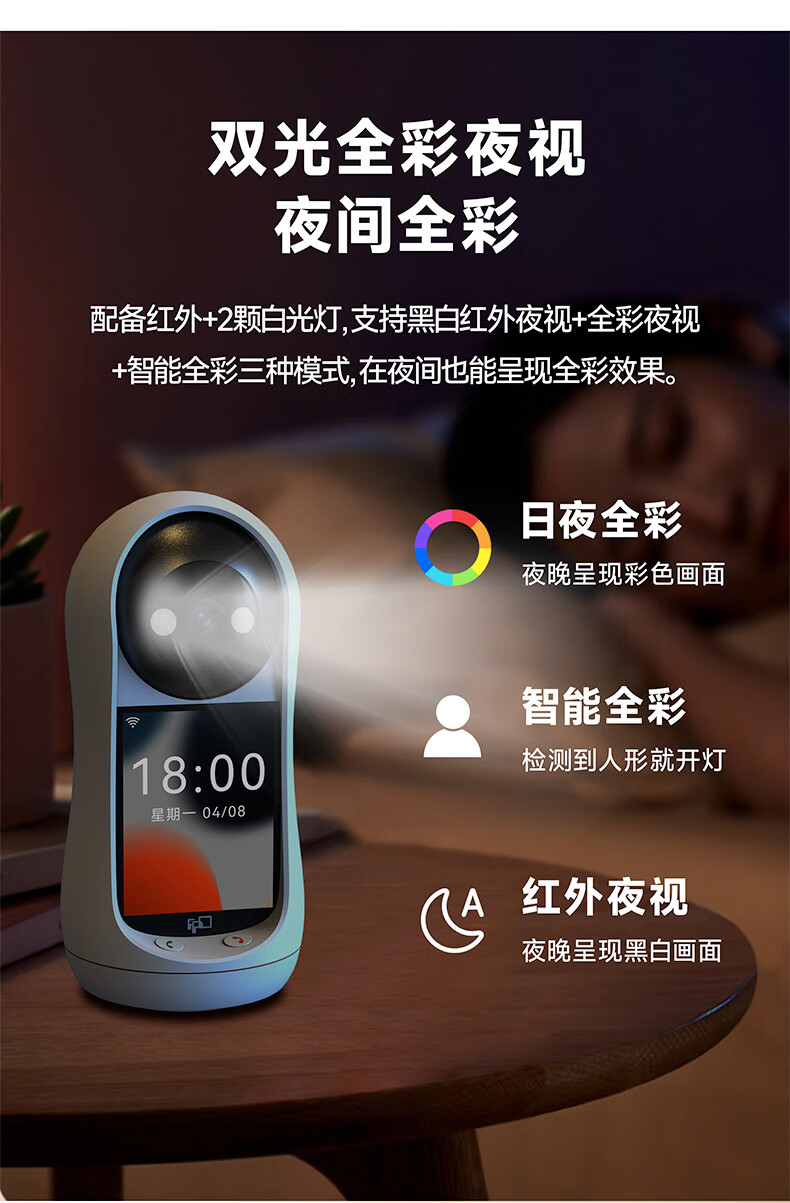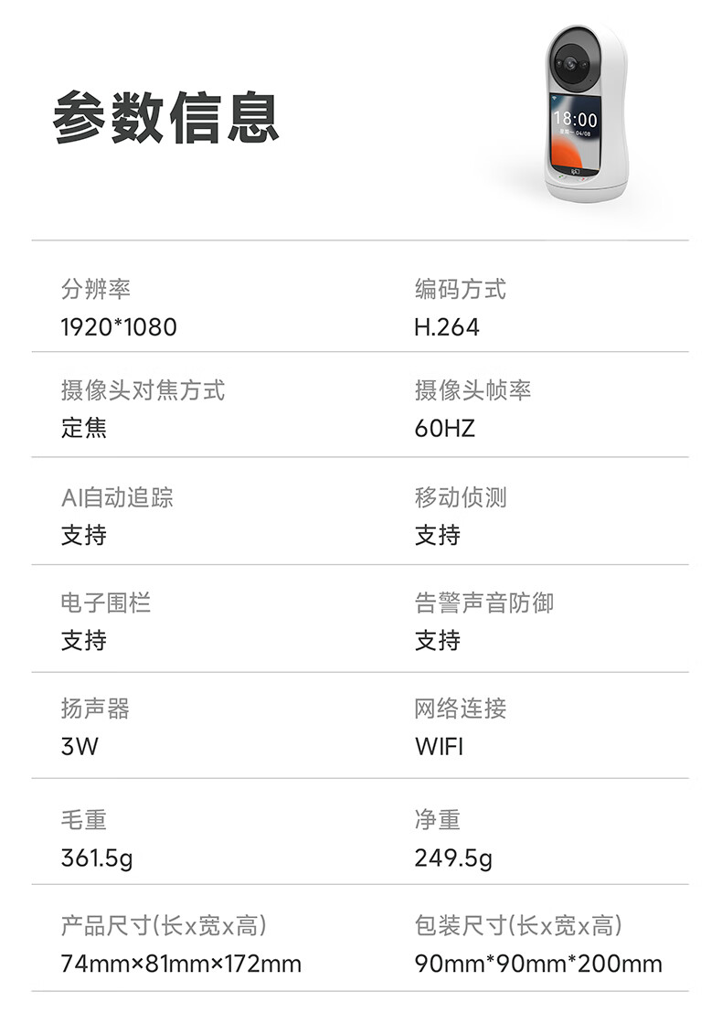 FPD无线智能摄像头 家用室内家庭高清双向视频通话手机远程监控器 带屏夜视全景语音可对话 带屏智能摄像头