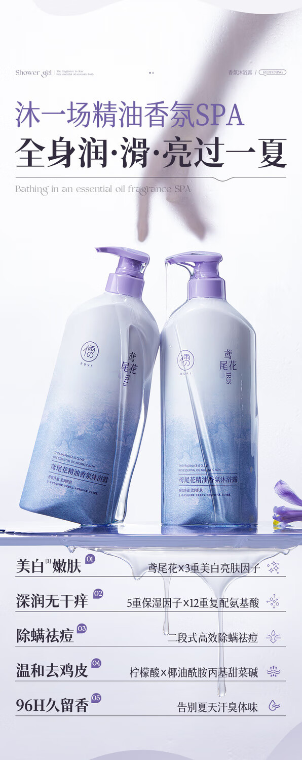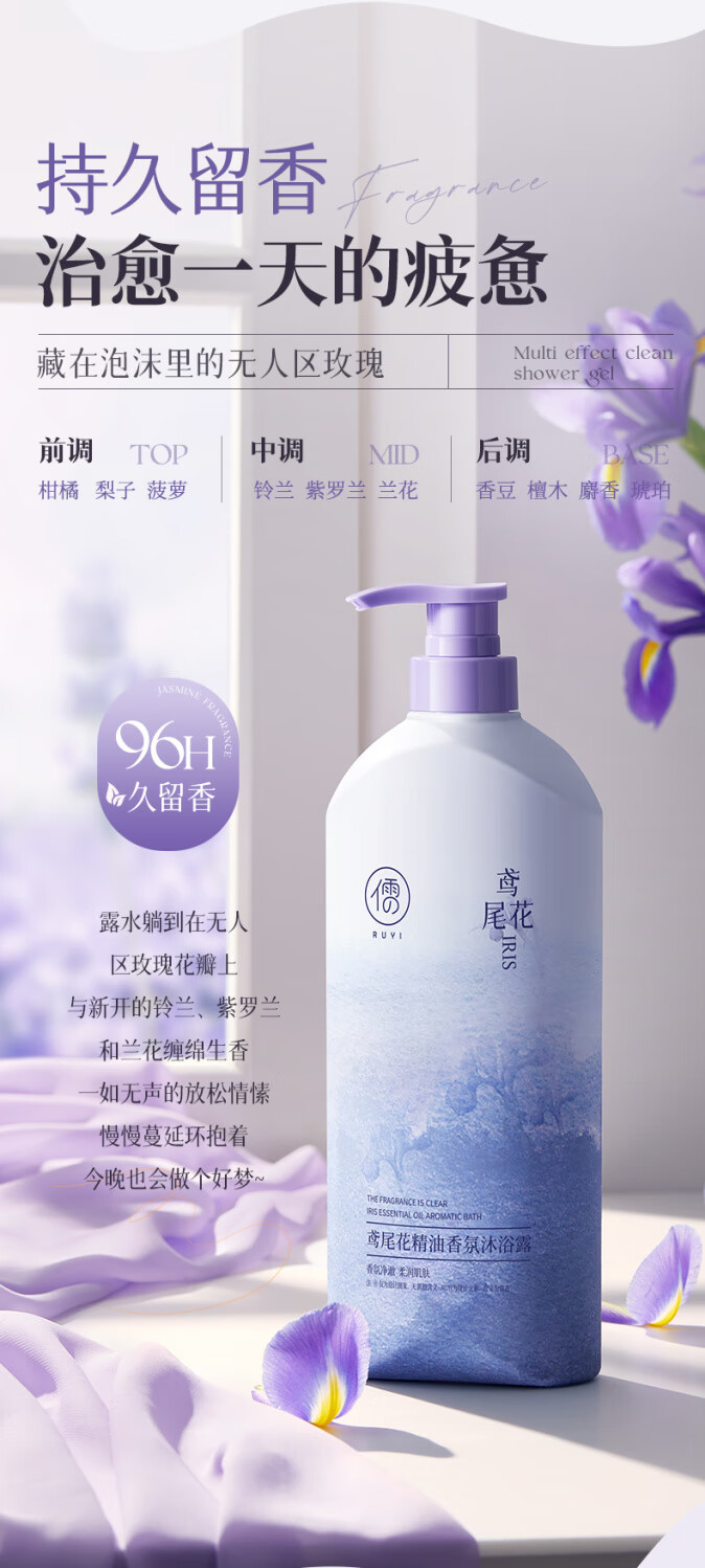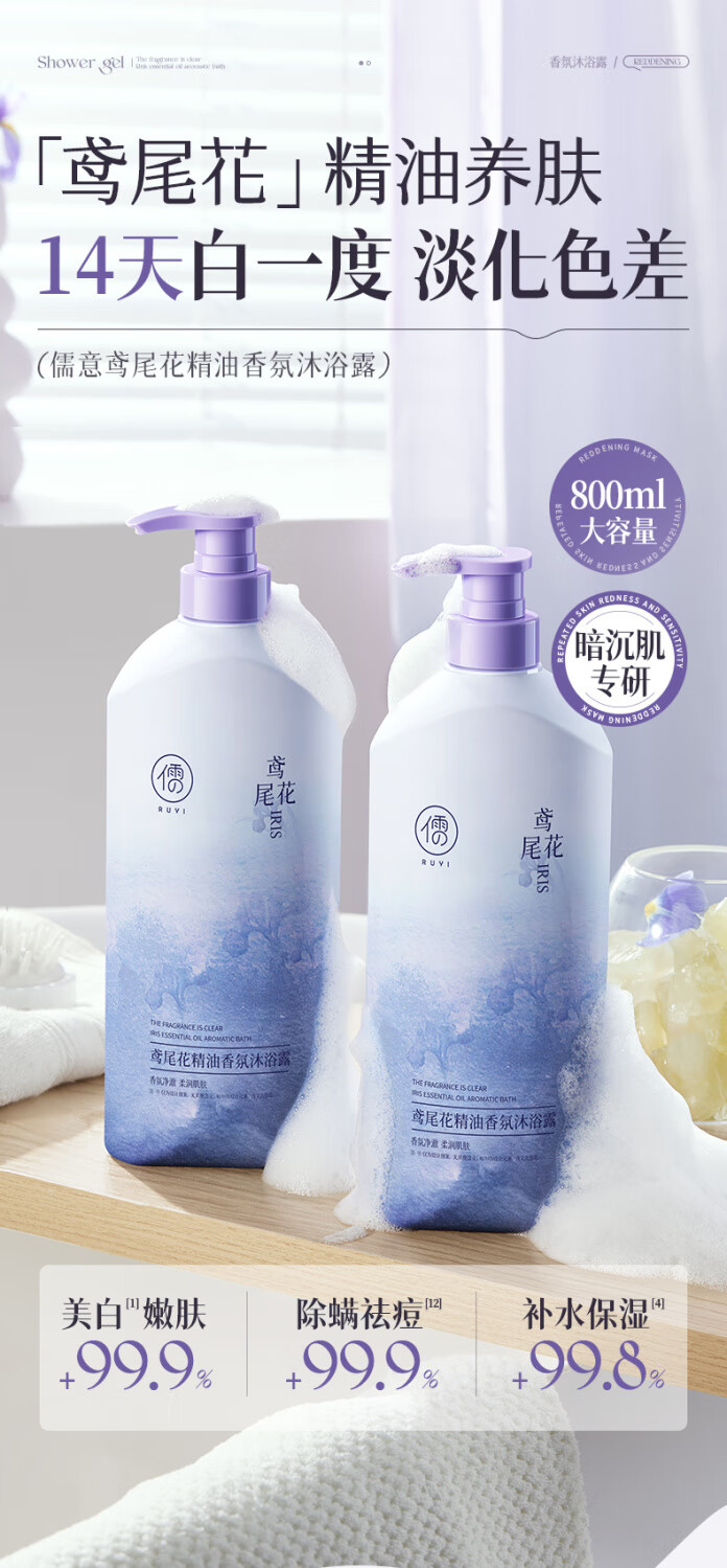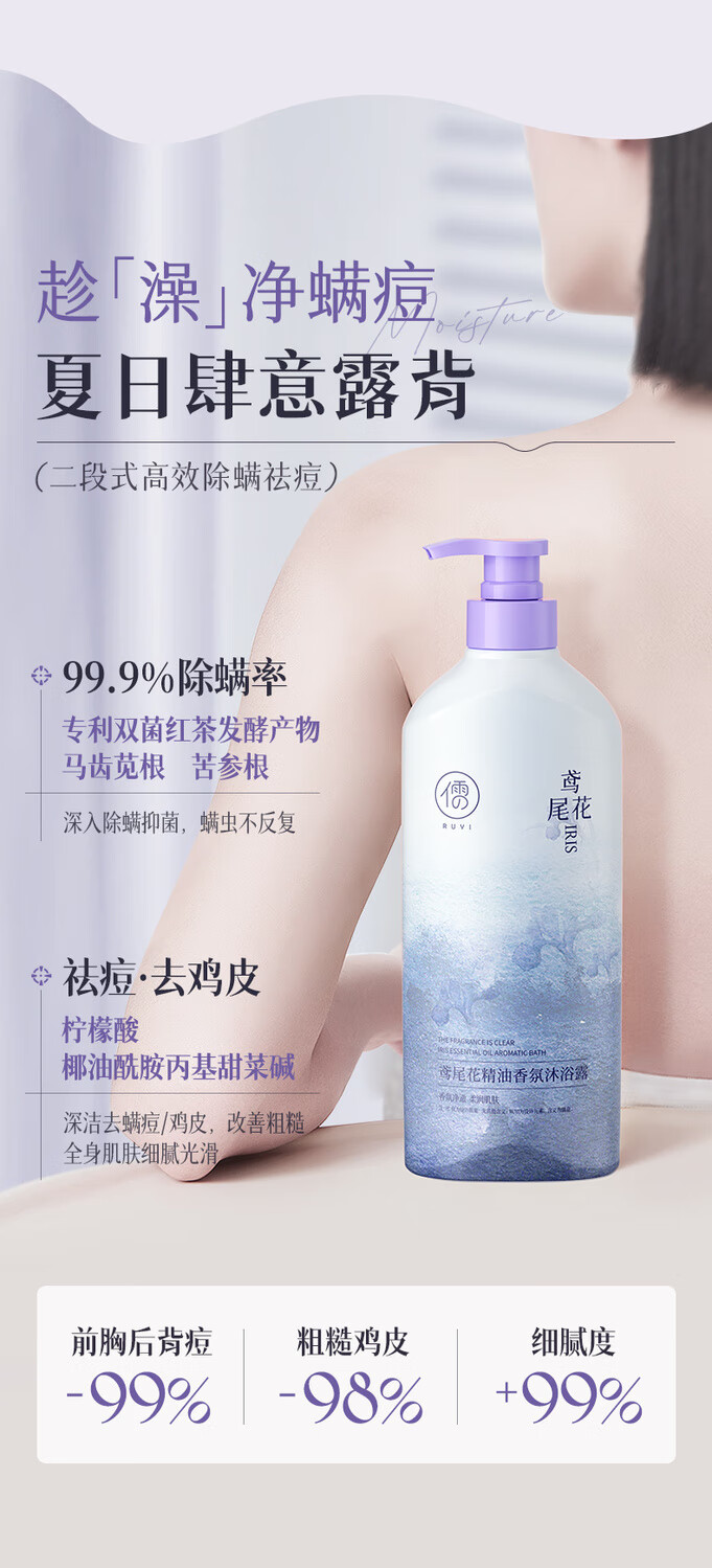 儒意鸢尾花香水沐浴露乳液除螨止痒保湿祛背痘鸡皮持久留香男女士正品 【除螨净背痘】鸢尾花沐浴露800m