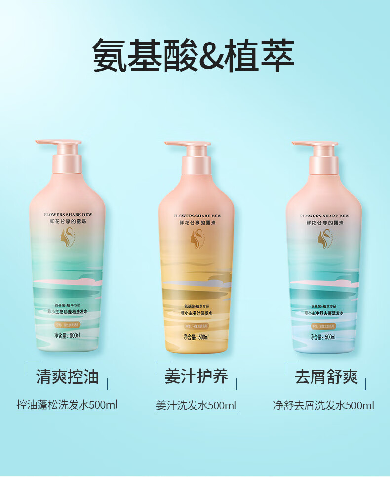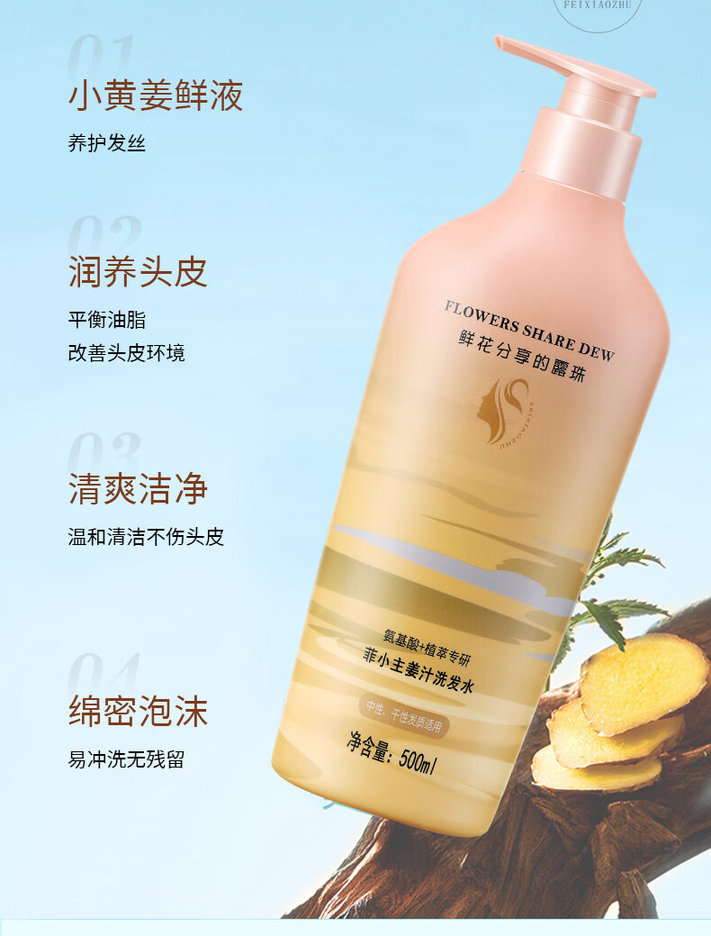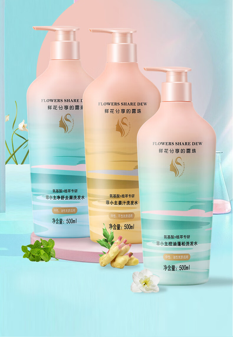 菲小主植萃氨基酸长效保湿留香持久香氛控油蓬松【赠500ml香氛沐浴露】 【控油+姜汁】洗发水*2瓶500ml 洗发露