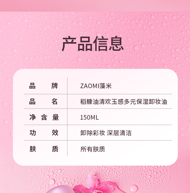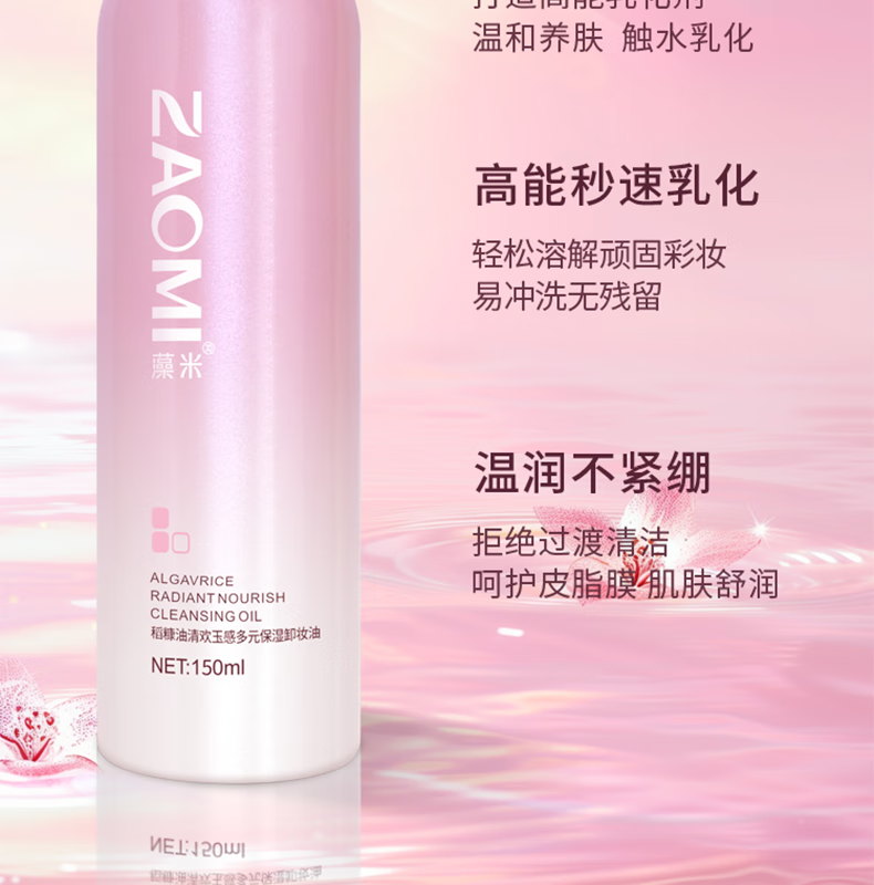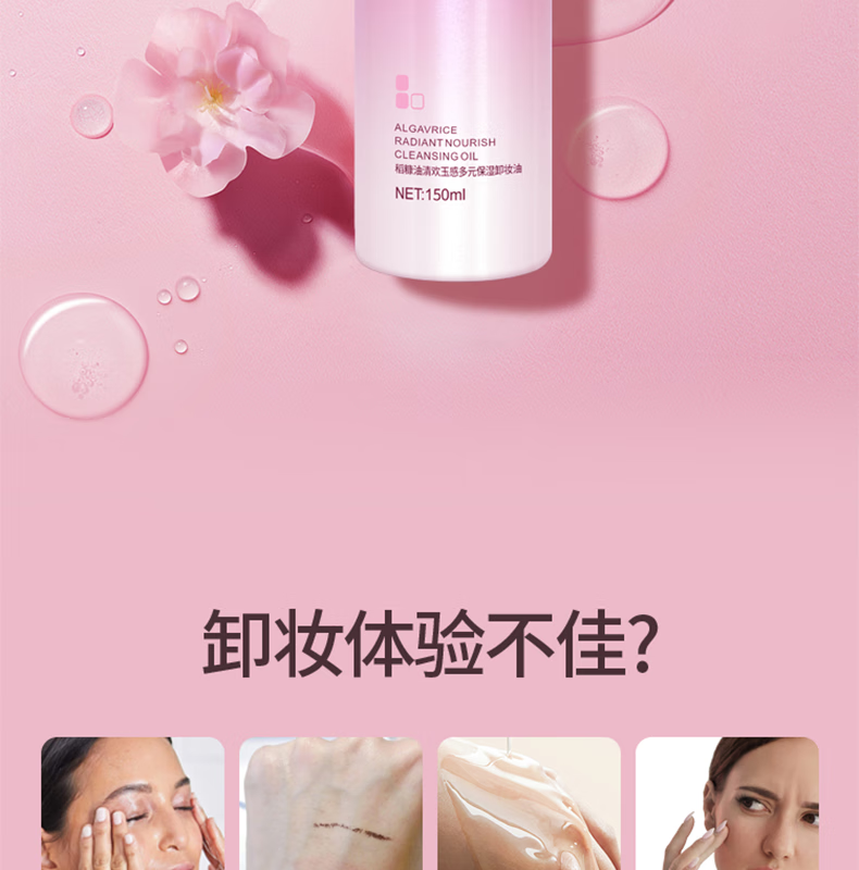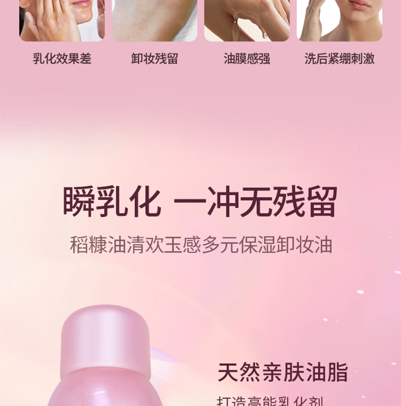 藻米稻糠油清欢玉感多元保湿卸妆油 卸养一体净润舒缓温和不刺激 150ml单支 天然油脂超强卸妆净润舒缓不糊眼