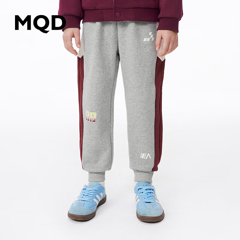 MQD童装男童24春针织运动裤中大儿童学院卫裤 麻灰 140