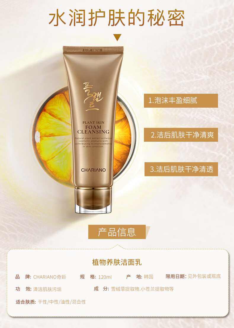 奇姬韩国植物养肤洁面乳 清洁面部不紧绷控油洗面奶女 植物养肤洁面乳 120ml