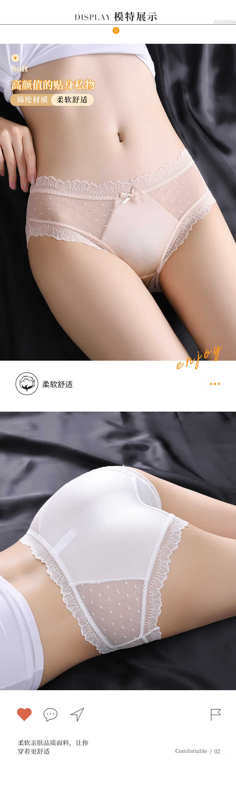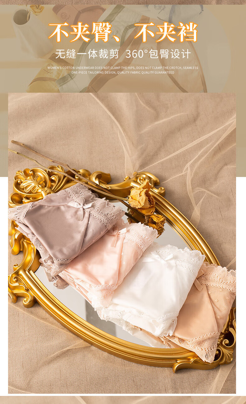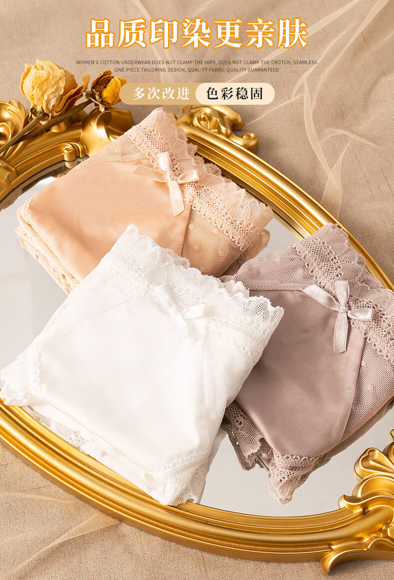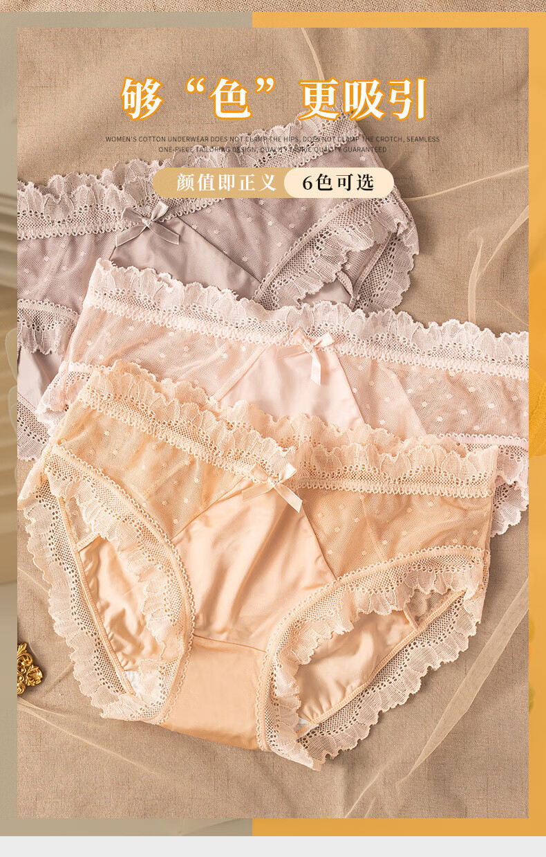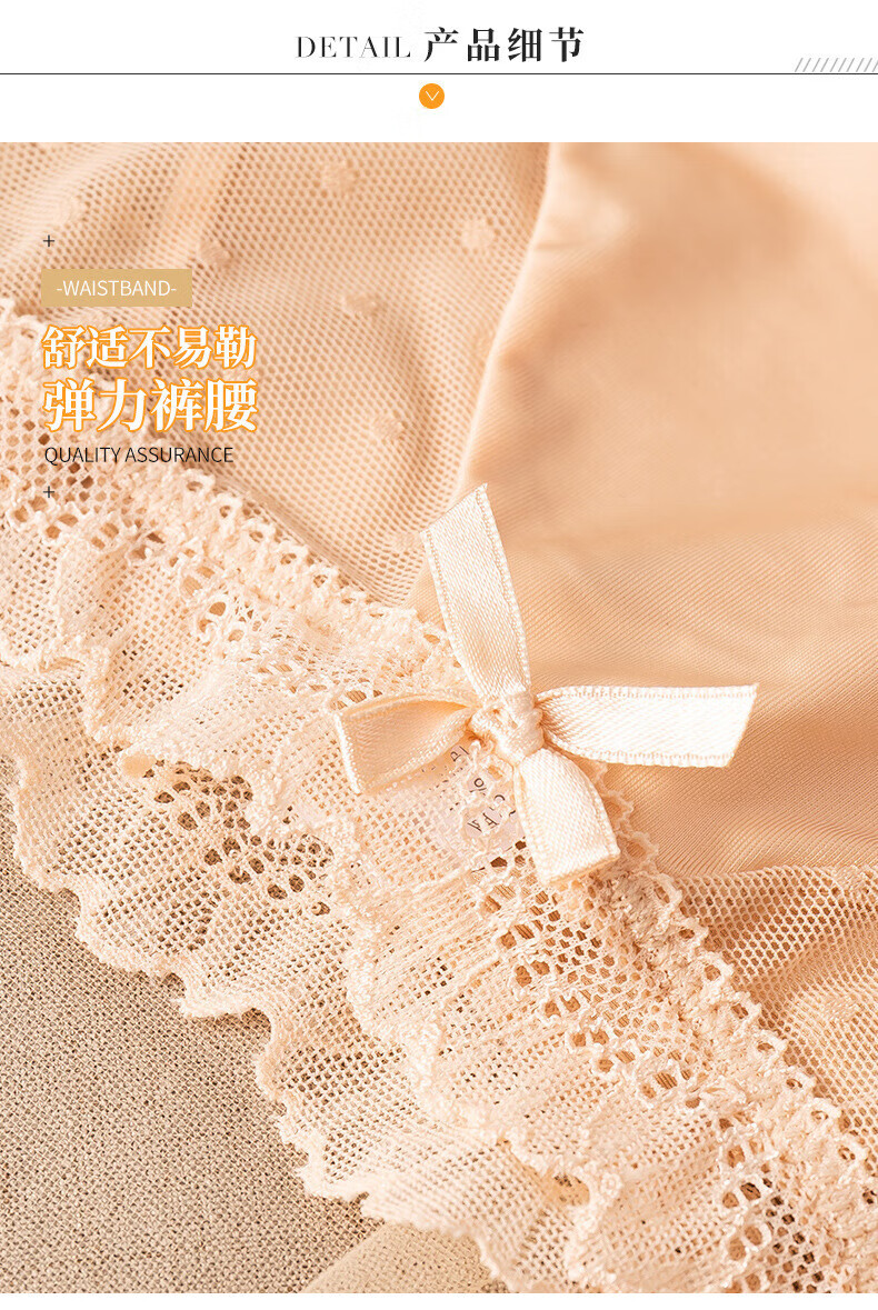 稚蝶日系冰丝拼接蕾丝边女士内裤透明镂空棉内裆 三角裤 5条装 混色 粉色+肤色+白色+黑色随机 5条 L