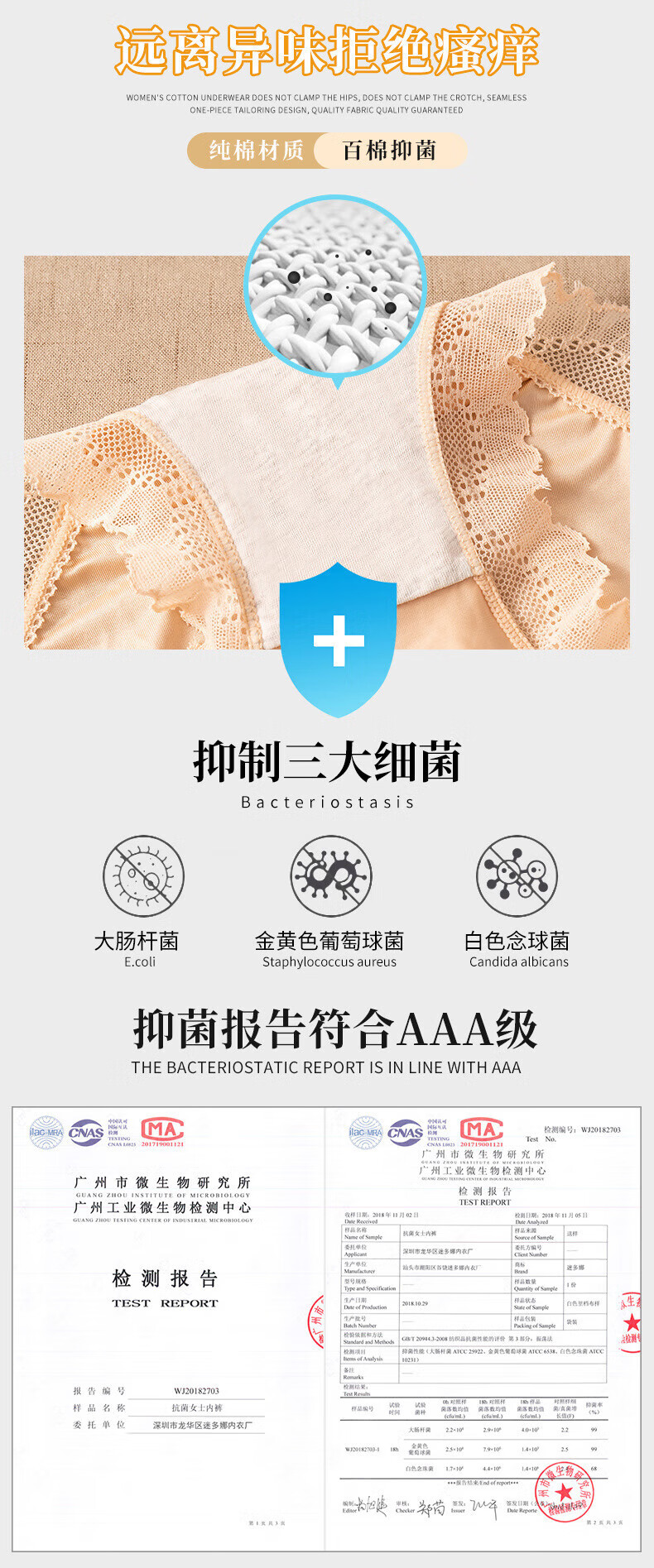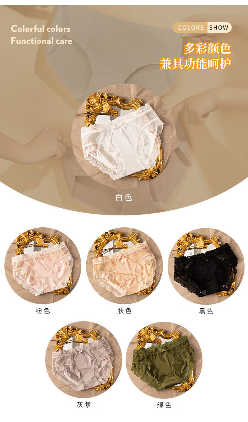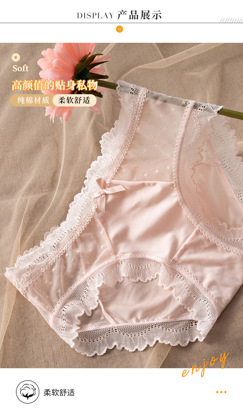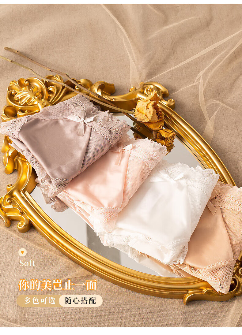 稚蝶日系冰丝拼接蕾丝边女士内裤透明镂空棉内裆 三角裤 5条装 混色 粉色+肤色+白色+黑色随机 5条 L
