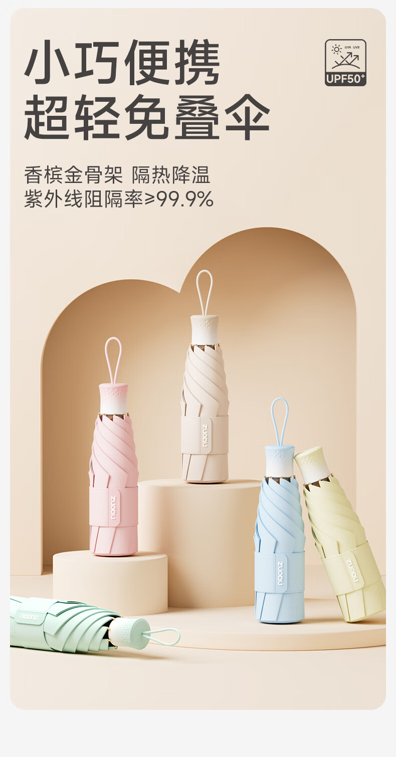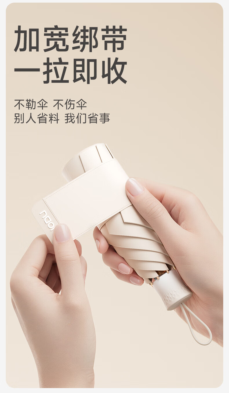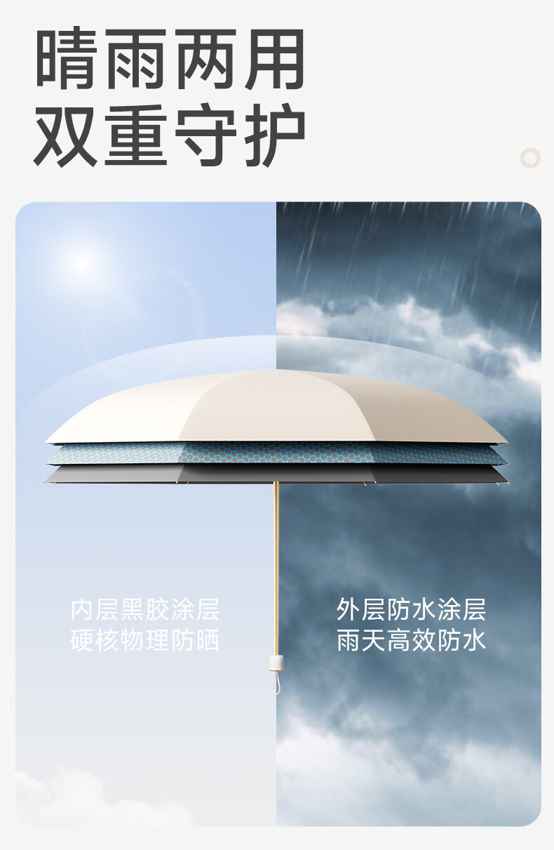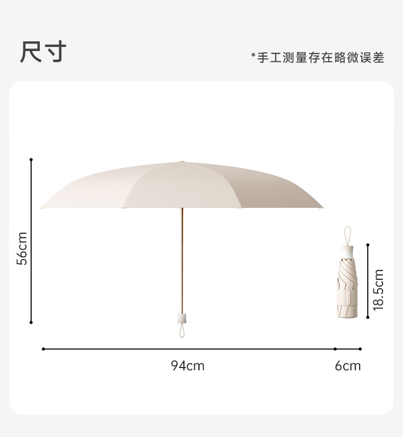 AILUKI德国遮阳太阳防晒伞防紫外线女小巧便携五折抗风晴雨两用折叠高颜 海盐气泡水【免叠秒收魔束带+超 五折手动八股_96cm