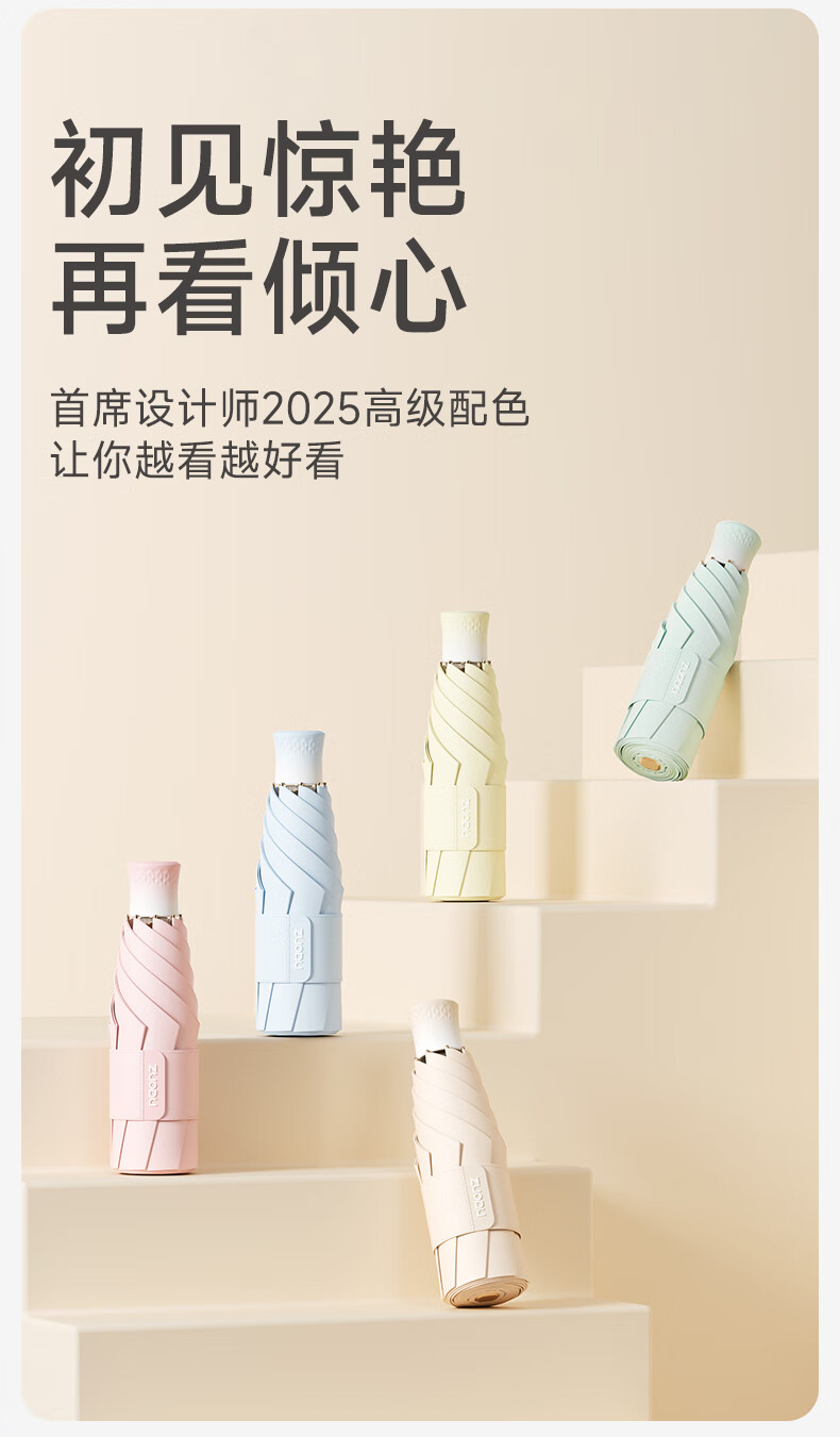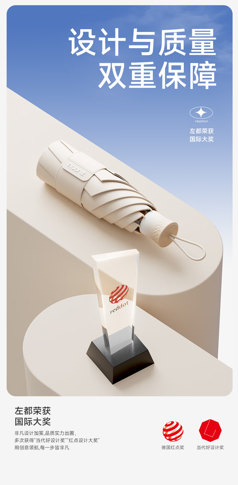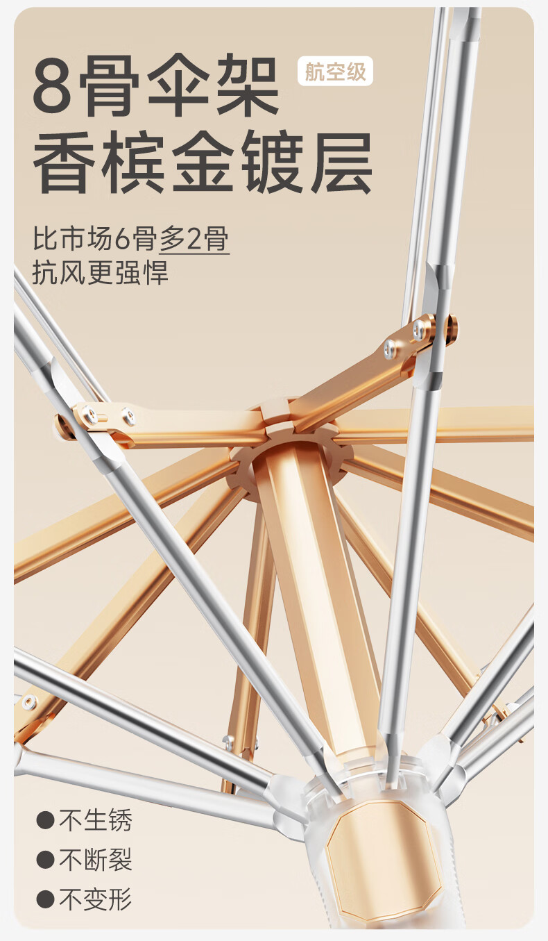 AILUKI德国遮阳太阳防晒伞防紫外线女小巧便携五折抗风晴雨两用折叠高颜 海盐气泡水【免叠秒收魔束带+超 五折手动八股_96cm