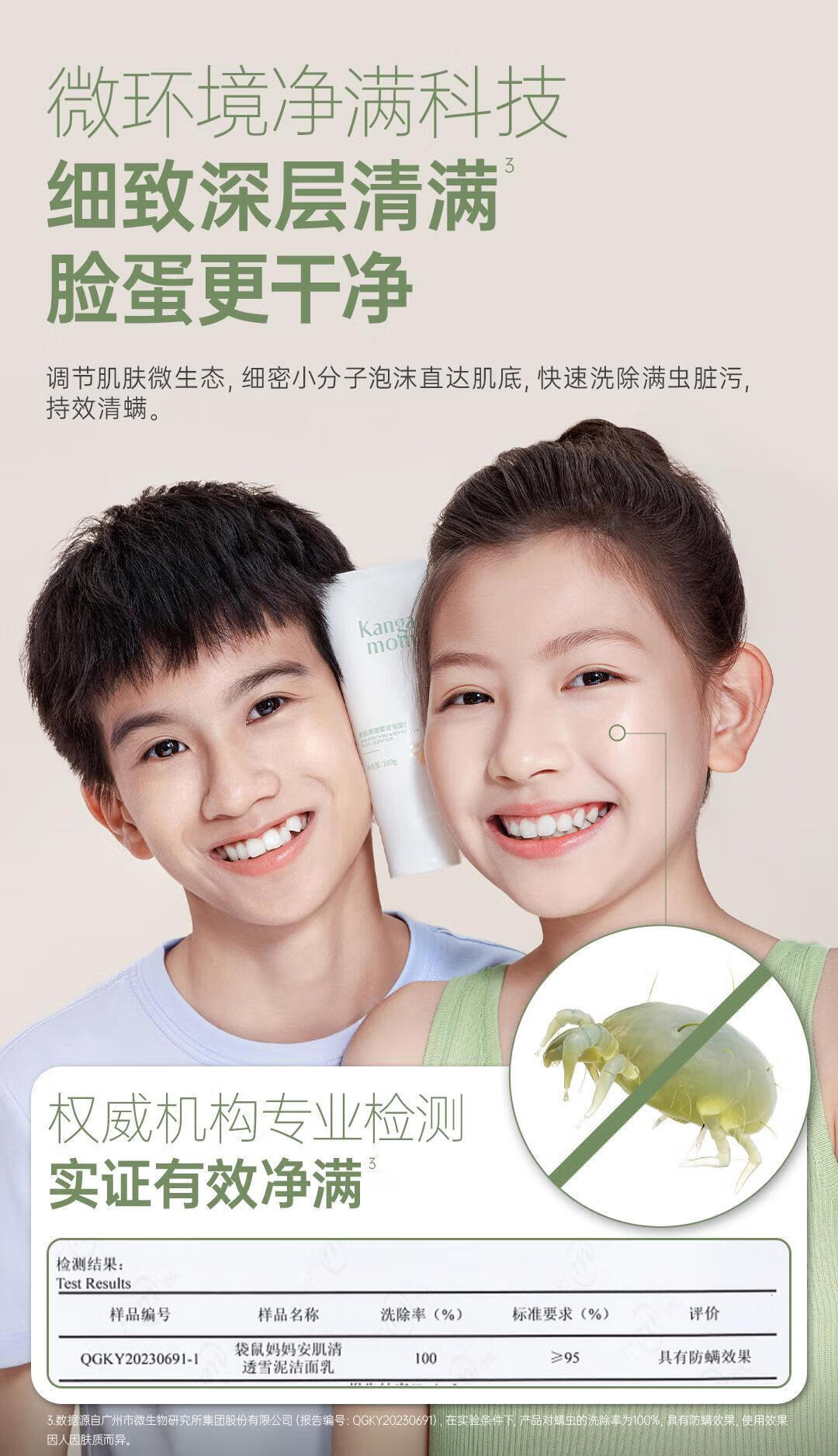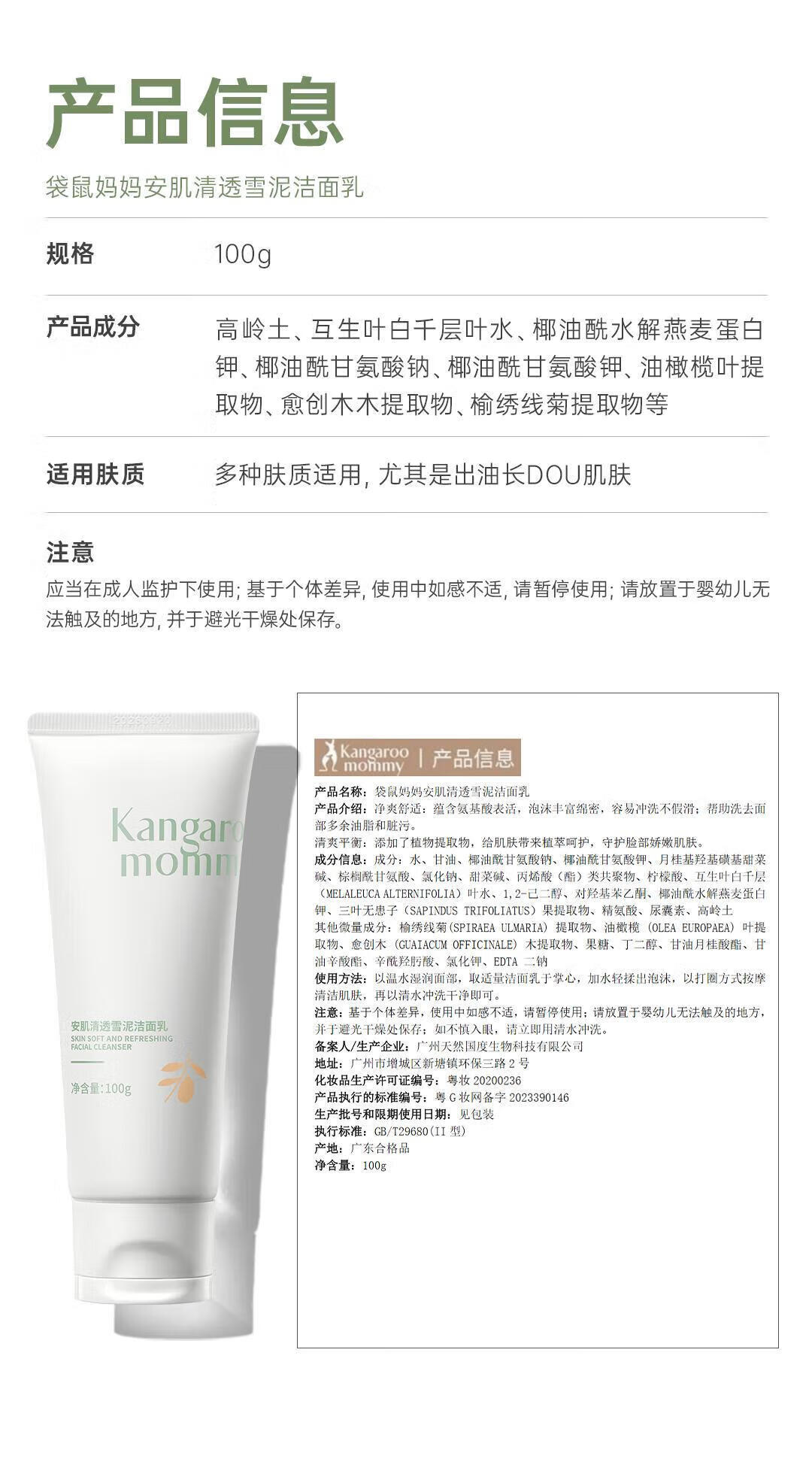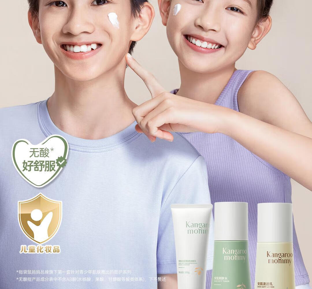 袋鼠妈妈青少年洗面奶男女孩深层清洁保湿舒缓敏感肌适用青春期学生洁面乳 洁面乳100g【第二支半价】