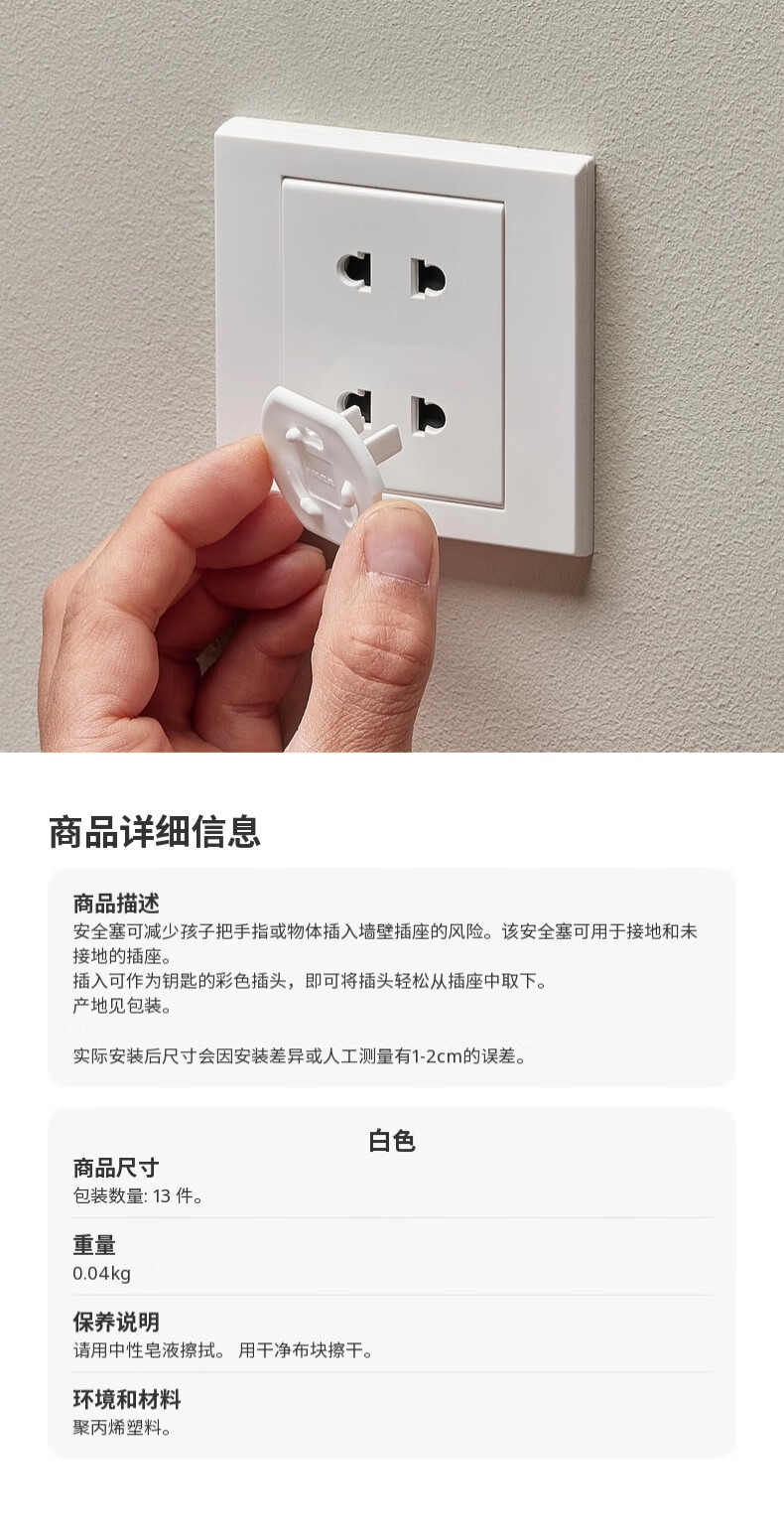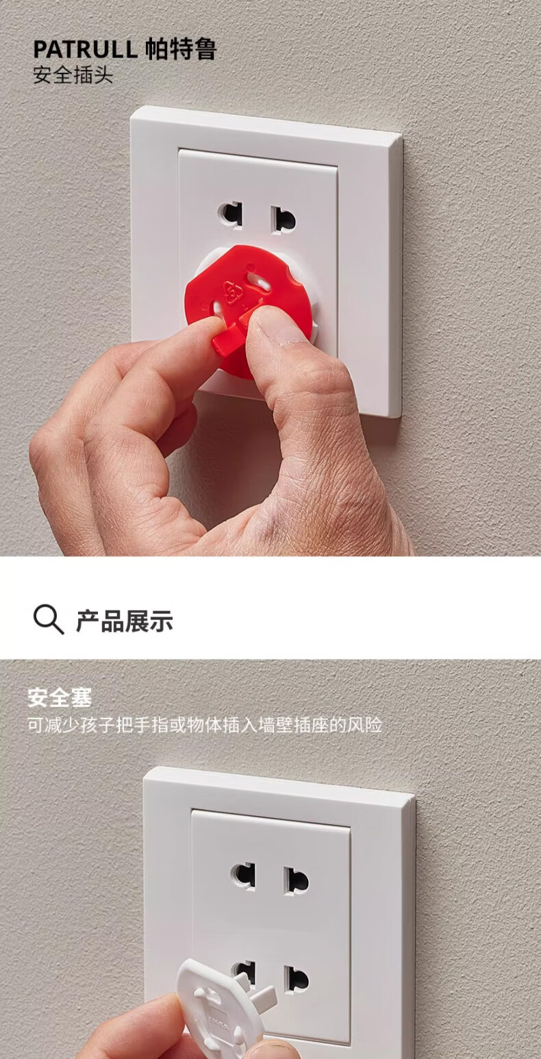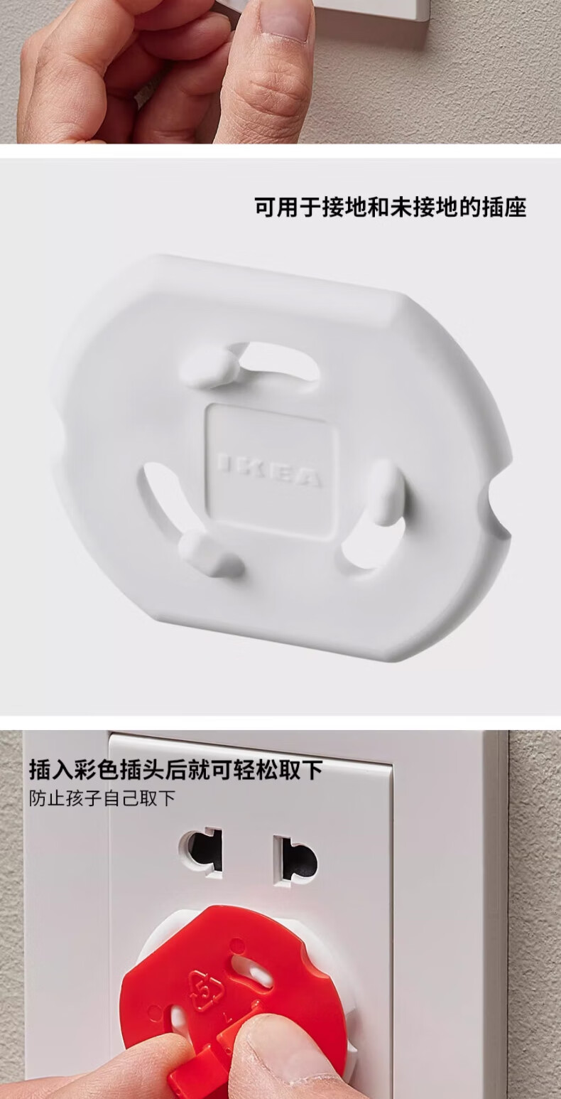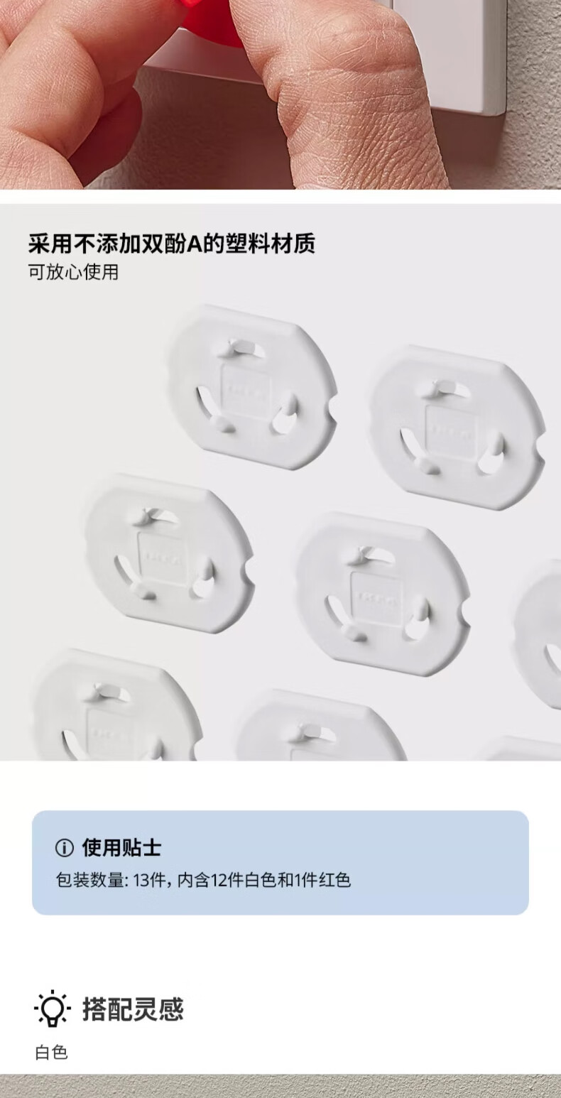 宜家(IKEA)PATRULL帕特鲁安全插头防触电白色现代简约儿童房用 安全插头+防撞角
