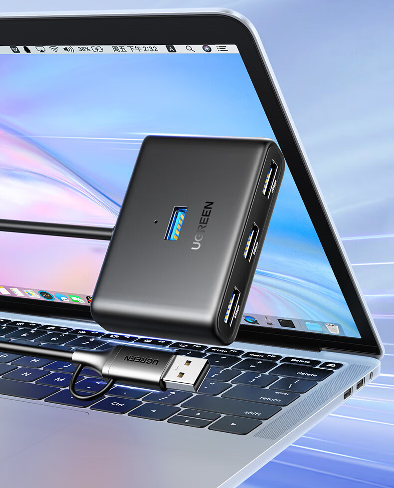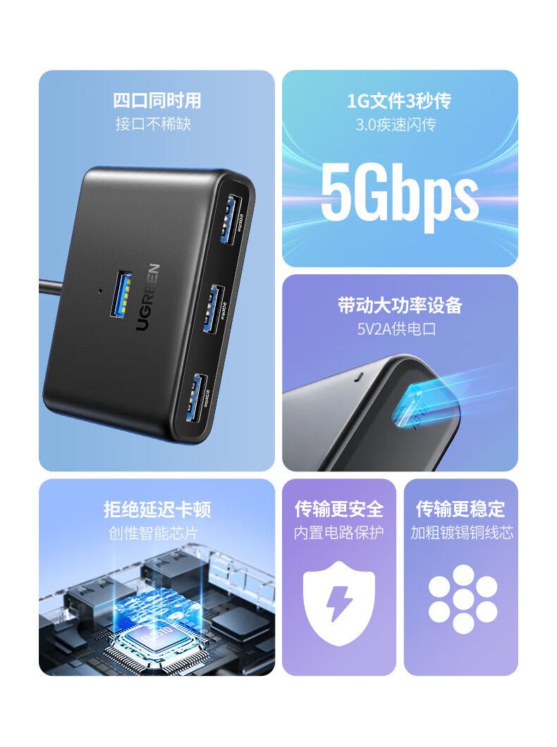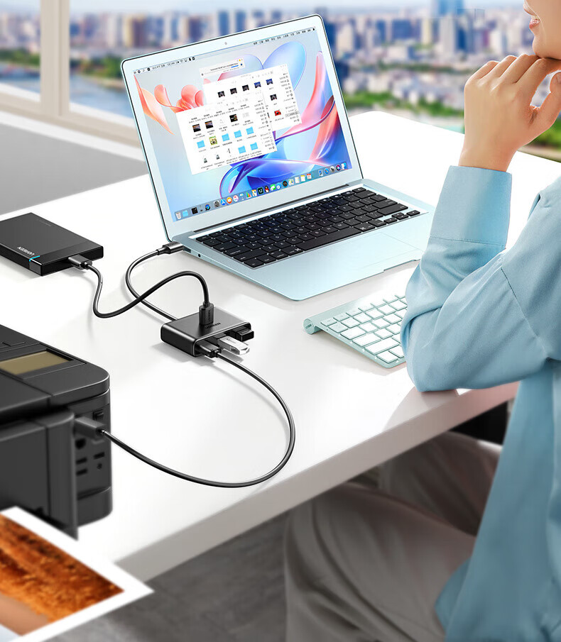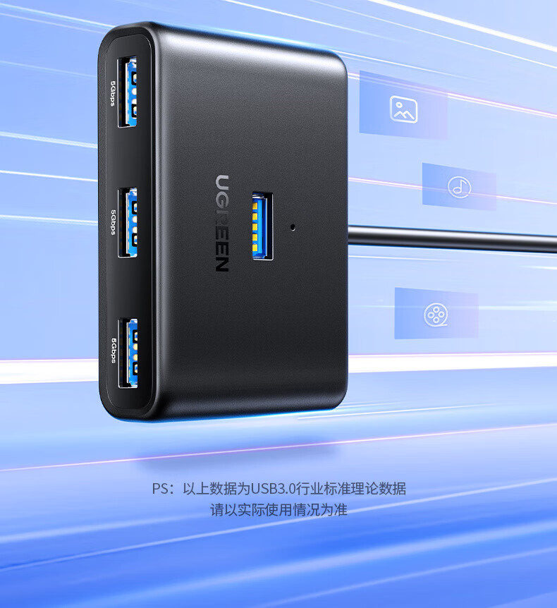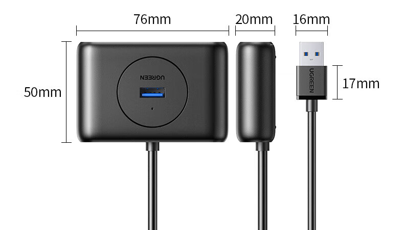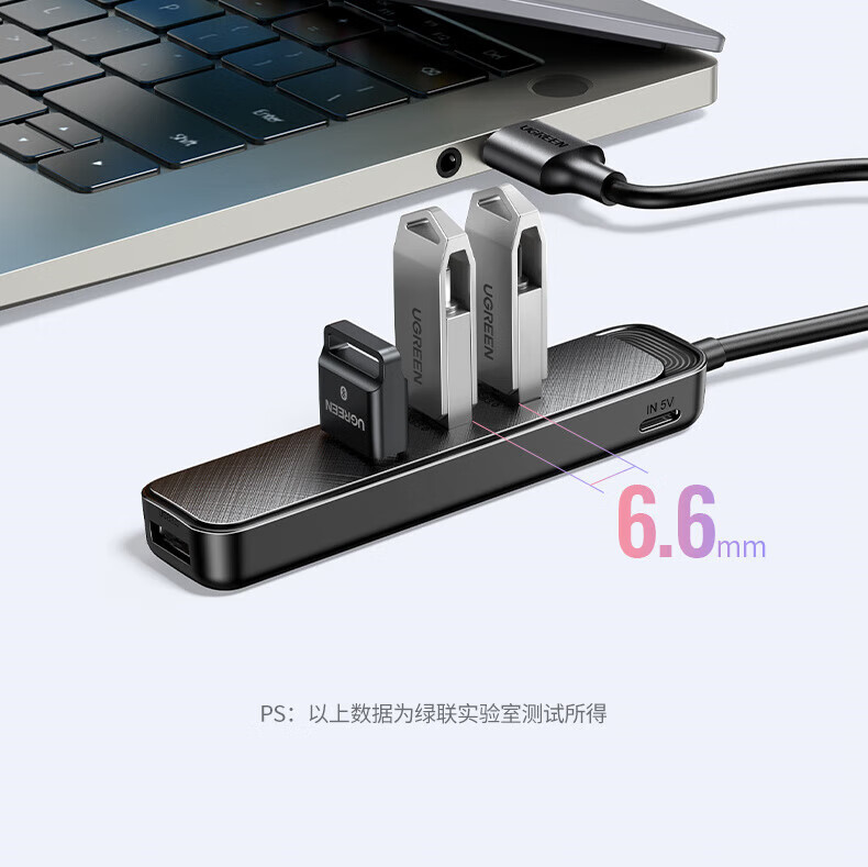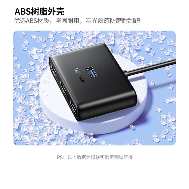 绿联 USB-C分线器 高速拓展4口3.0HUB集线器延长线 电脑一拖四扩展坞转换器 【方形黑新款】0.15米/35021