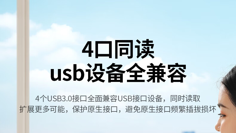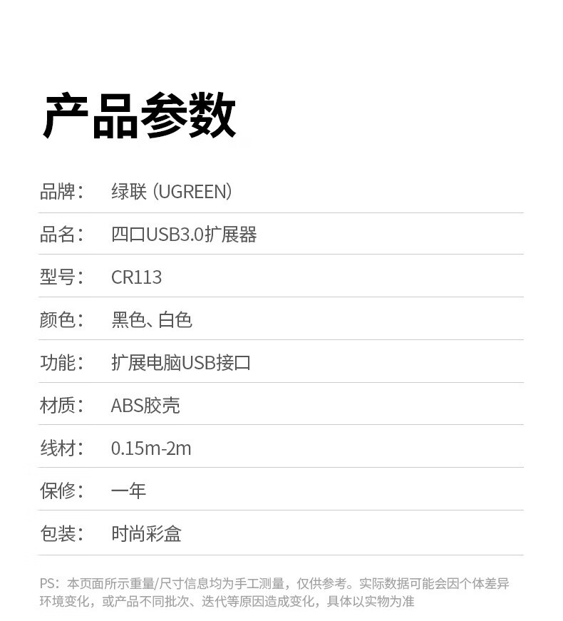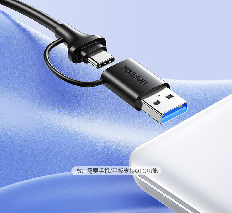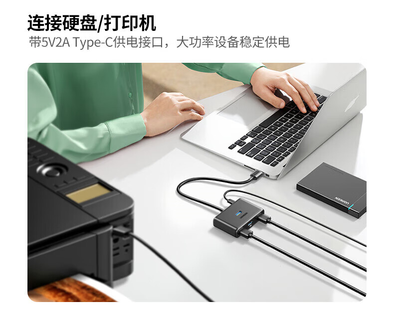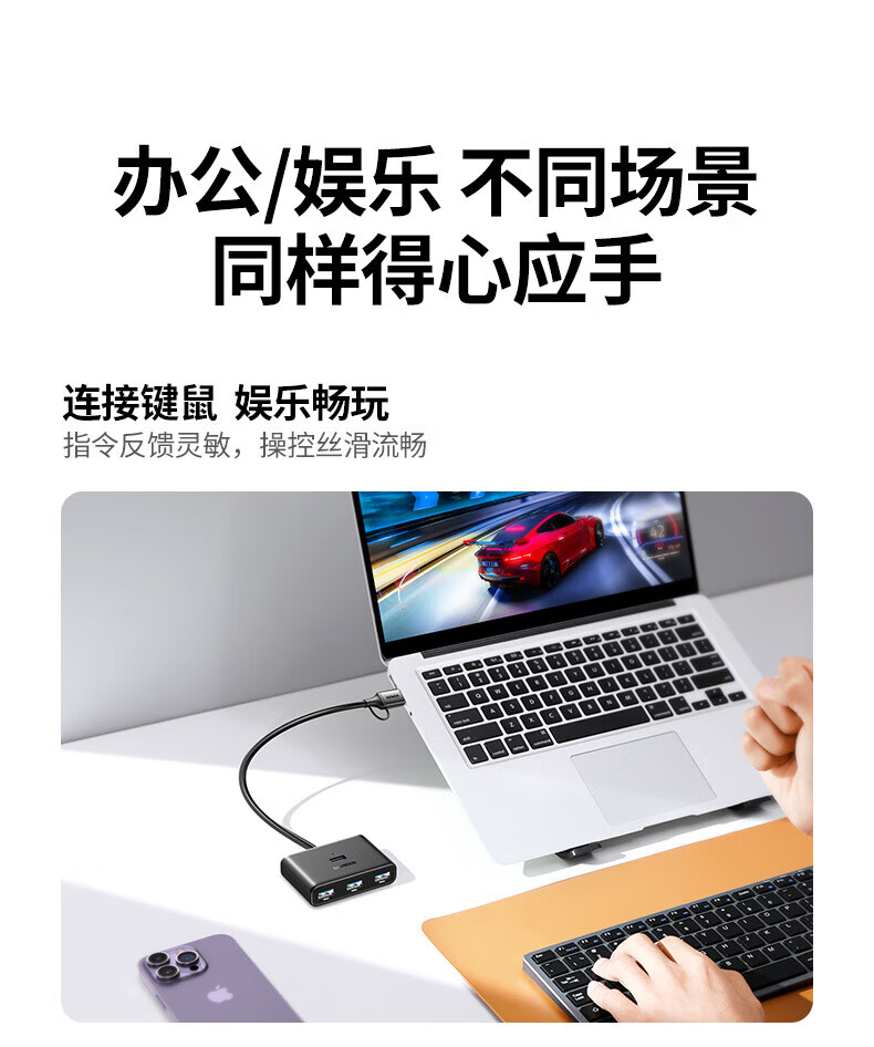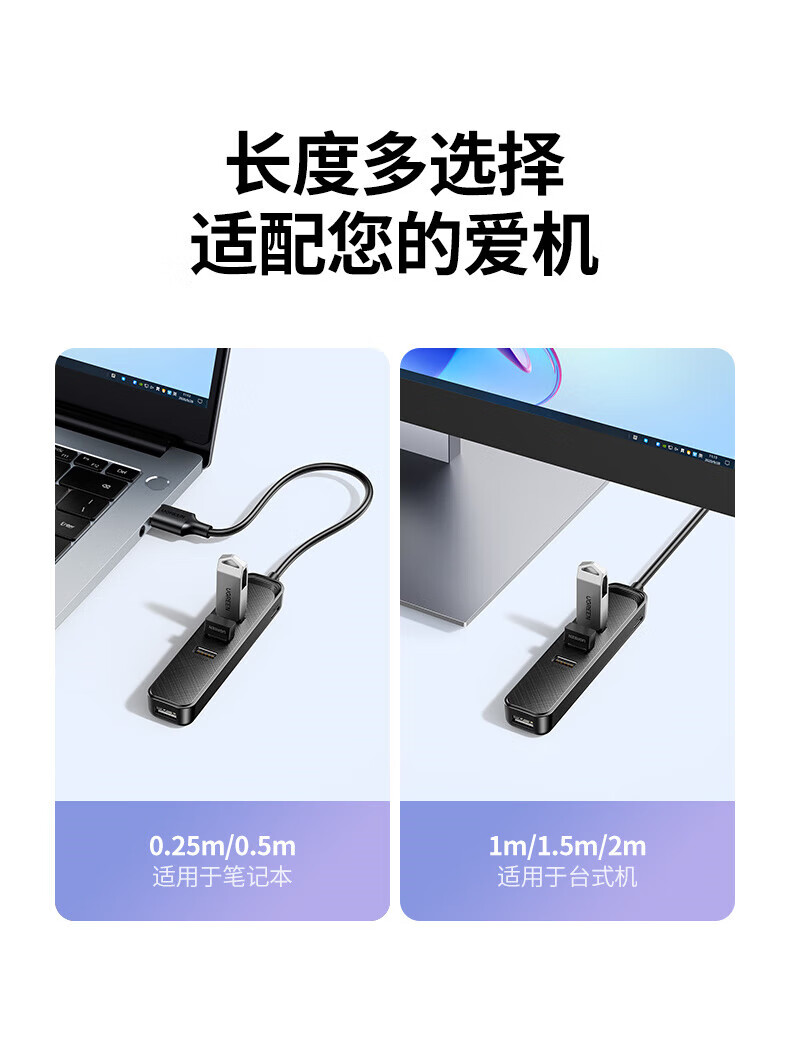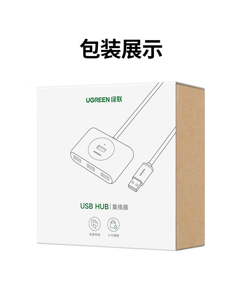 绿联 USB-C分线器 高速拓展4口3.0HUB集线器延长线 电脑一拖四扩展坞转换器 【方形黑新款】0.15米/35021