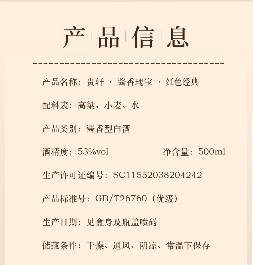 贵轩贵州贵轩红经典老牌高档酱香型白酒53度送礼宴请聚会必备 53度 500mL 6瓶