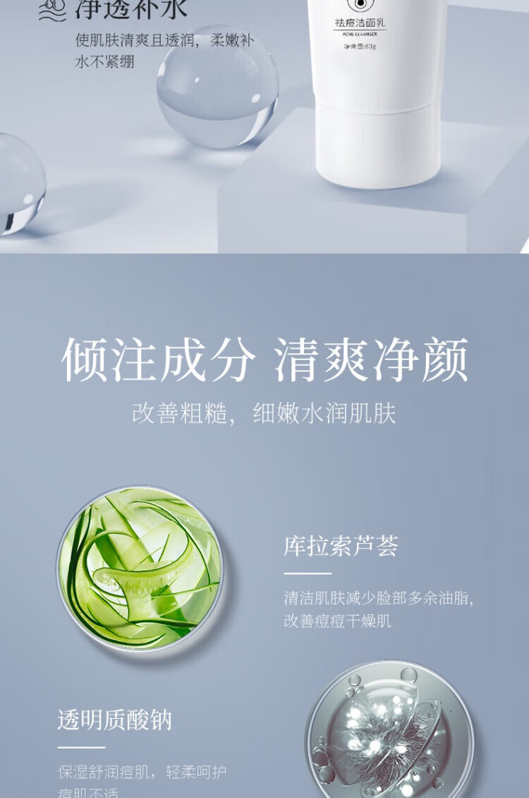 米云男士洗面奶氨基酸洁面控油净痘清洁毛孔洁面乳敏感肌学生男洗面乳 【店铺热销TOP1】控油净痘单瓶装