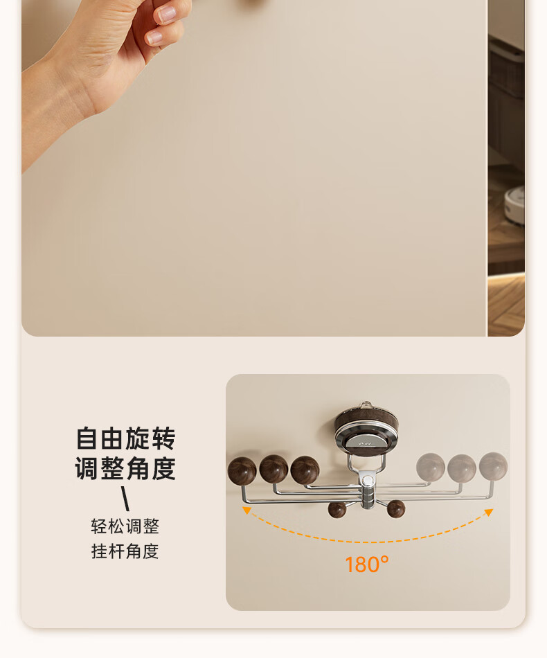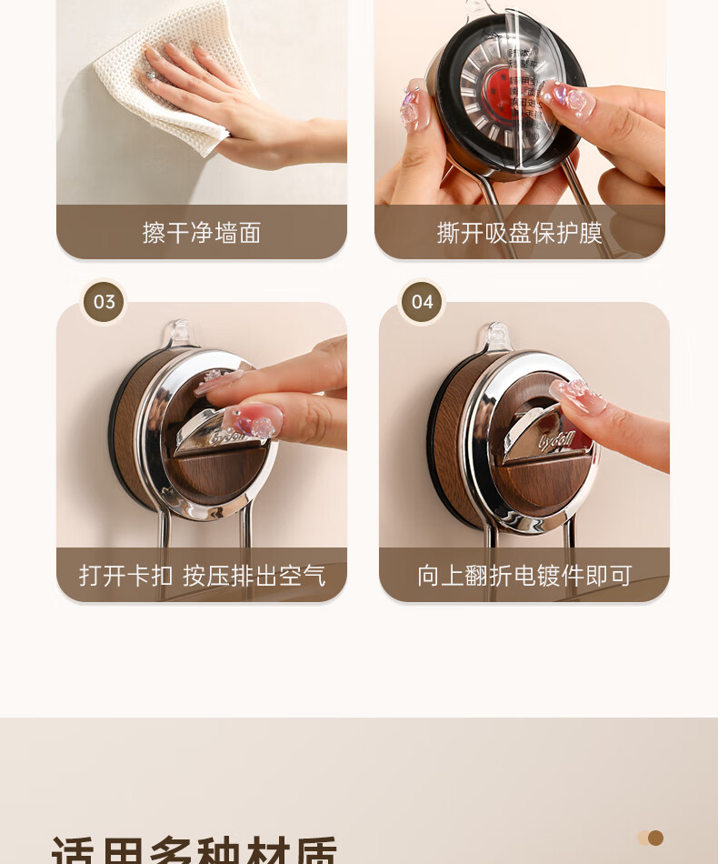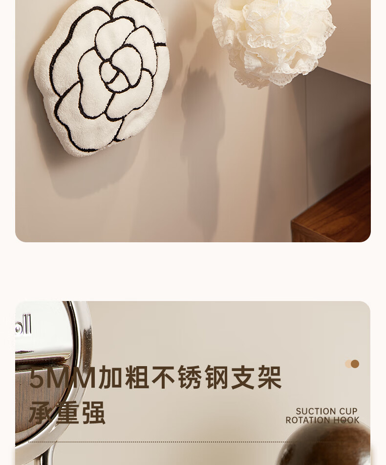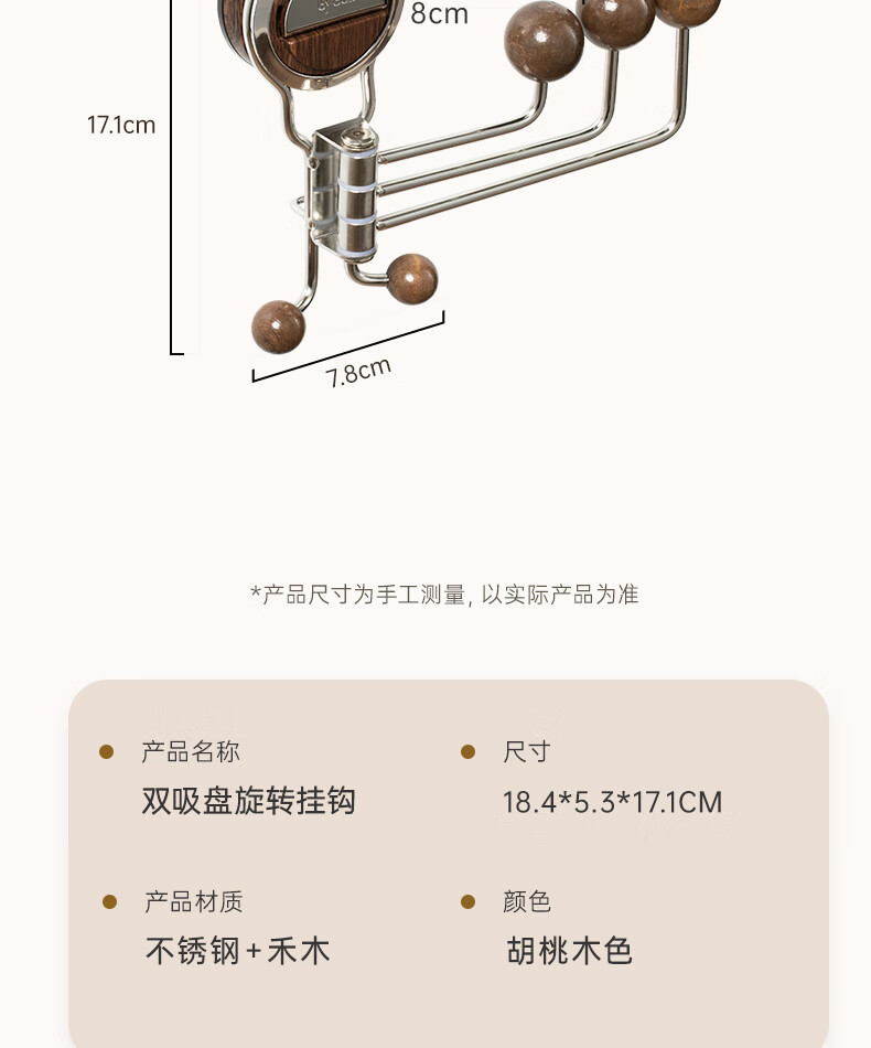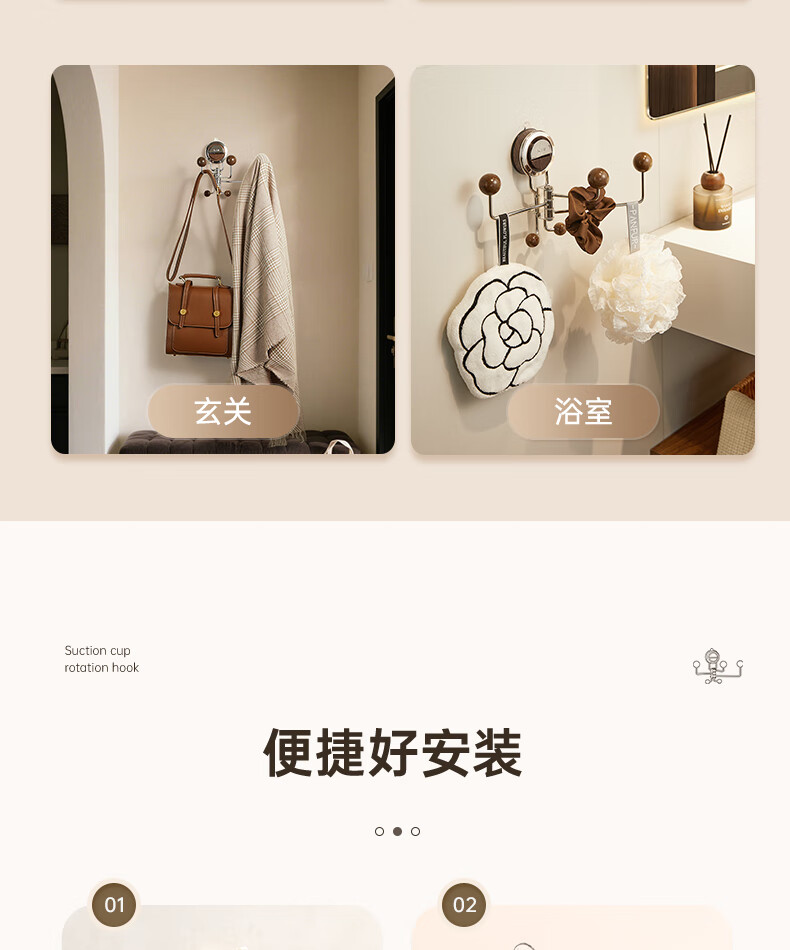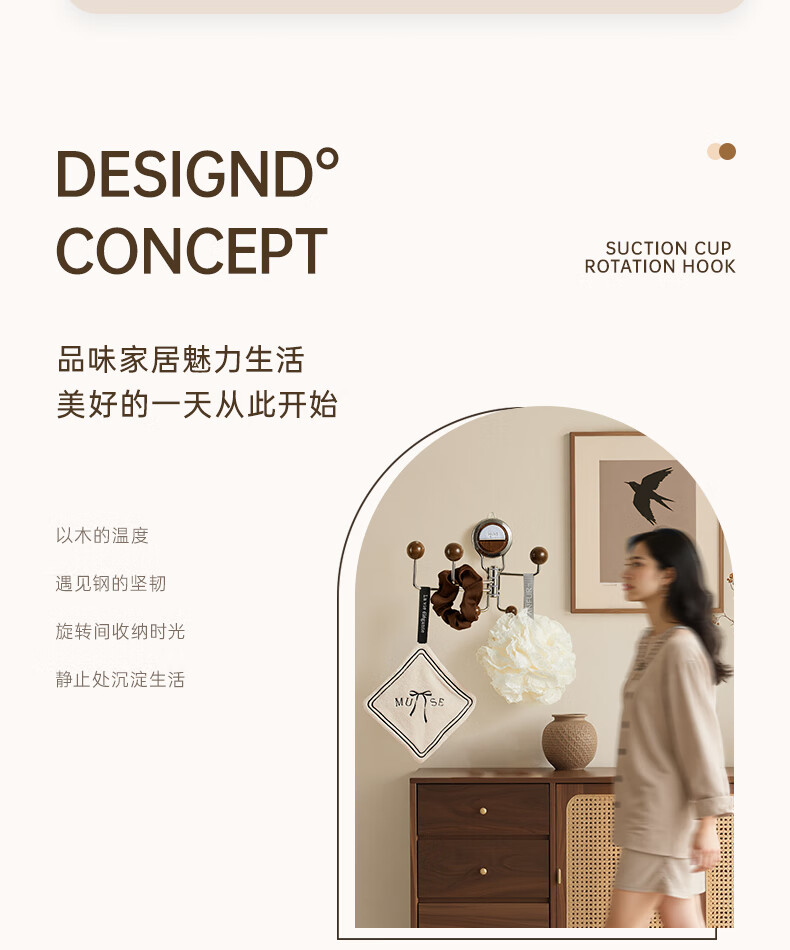 妃驰高颜值浴室吸盘旋转挂钩卫生间门后厨房免打孔真空无痕毛巾衣服钩 胡桃木色-吸盘挂钩【可旋转】