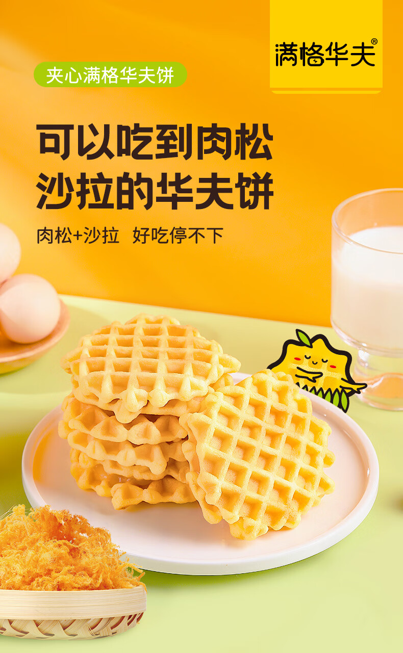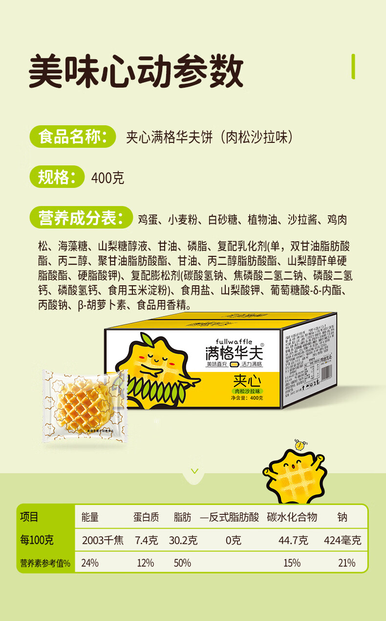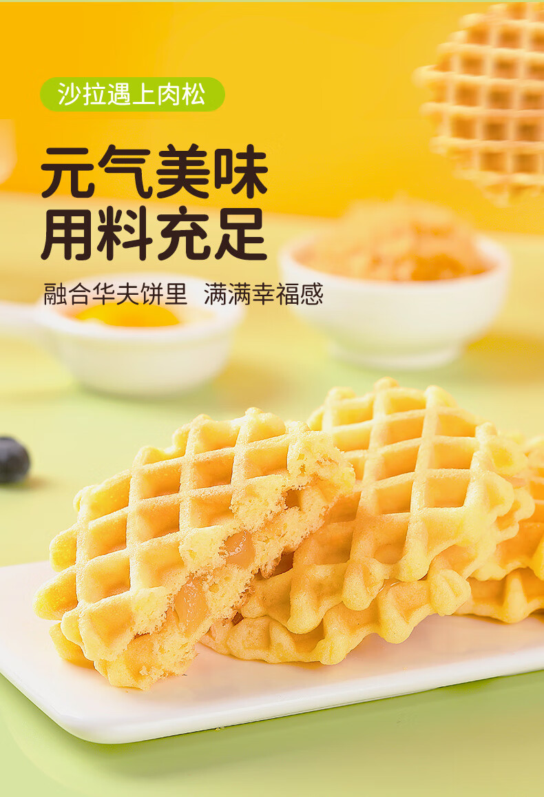 满格华夫经典华夫饼 手撕面包营养早餐下午茶蛋糕整箱 肉松沙拉夹心1箱400g