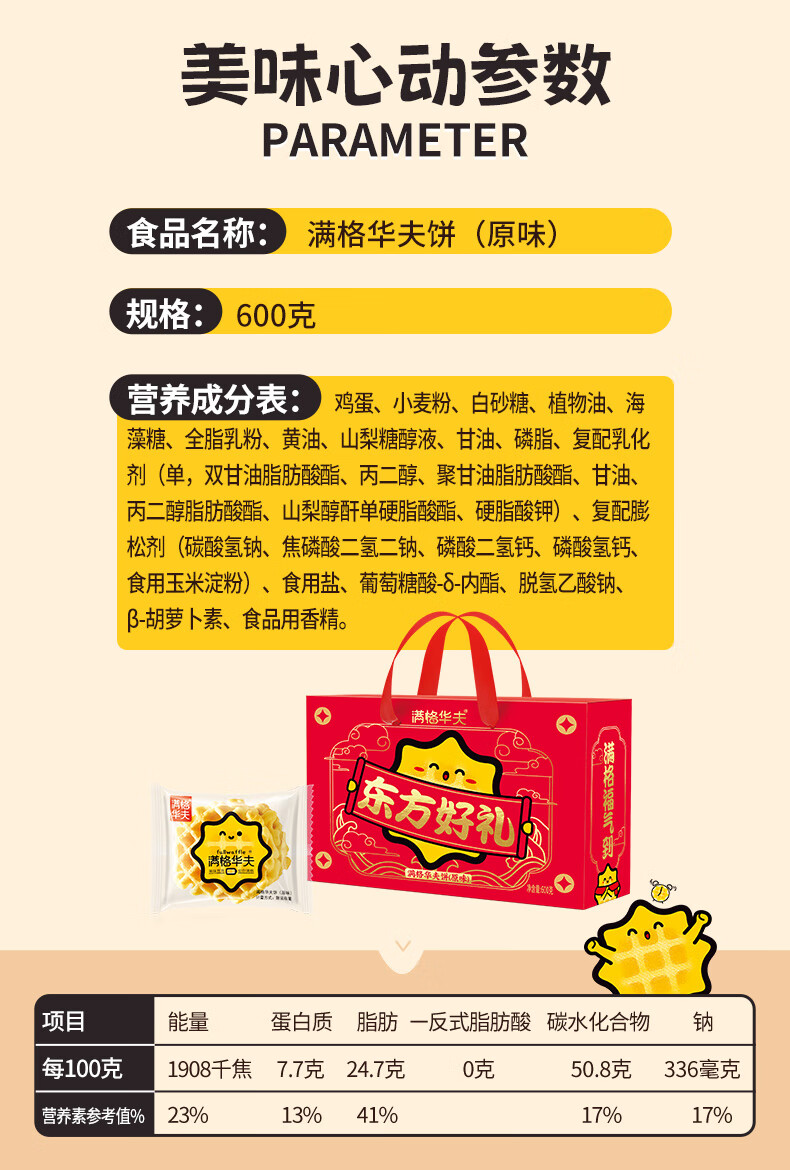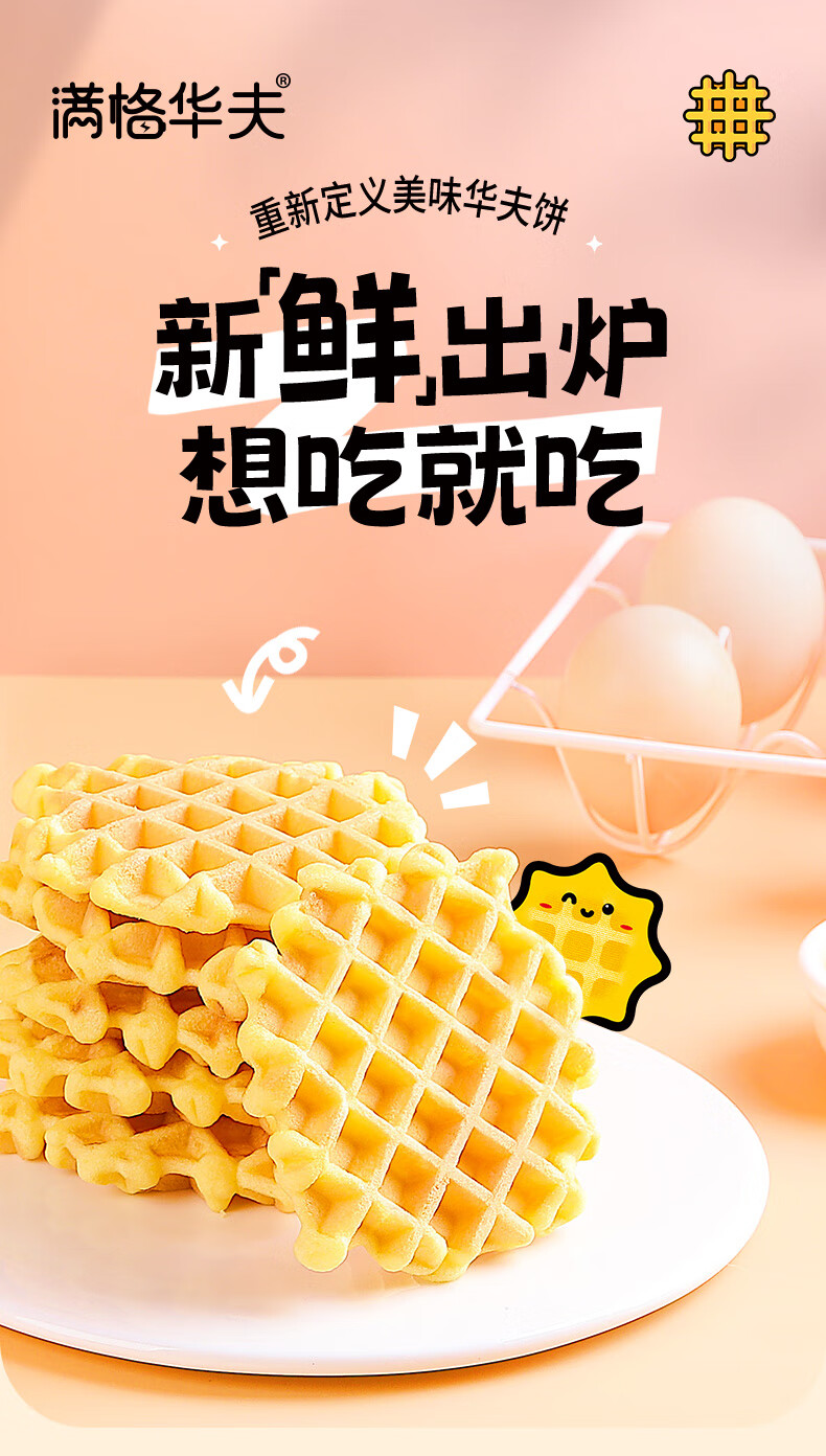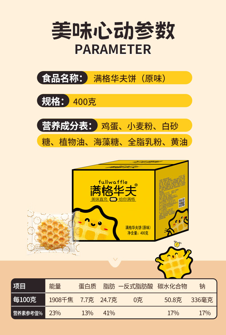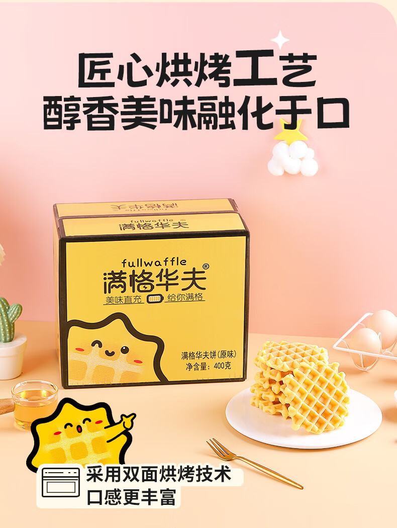 满格华夫经典华夫饼 手撕面包营养早餐下午茶蛋糕整箱 肉松沙拉夹心1箱400g