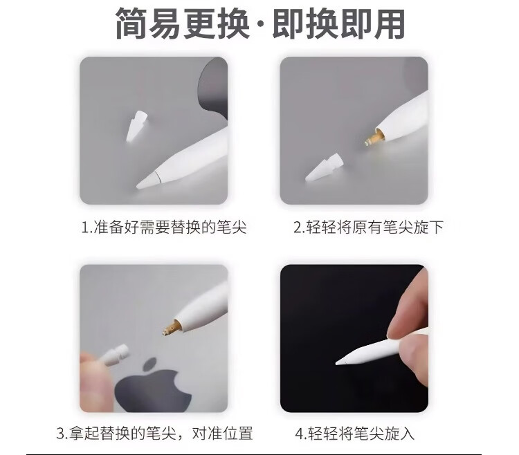 苹果Apple pencil原装正品笔尖适用1/2代/USB-C/Pro ipad备用笔头 原装正品(带卡纸) 全新4个组合装(4个)