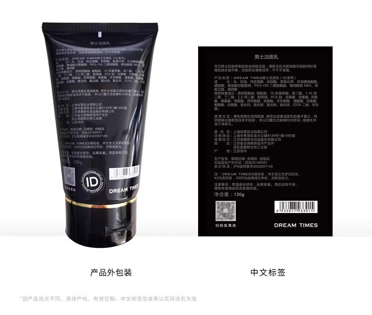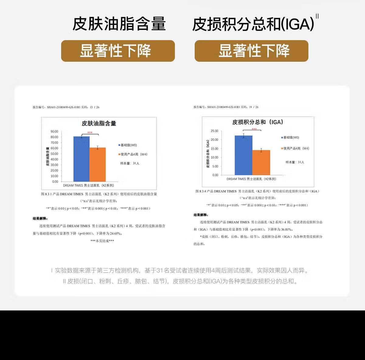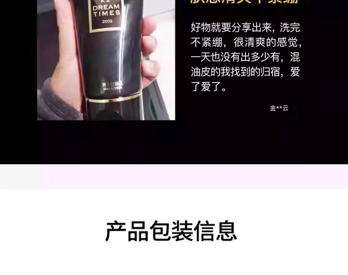 DreamtimesK2男士护肤洁面乳控油洗面奶控油祛痘深层清洁去黑头除螨洗面奶
