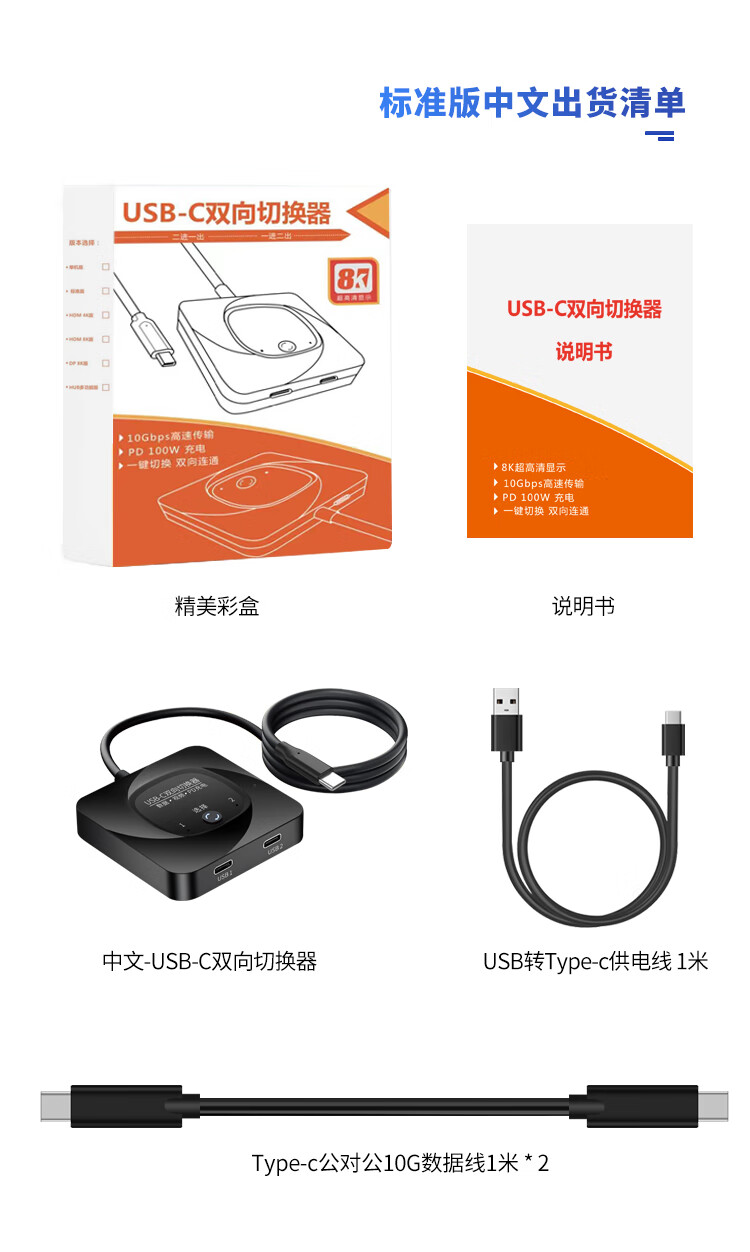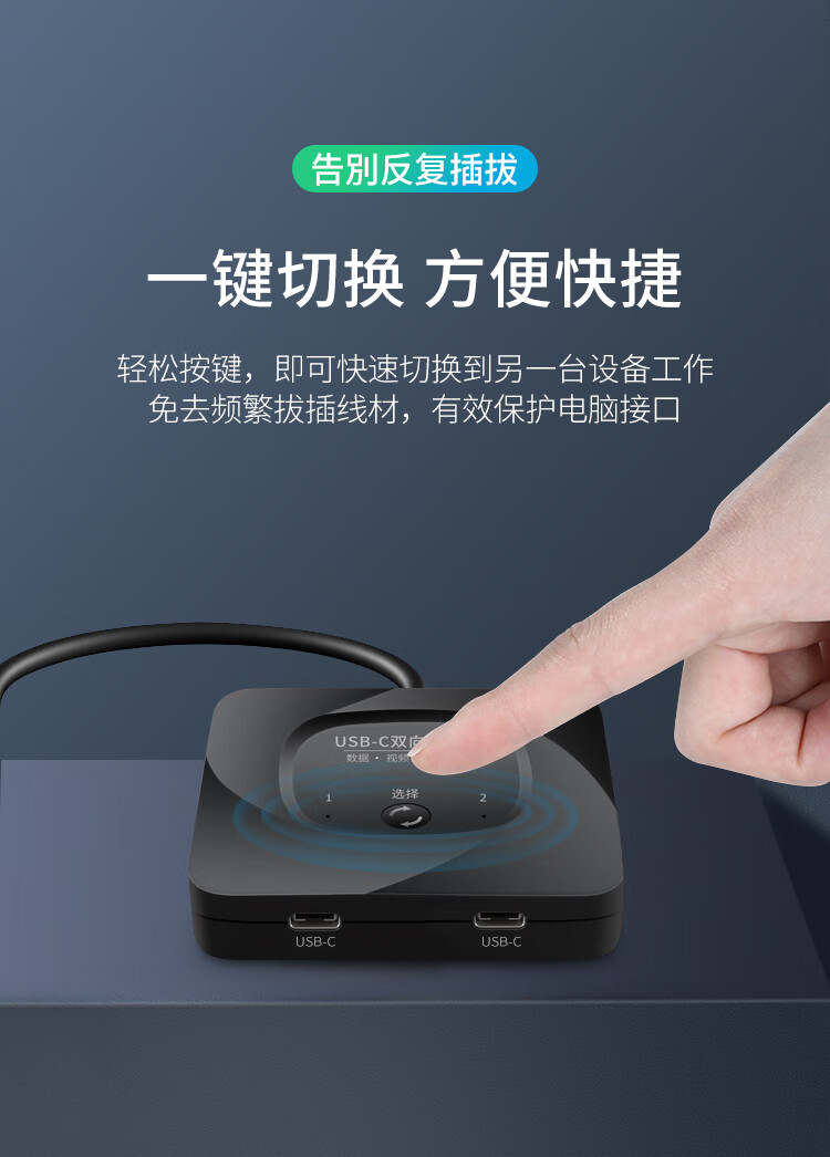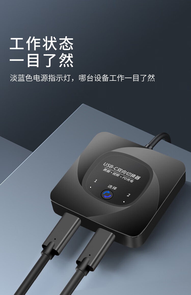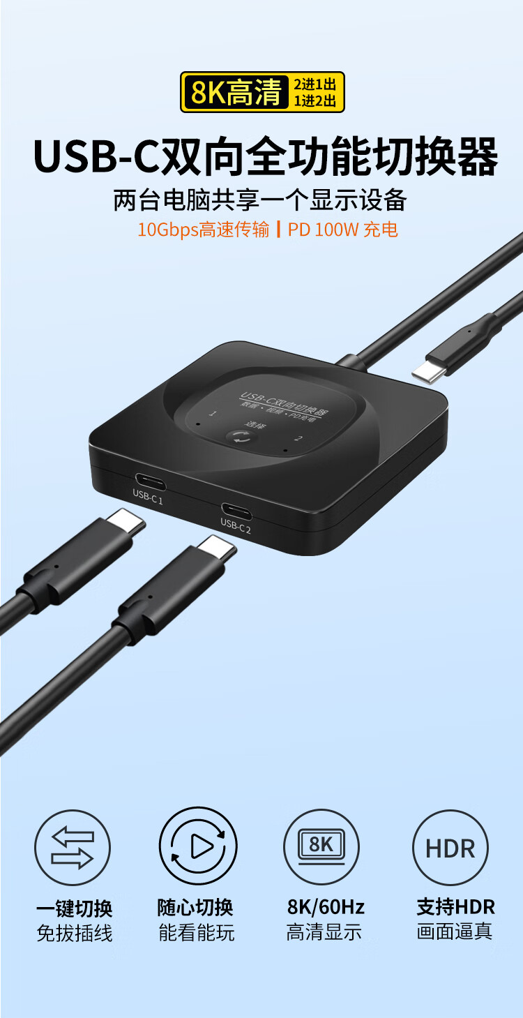 春程USB-C双向切换器分配器二进一出转换器TYPE-C双向互转视频器2进1出共享器8K视觉投屏器PD100W充电 HD019 黑色