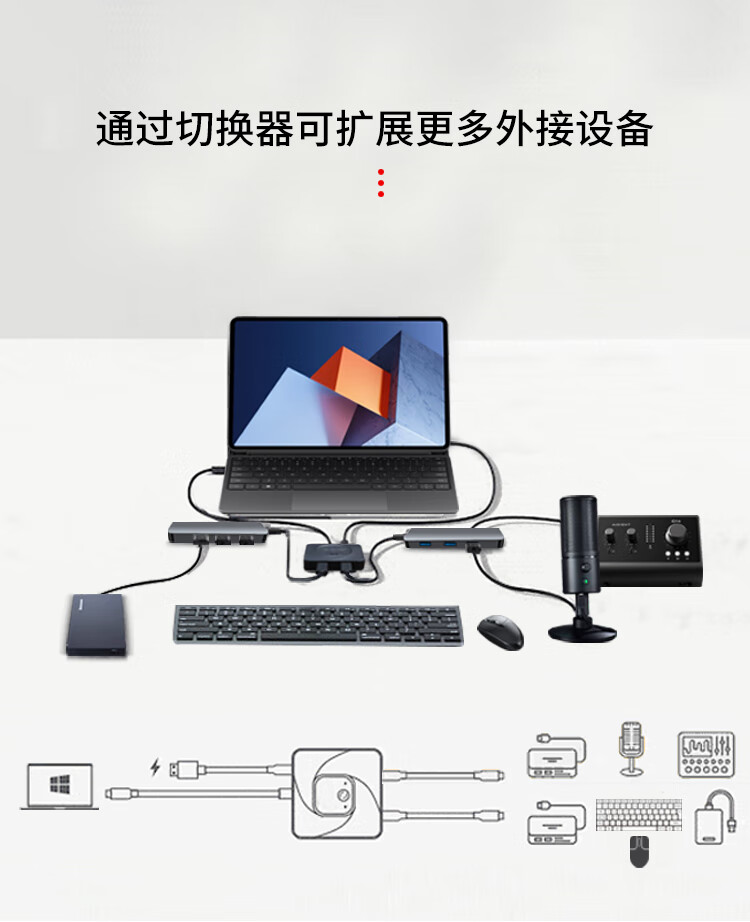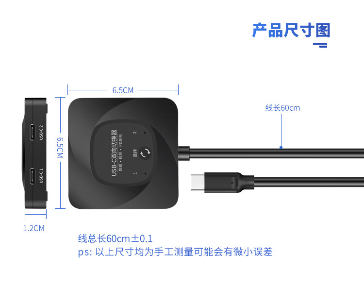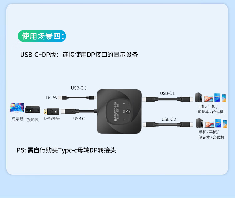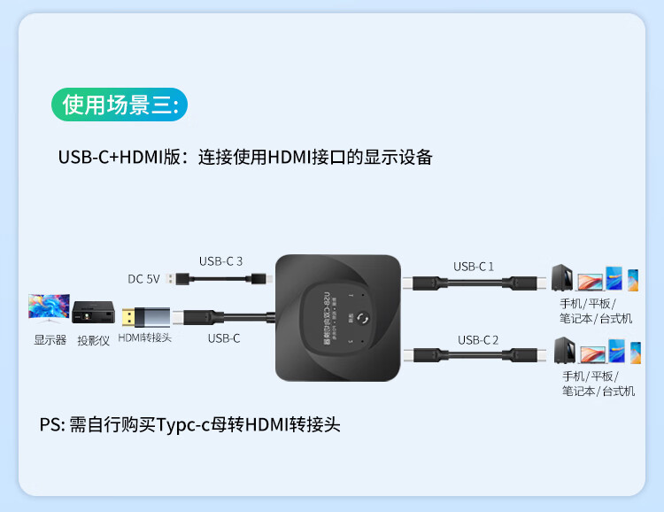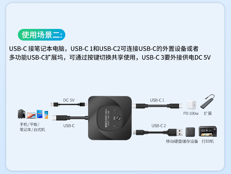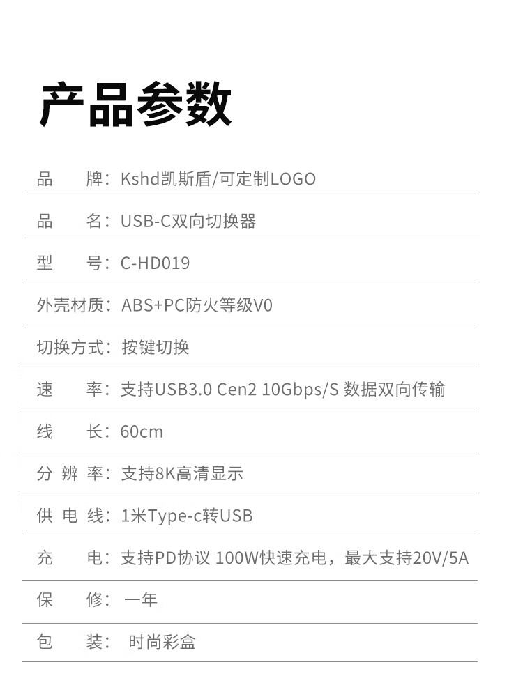 春程USB-C双向切换器分配器二进一出转换器TYPE-C双向互转视频器2进1出共享器8K视觉投屏器PD100W充电 HD019 黑色